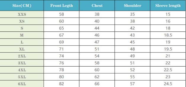 Size: XXS, XS, S, M, L, XL, 2XL, 3XL, 4XL, 5XL, 6XL