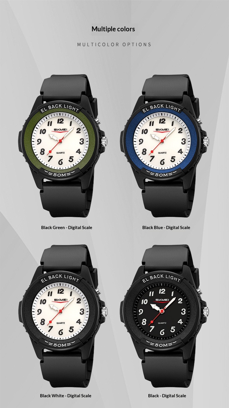 Color: Black case, black dial—line markers; black case, black dial—numeric markers; blue bezel, white dial—line markers; blue bezel, white dial—numeric markers; green bezel, white dial—line markers; green bezel, white dial—numeric markers; black bezel, white dial—line markers; black bezel, white dial—numeric markers; black case, black dial with numeric markers—nylon strap