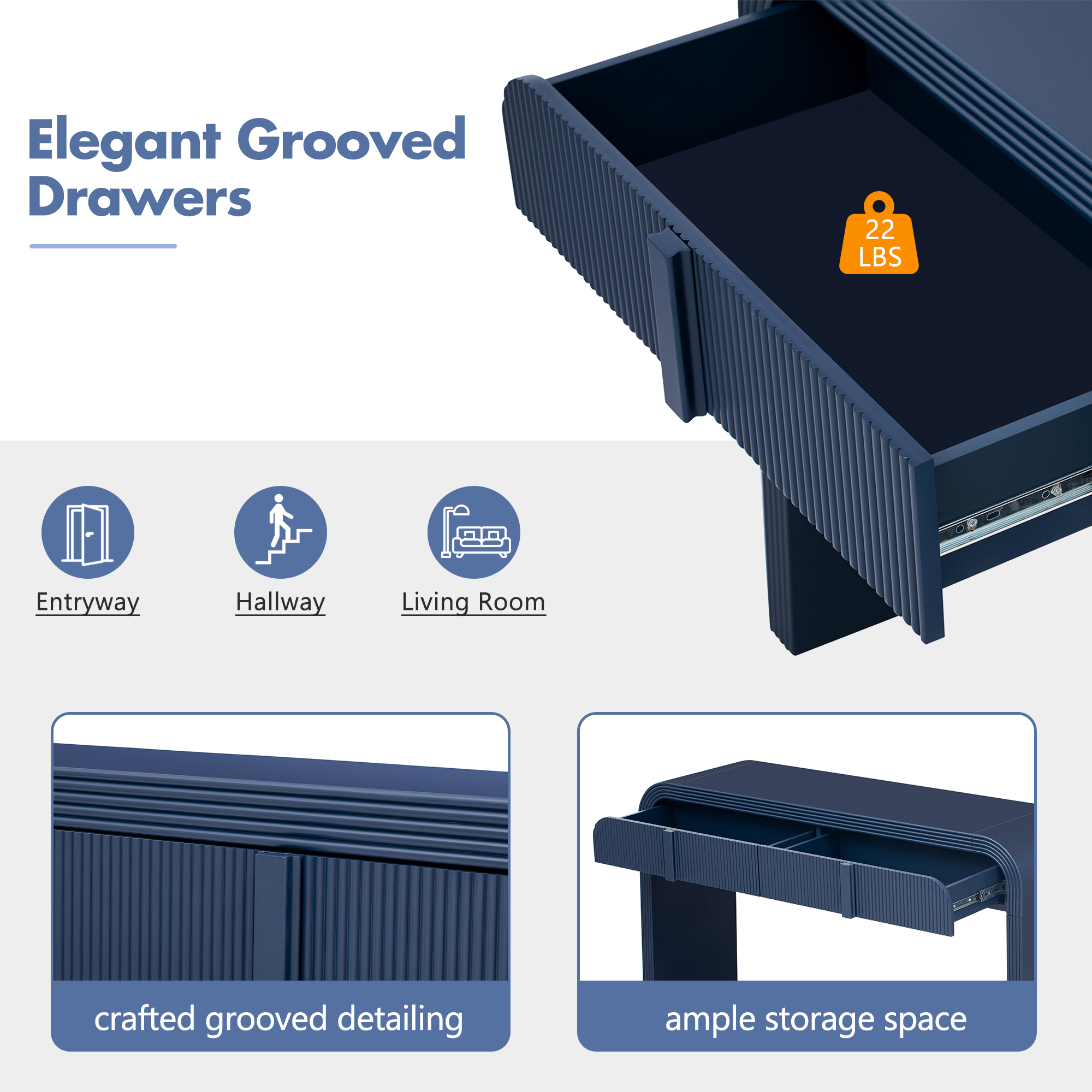 TREXM Modern Console Table With 2 Storage Drawers Fluted Entryway Table With Rounded Silhouette For Hallway Living Room And Entryway Navy Blue