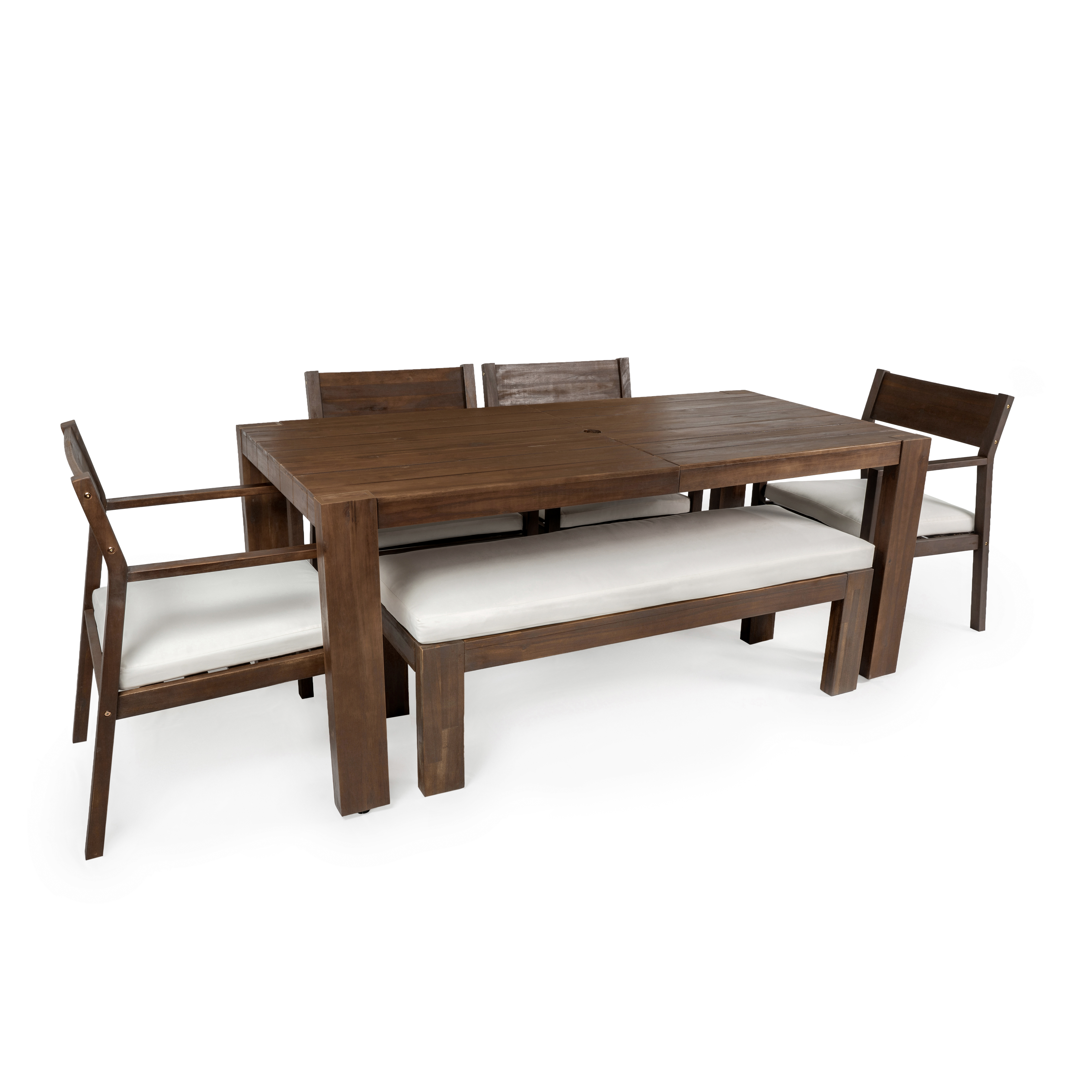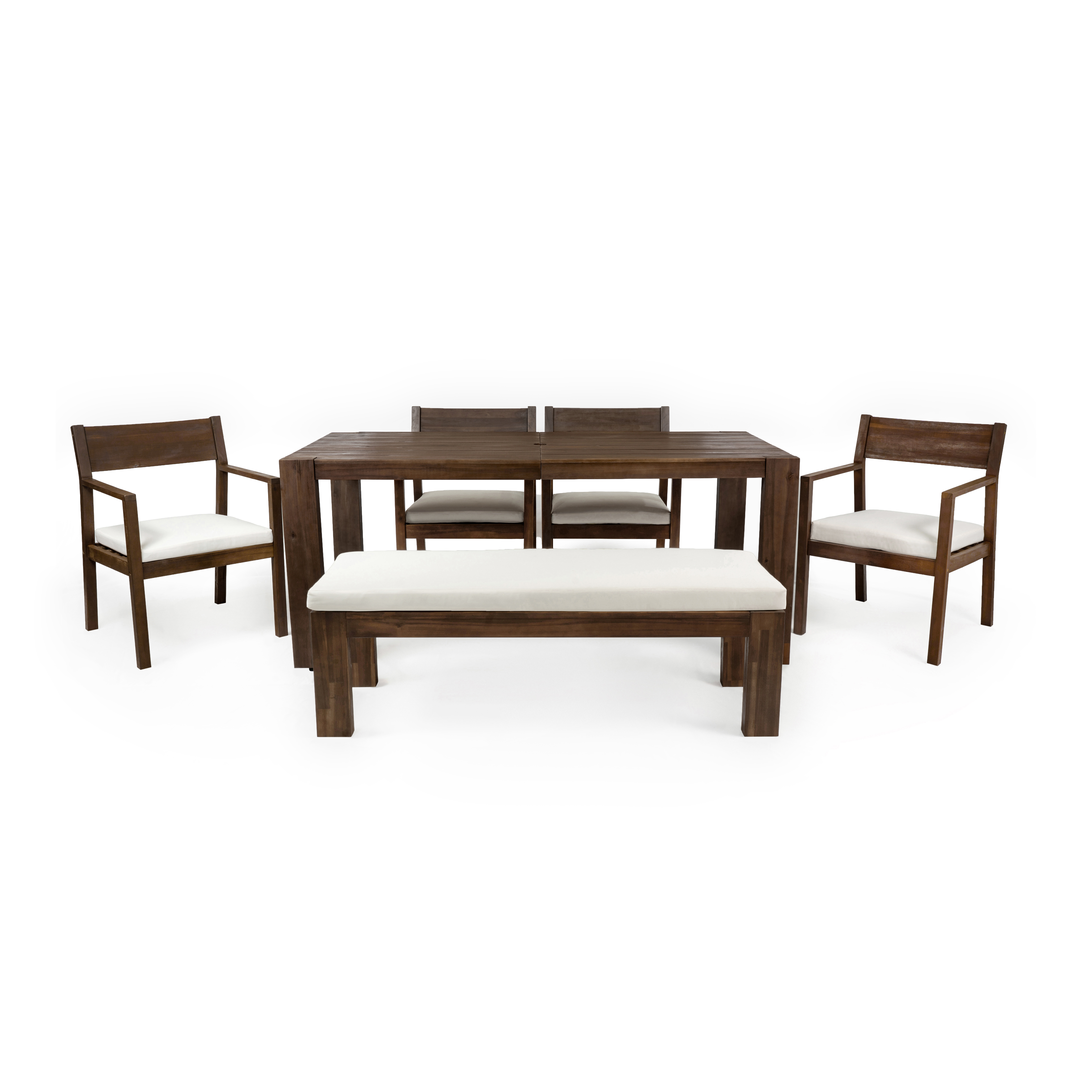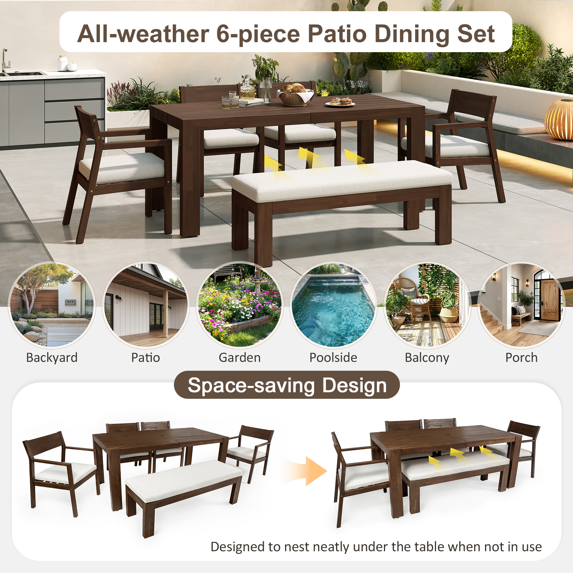 Product Name:TREXM Patio Dining Table Set for 6, Outdoor Furniture Sets with Umbrella Hole, 71" Rectangular Table, Chairs and Bench with Removable Cushions for Backyard, Garden, Poolside (Mocha+Beige Cushion)