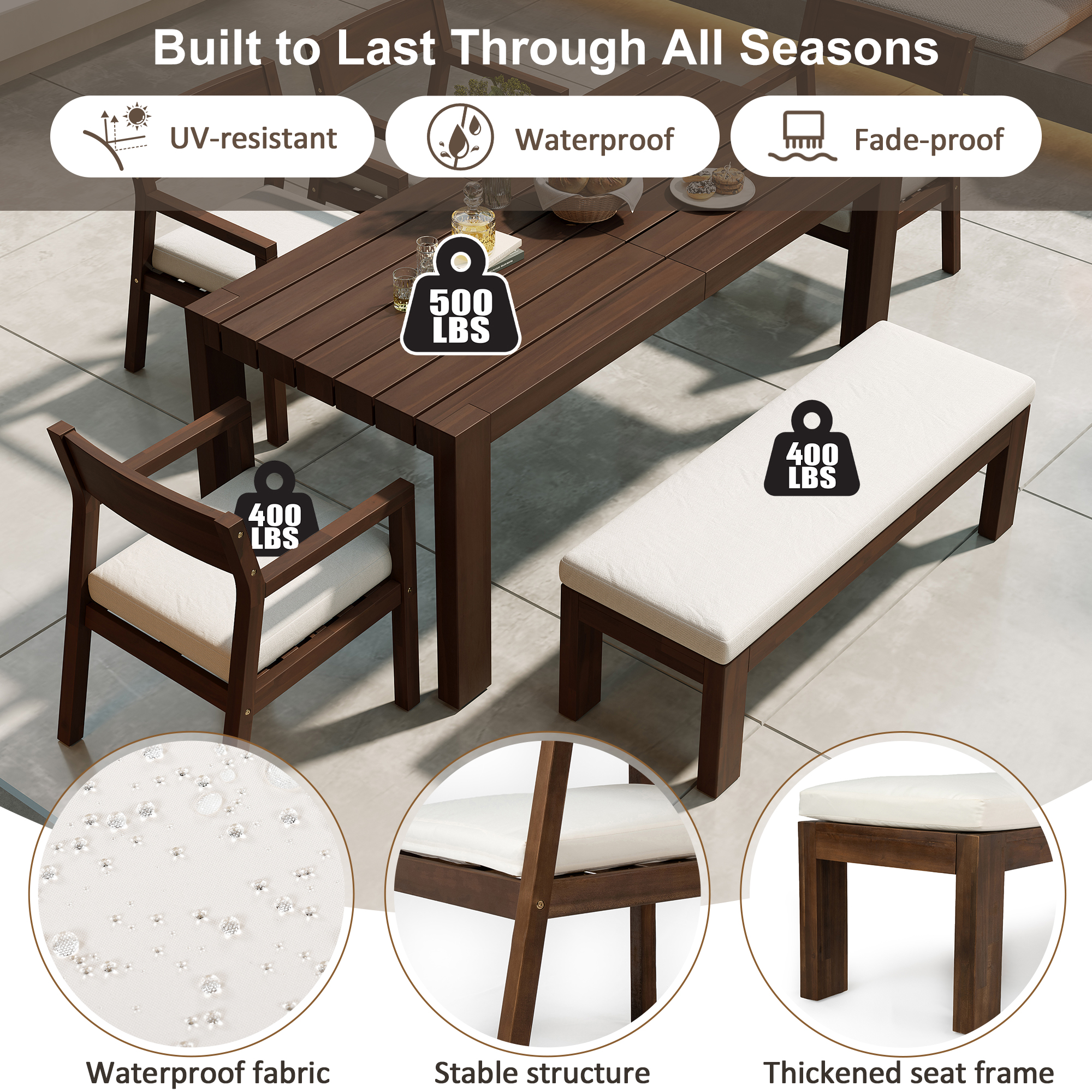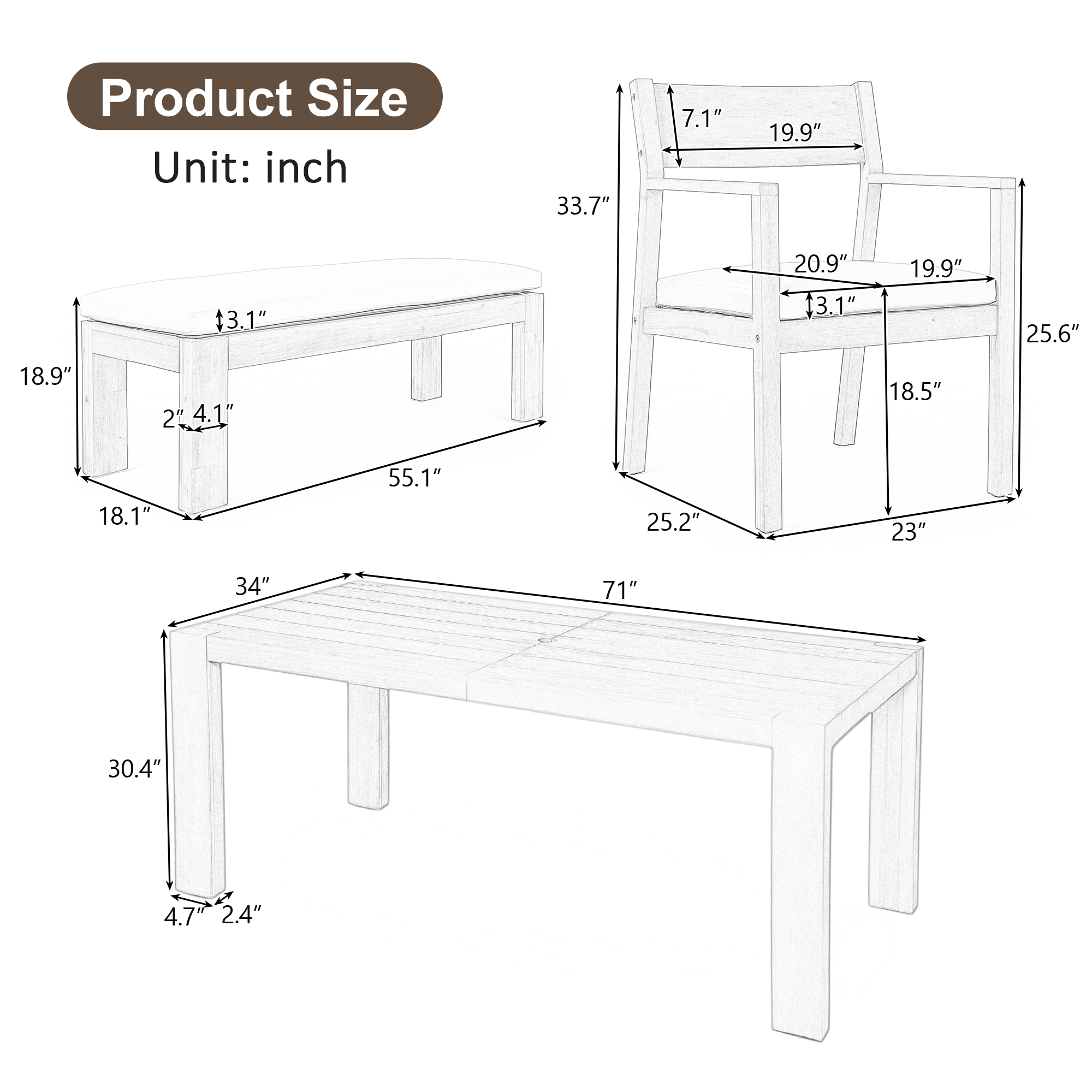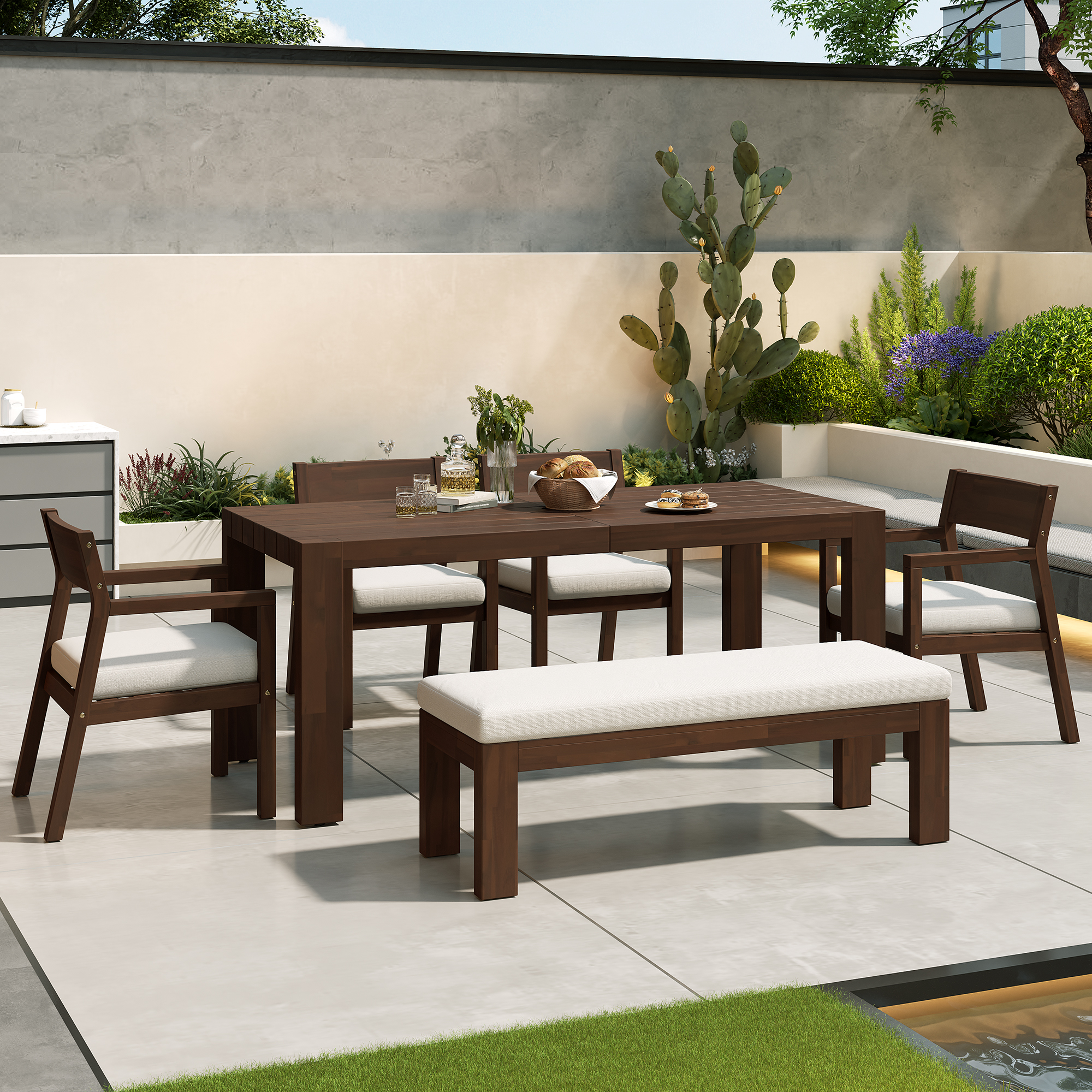 Product Name:TREXM Patio Dining Table Set for 6, Outdoor Furniture Sets with Umbrella Hole, 71" Rectangular Table, Chairs and Bench with Removable Cushions for Backyard, Garden, Poolside (Mocha+Beige Cushion)