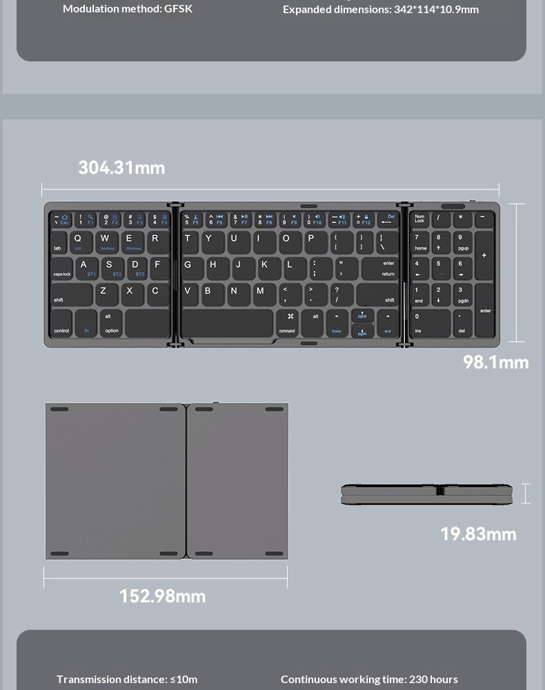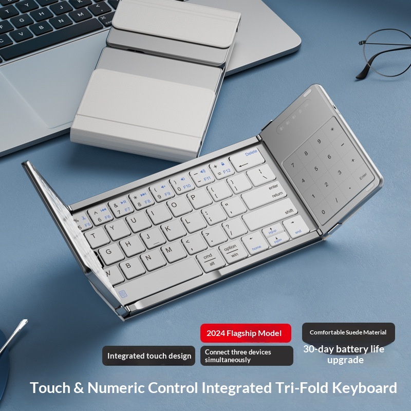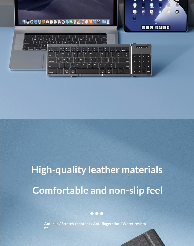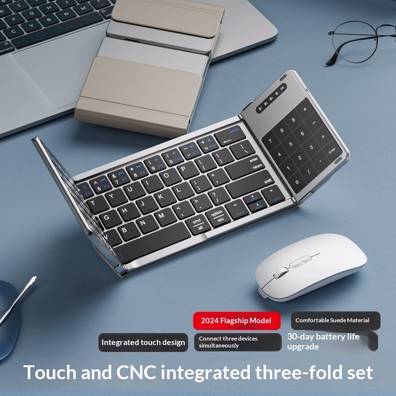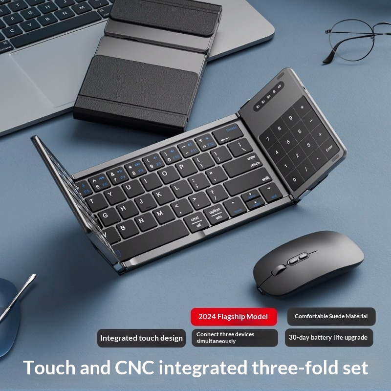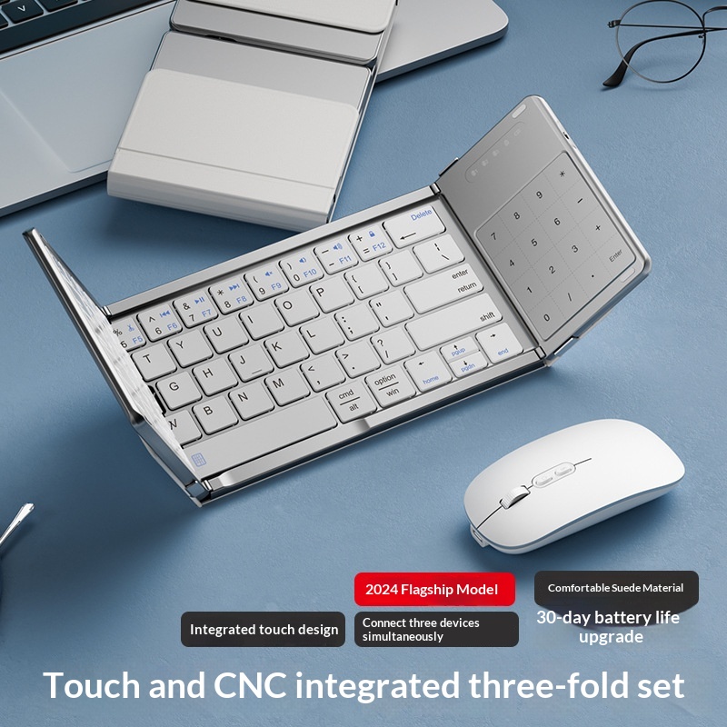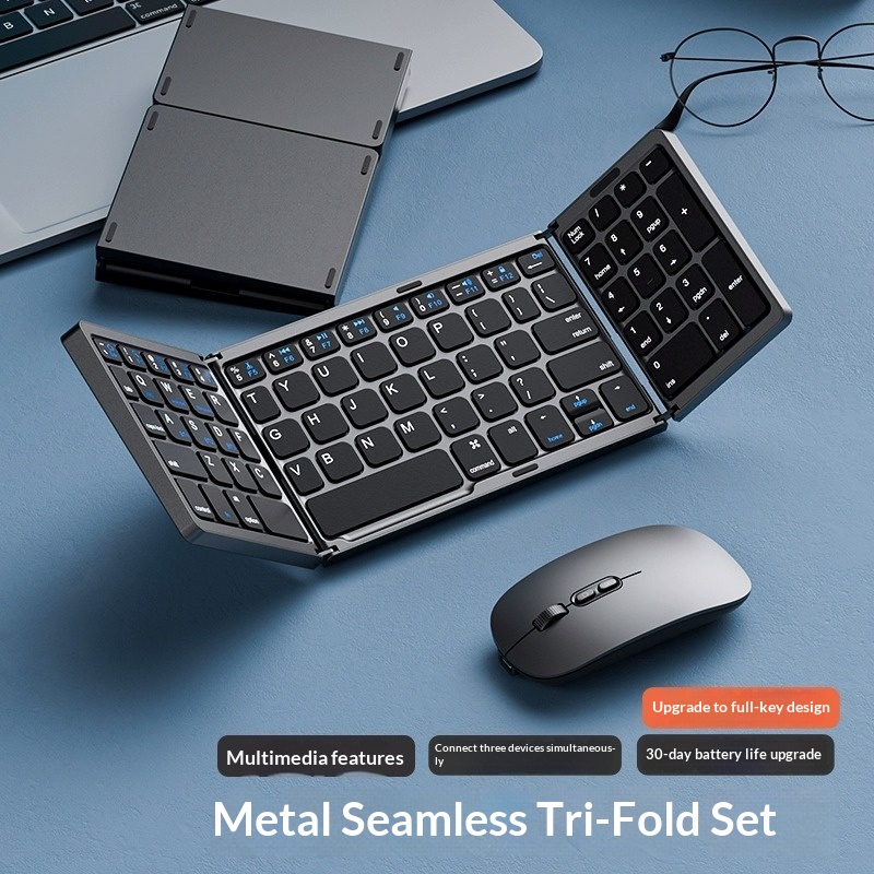 Colors: Black tri-fold [Single Keyboard], Silver tri-fold [Single Keyboard], Black tri-fold [Single Keyboard] CNC-machined unibody, Silver tri-fold [Single Keyboard] CNC-machined unibody, Rose Red [Single Keyboard] CNC-machined unibody, Turkish Blue-Green [Single Keyboard] CNC-machined unibody, Black tri-fold [Keyboard-Mouse Combo], Silver tri-fold [Keyboard-Mouse Combo], Black tri-fold [Keyboard-Mouse Combo] CNC-machined unibody, Silver tri-fold [Keyboard-Mouse Combo] CNC-machined unibody, Silver-Black [Single Keyboard] CNC-machined unibody, Silver-Black [Keyboard-Mouse Combo] CNC-machined unibody