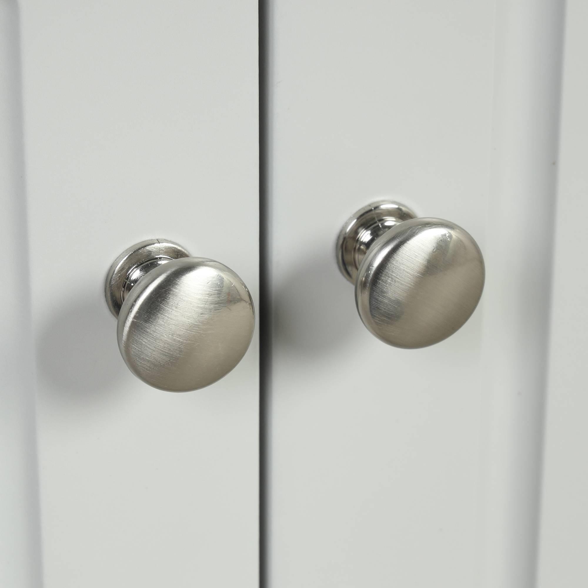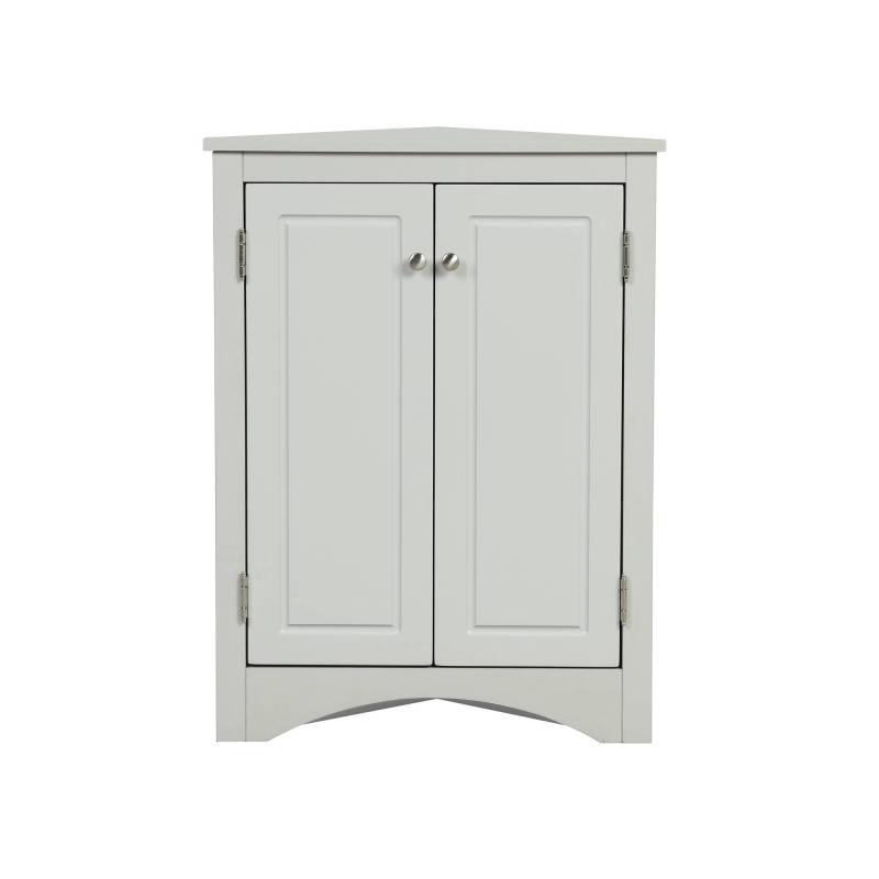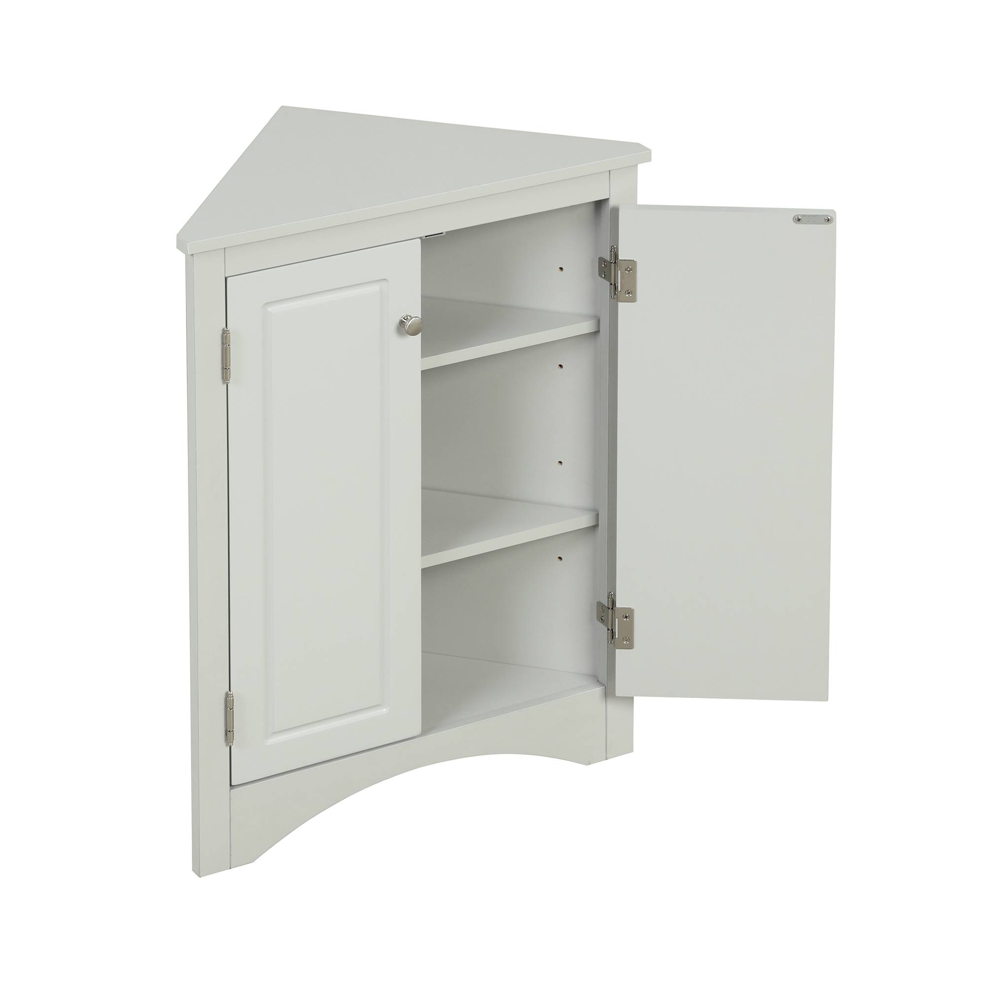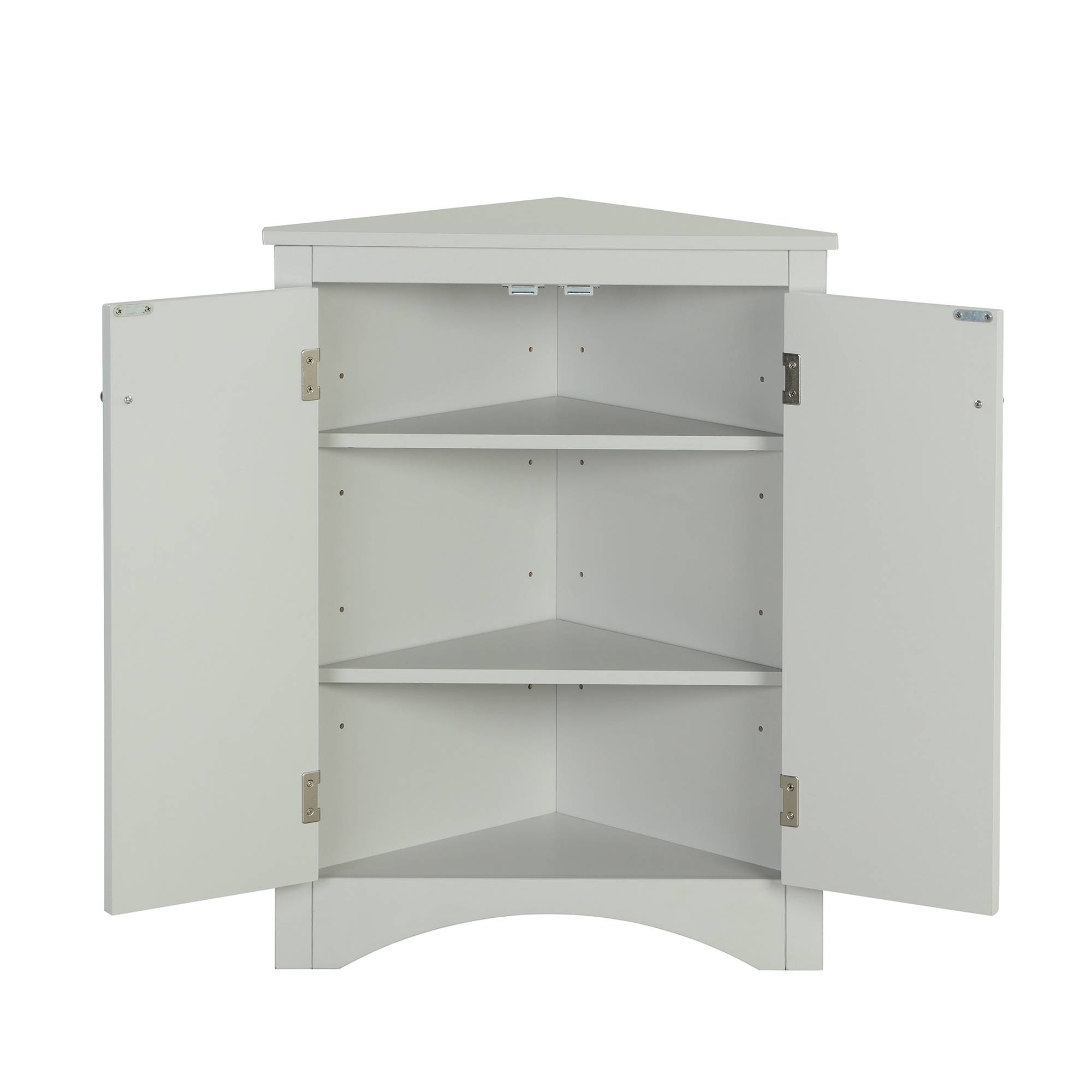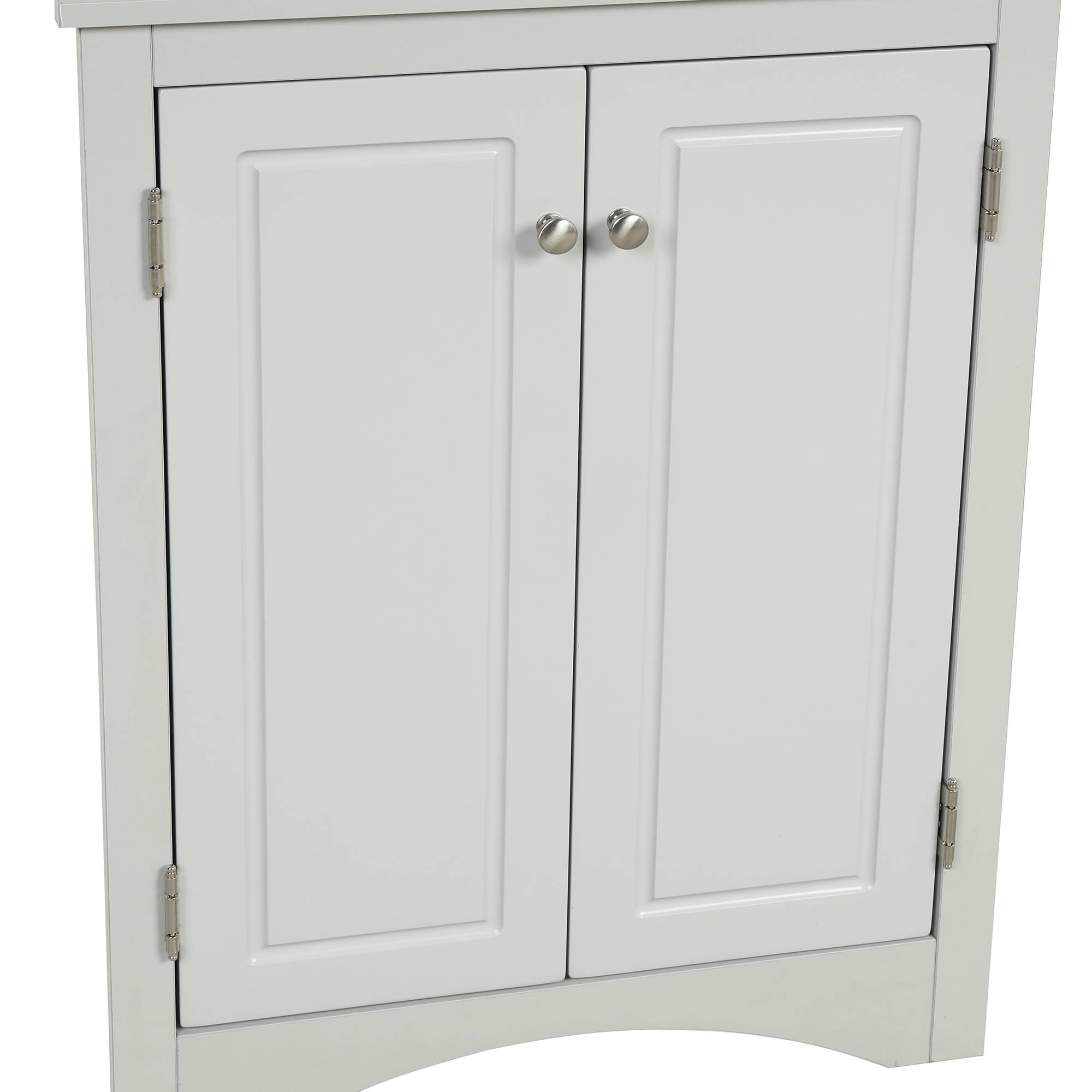 AFFORDABLE CABINET: This corner storage cabinet with doors is designed not only to meet your visual demands, but also to satisfy your functional needs. With inside adjustable shelves, it can meet your various storage needs. Brushed nickle knobs make it convenient for you to open and close.