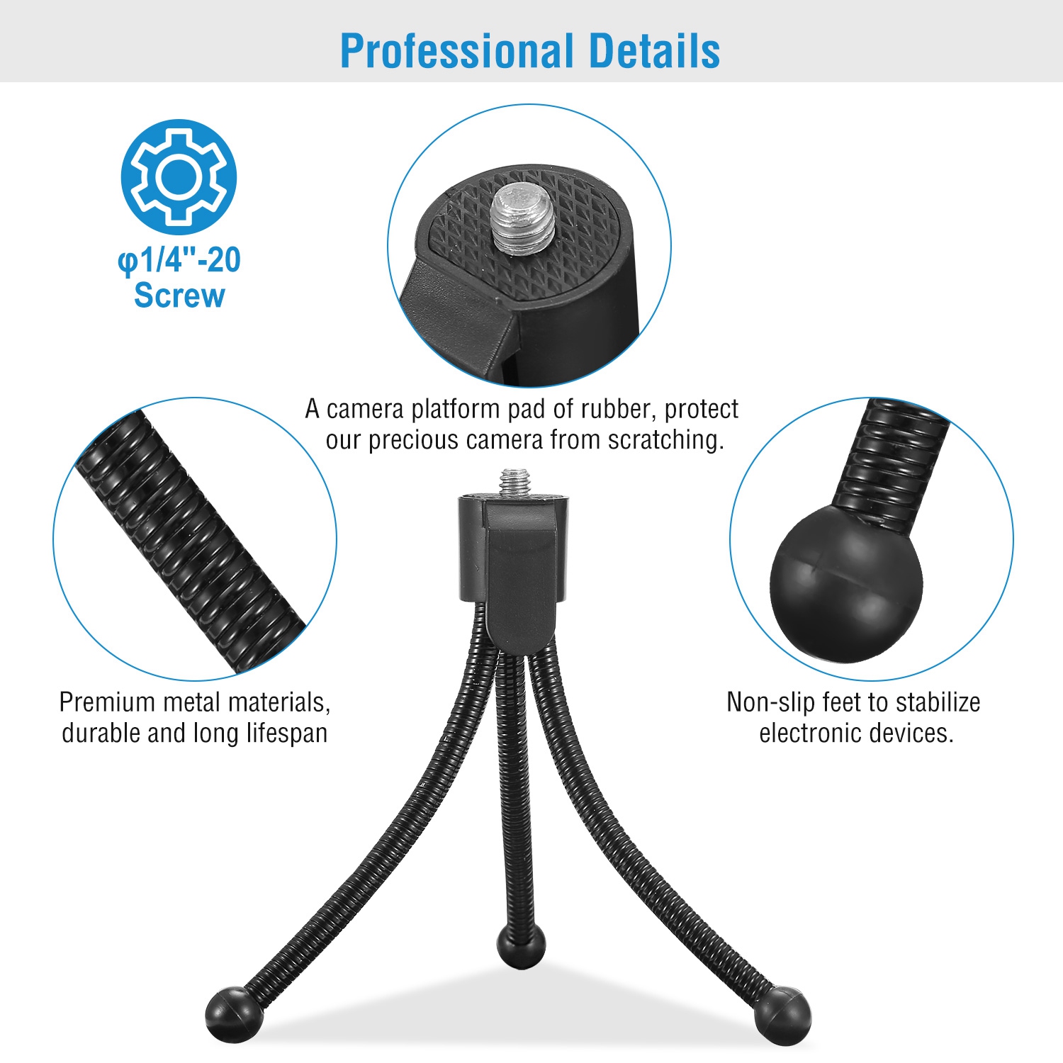 **FLEXIBLE TRIPODS*:Flexible tripods to adjust your camera to its optimal photographing angles. Free your hands and enjoy beautiful pictures.