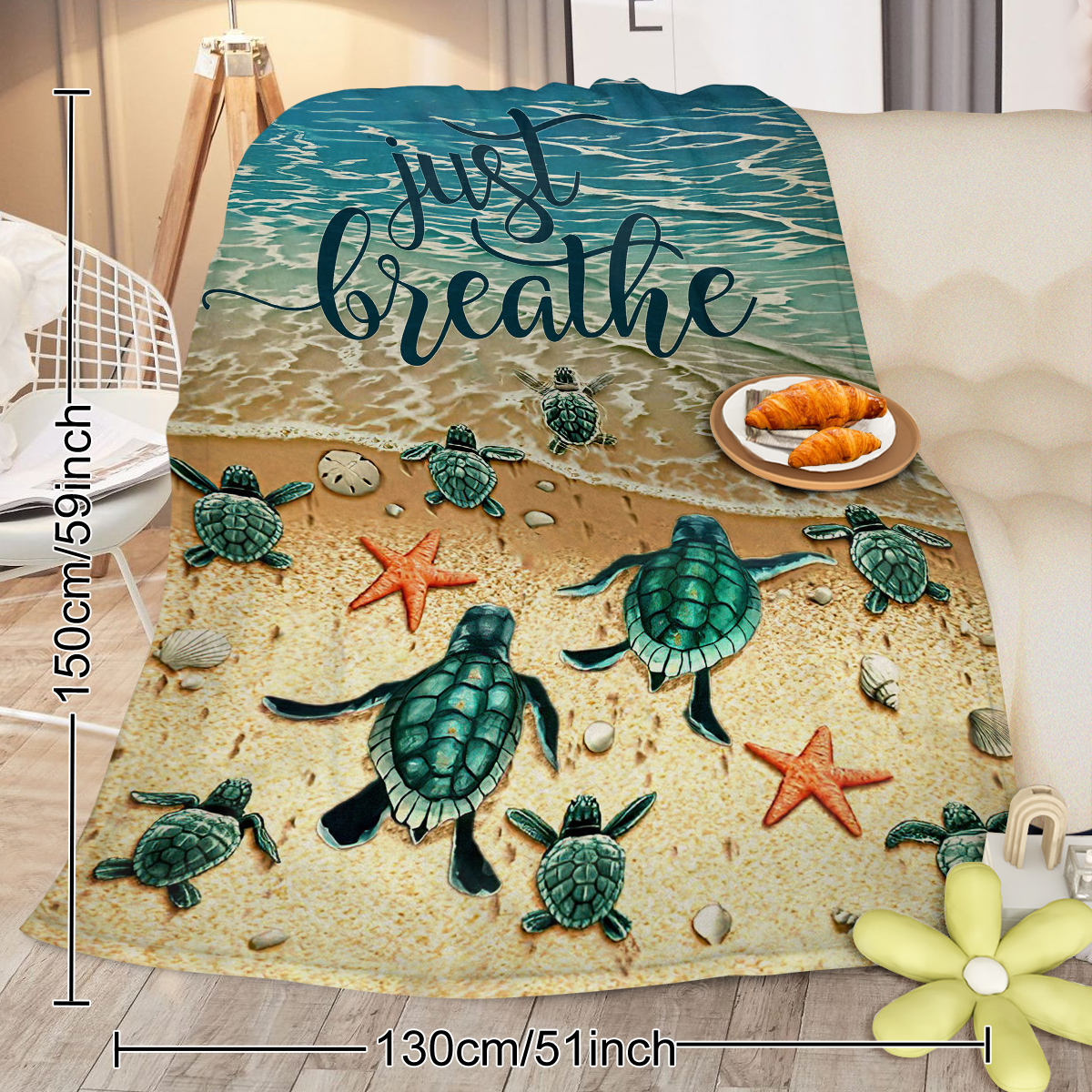 Tropical Baby Sea Turtle Flannel Fleece Blanket 3D Ocean Waves Flannel Soft Plush Throw Blanket Cozy Blankets For Bed Chair Car Sofa Couch Bedroom 75x100cm 130x150cm
