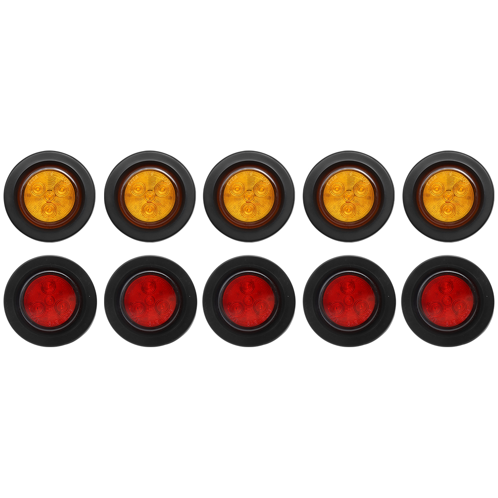 Truck Universal Small Taillight American Version, 4LED Rubber Ring Round Light With Plug ,12V, 5 Red Covers-5 Yellow Covers