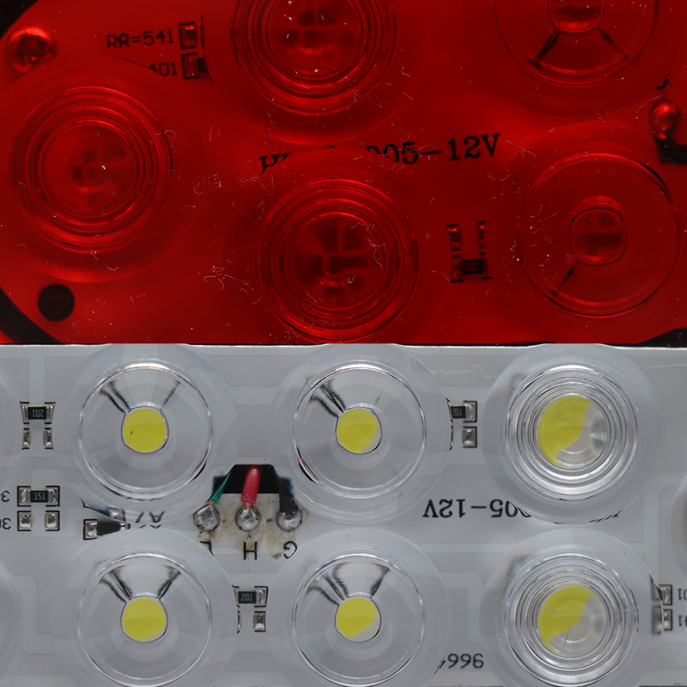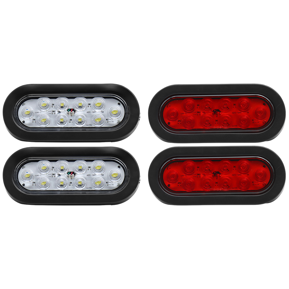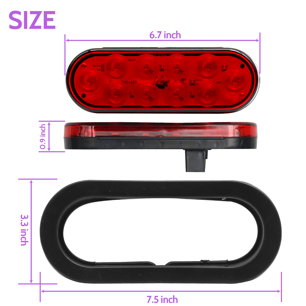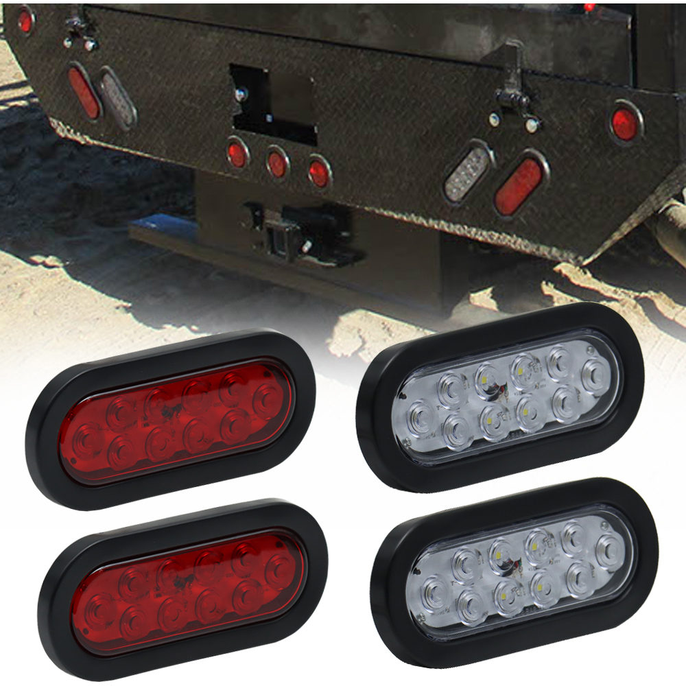 | Truck universal small taillight American version, rubber frame with plug 6 "10 LED oval light (12V), 2 red glossy covers+2 transparent glossy covers (4-piece set) |