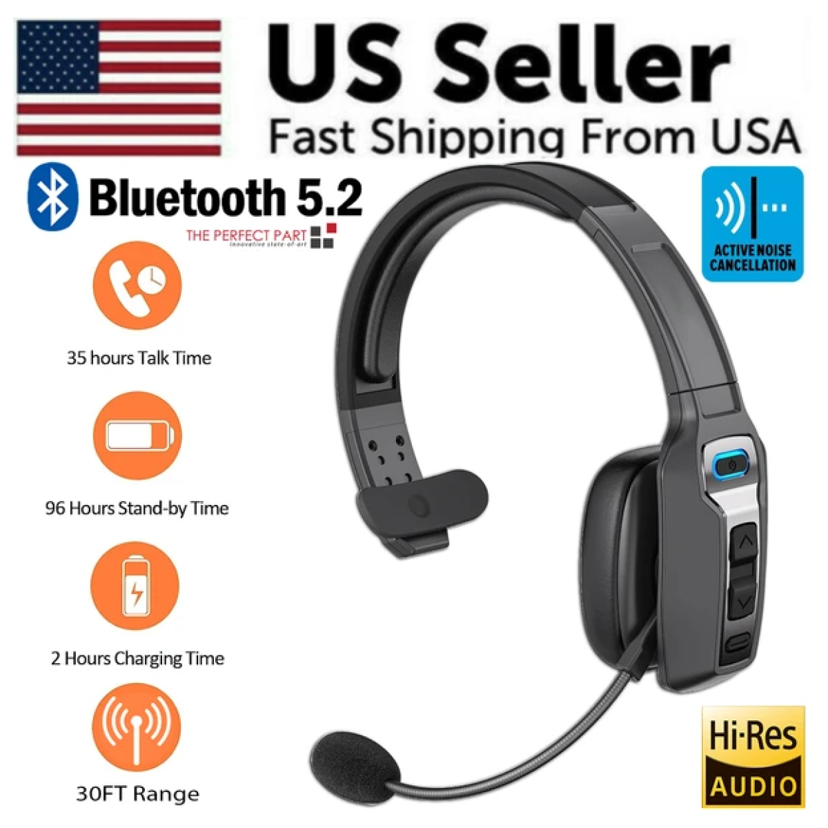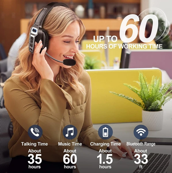 Trucker Bluetooth 5.2 Wireless Headset With Noise Cancelling Mic For Phones PC