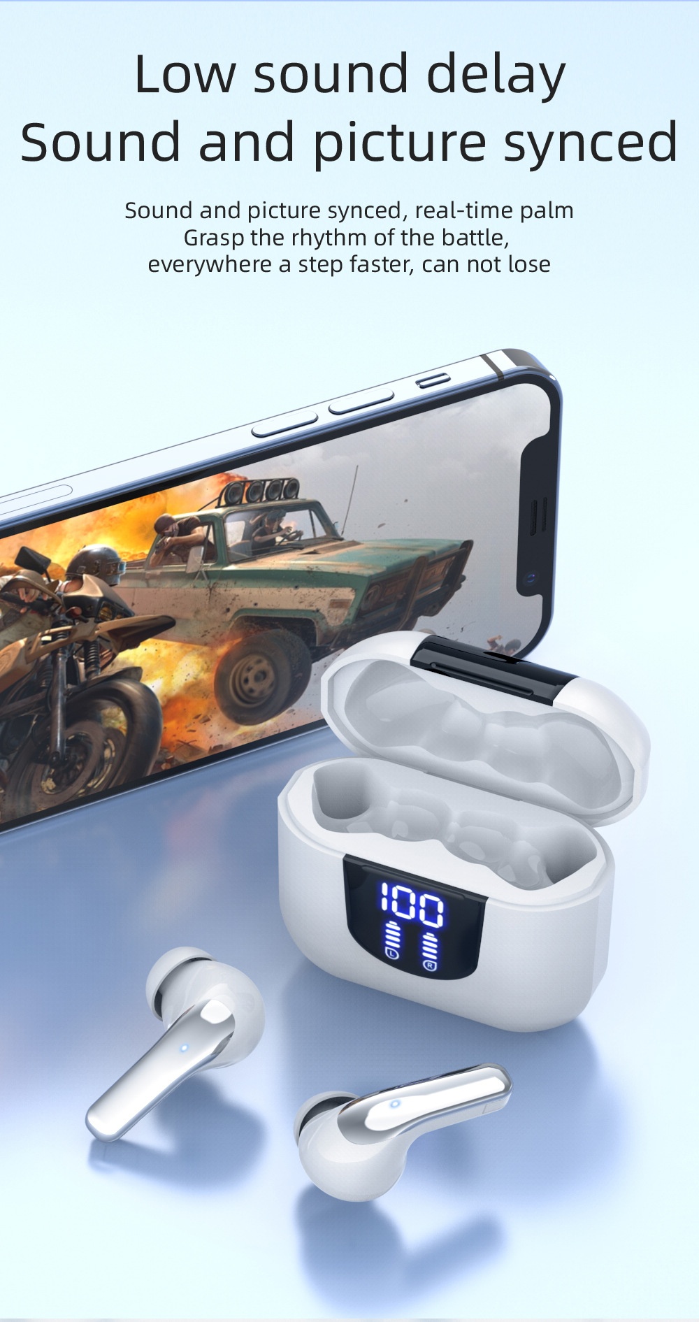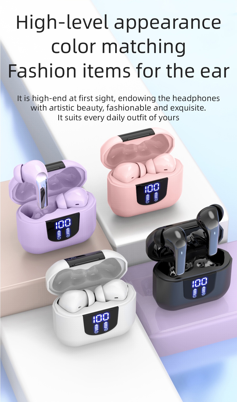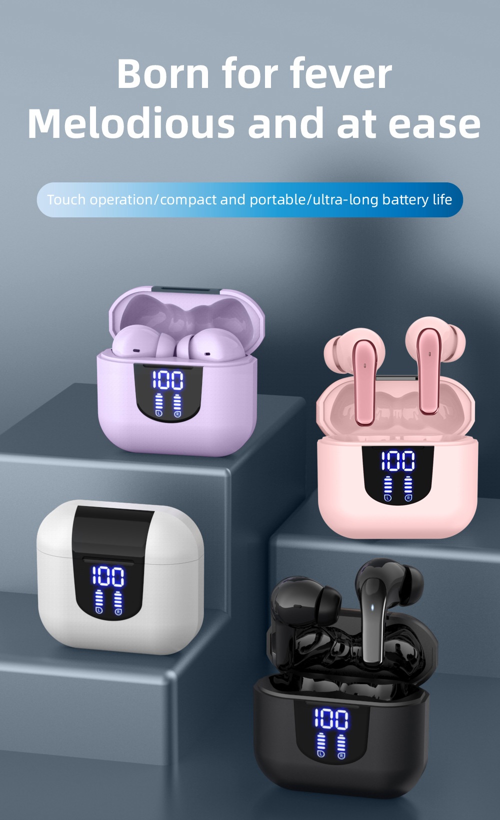 Features: Waterproof, noise cancellation, breathing light, ultra-long battery life, call functionality, music support, digital display screen, e-sports low latency