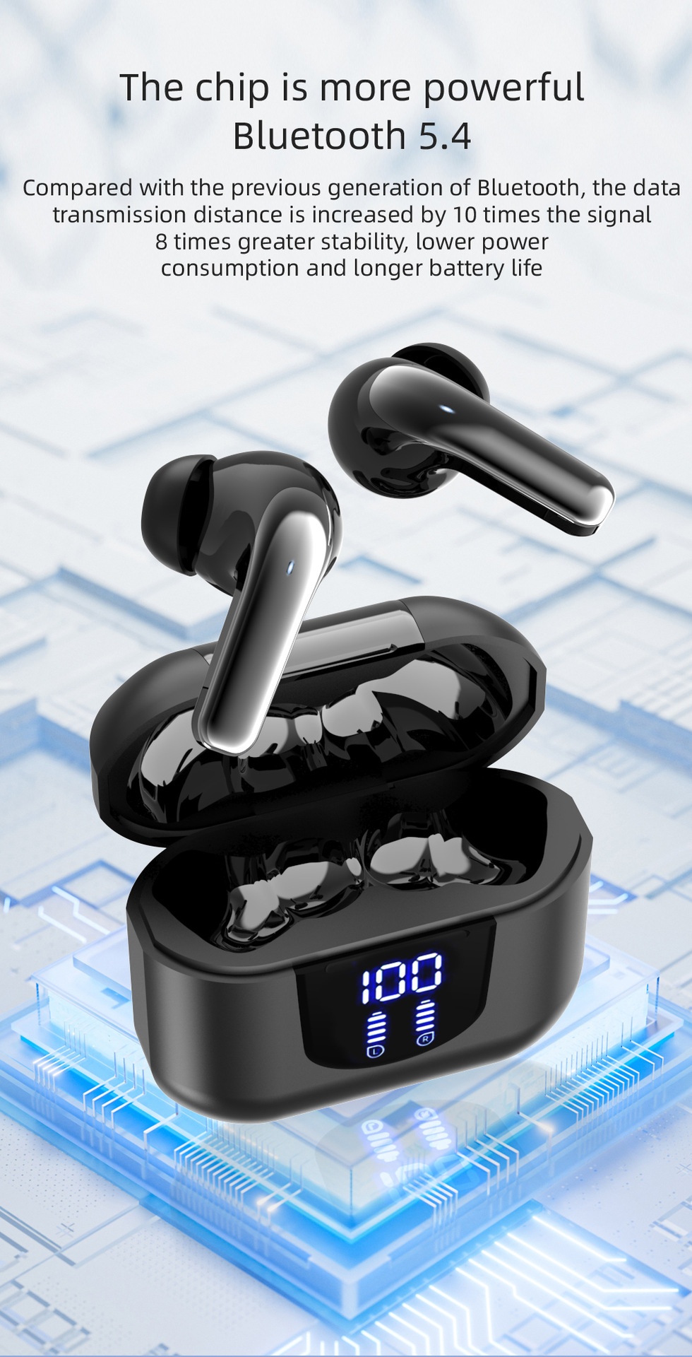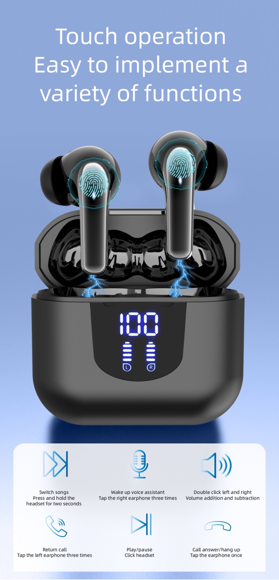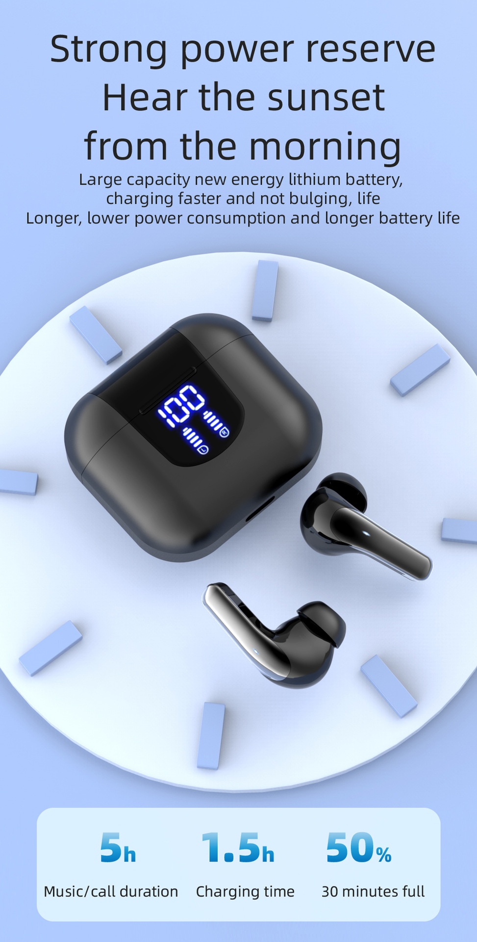 Features: Waterproof, noise cancellation, breathing light, ultra-long battery life, call functionality, music support, digital display screen, e-sports low latency