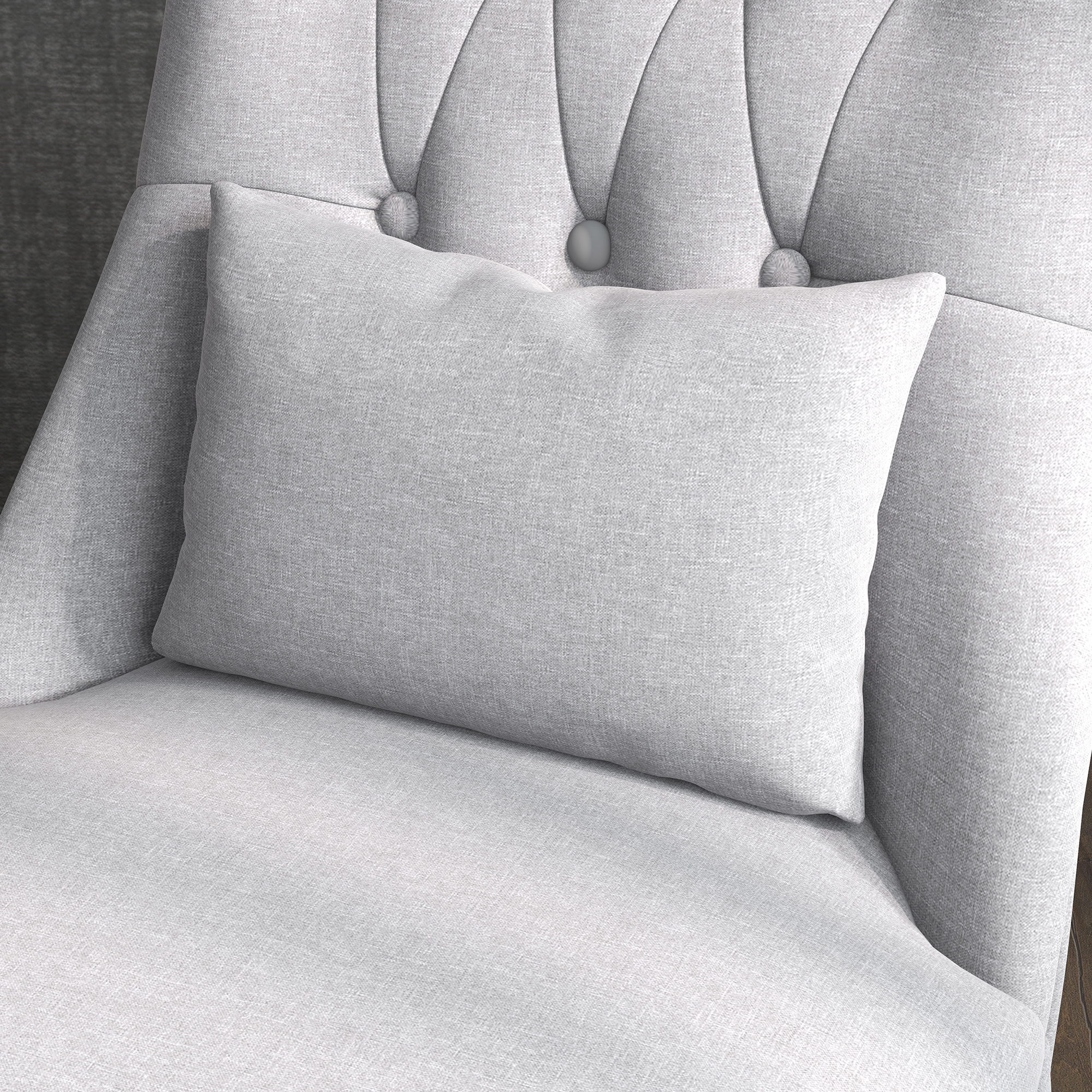 Sink into something comfortable without sacrificing on your precious home space with this accent chair, from . Linen-look fabric, the curved wooden legs and delicate button tufting on the back evokes a vintage style - a statement in any setting. Soft cushioned seat and curved backrest for comfort and support. Something different for this season and beyond.