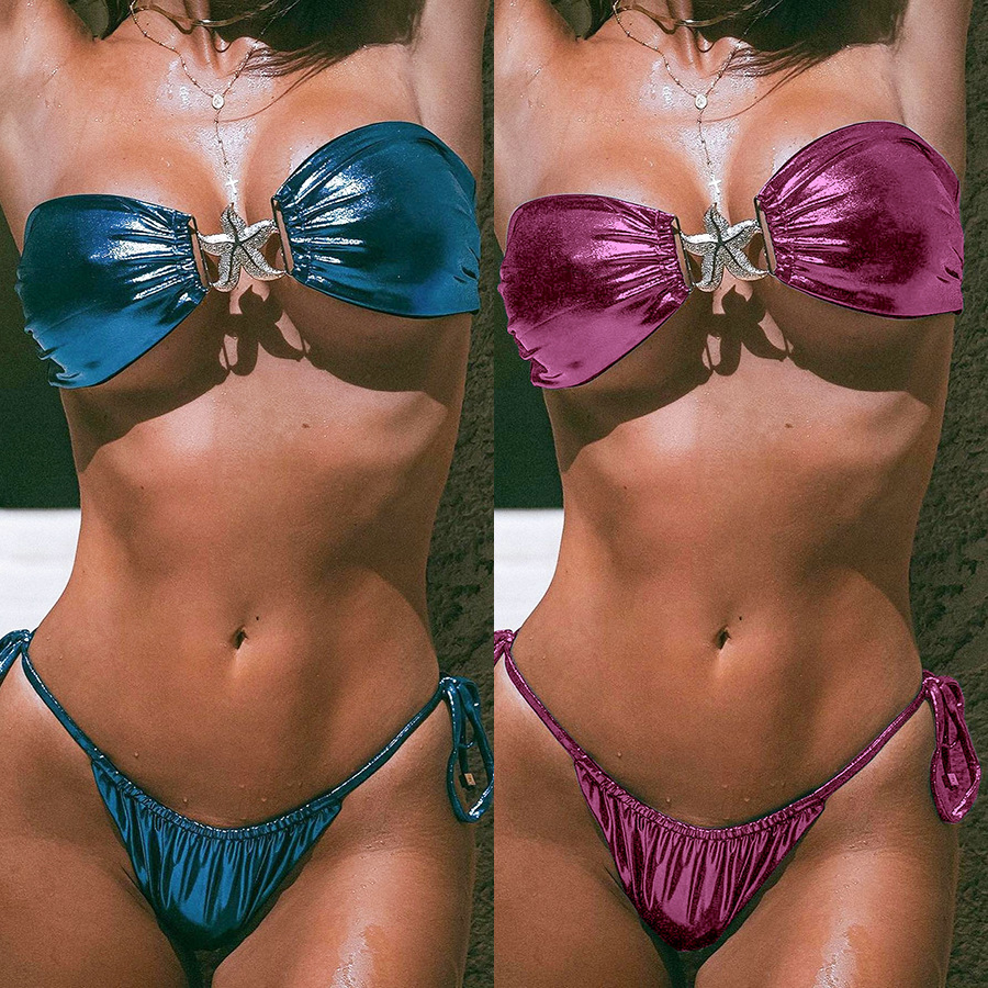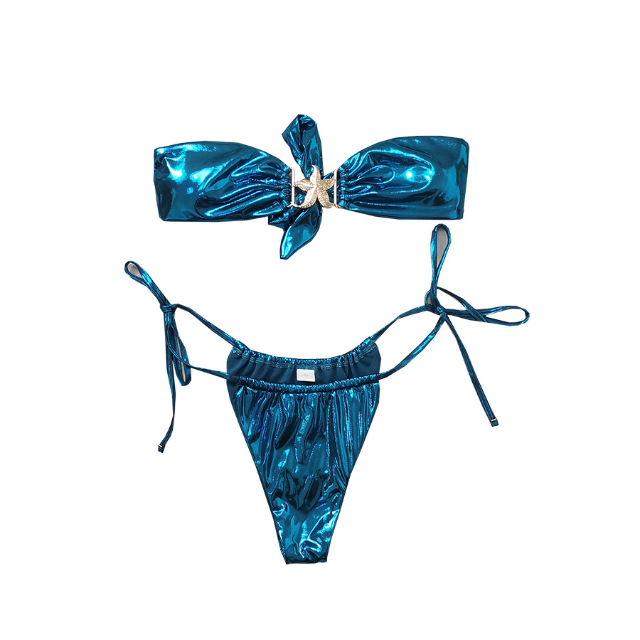 Tube Top Split Bikini Blue Glossy Gold Starfish Female
