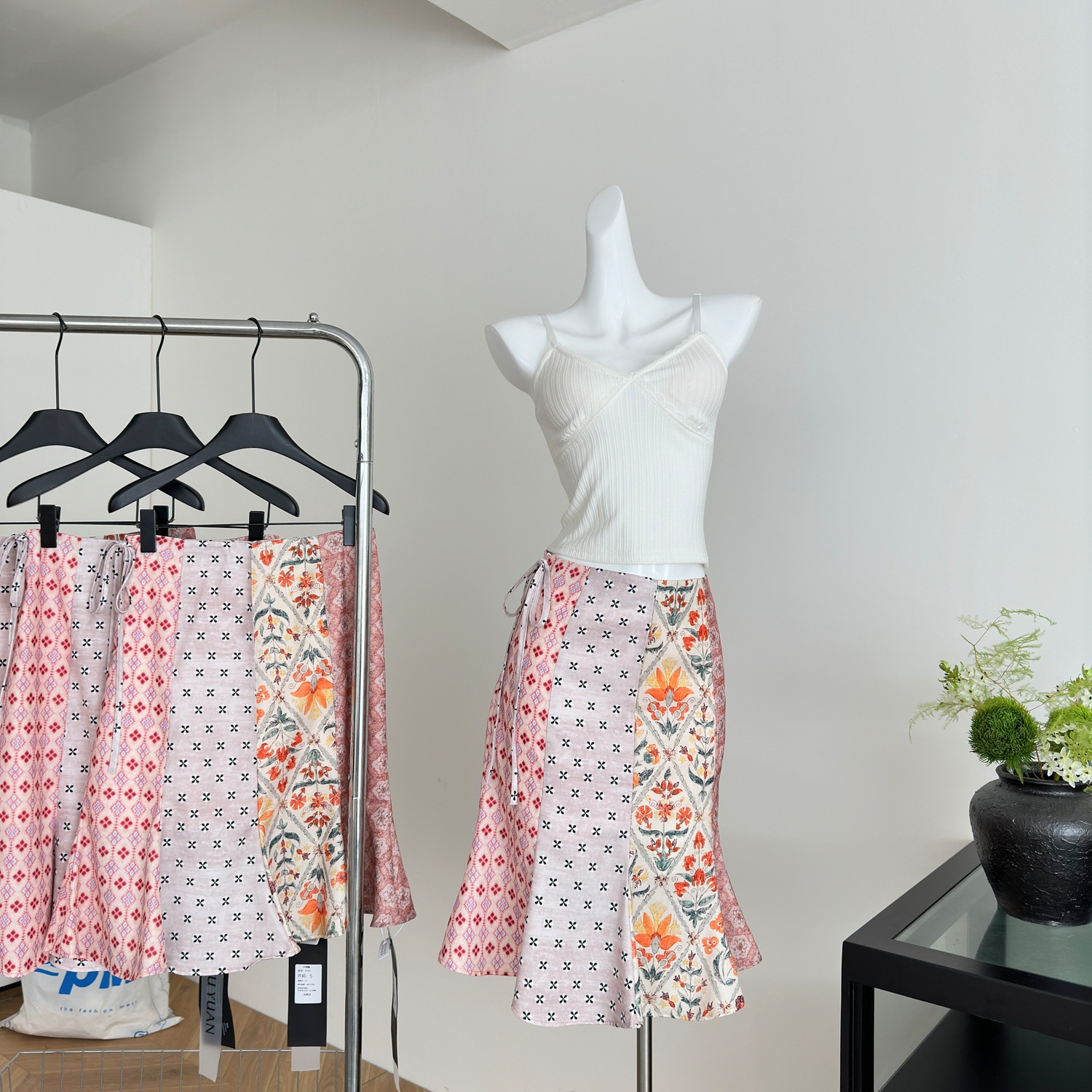 Skirt length: mid-length skirt