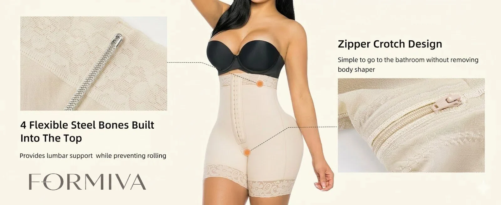 • BUTT LIFTING SHAPEWEAR SHORTS WITH ZIPPER CROTCH: The fajas moldeadoras de cintura y abdomen designed with targeted compression to lift and enhance the buttocks creating a naturally rounded shape. The zipper crotch allows easy bathroom access without removing the colombian faja for women . A practical feature loved by customers looking for butt lifting shapewear shorts with convenience.