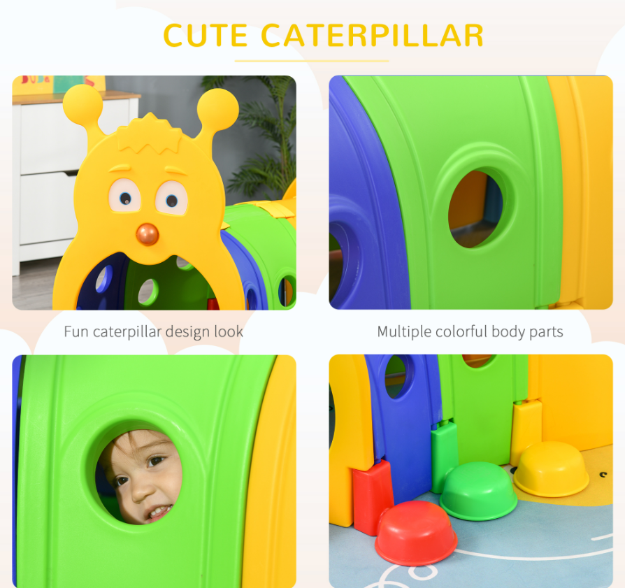 Tunnel Kids Outdoor Play, Multicolor 59 Inches Long, Non-toxic PP, Toddler Toy For 3-6 Years Old