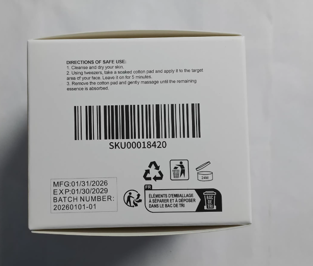 Dimensions: Makeup Pads: 6.2 x 6.2 cm; Bottle: 7.3 x 6.1 cm; Tweezers: 5.5 cm