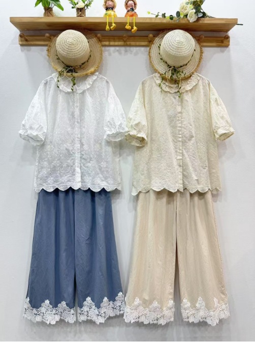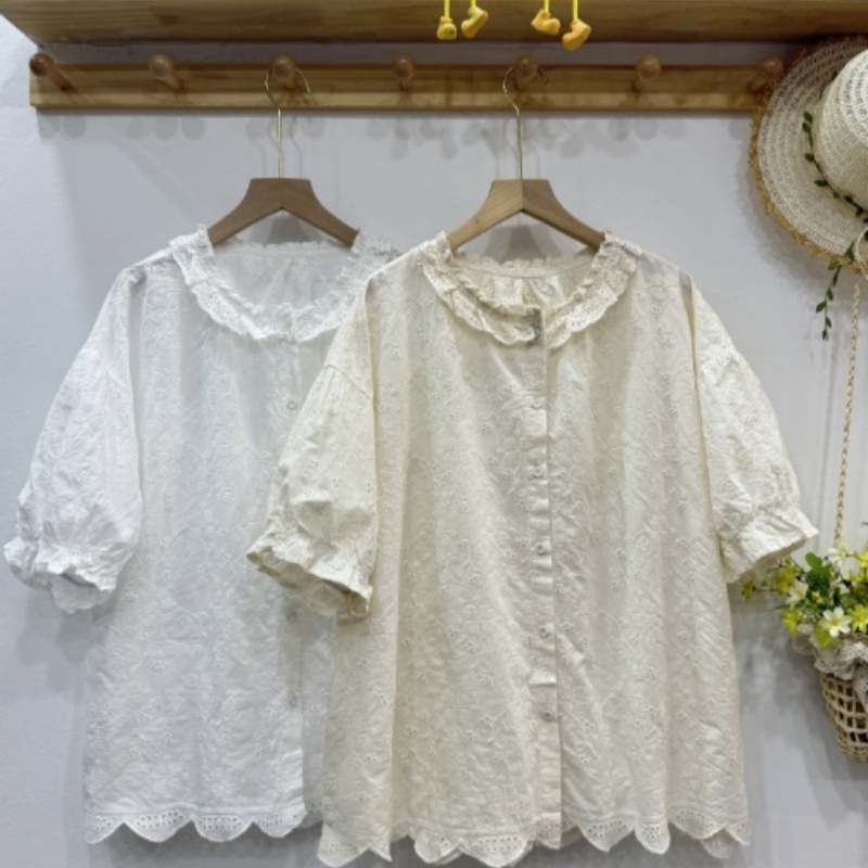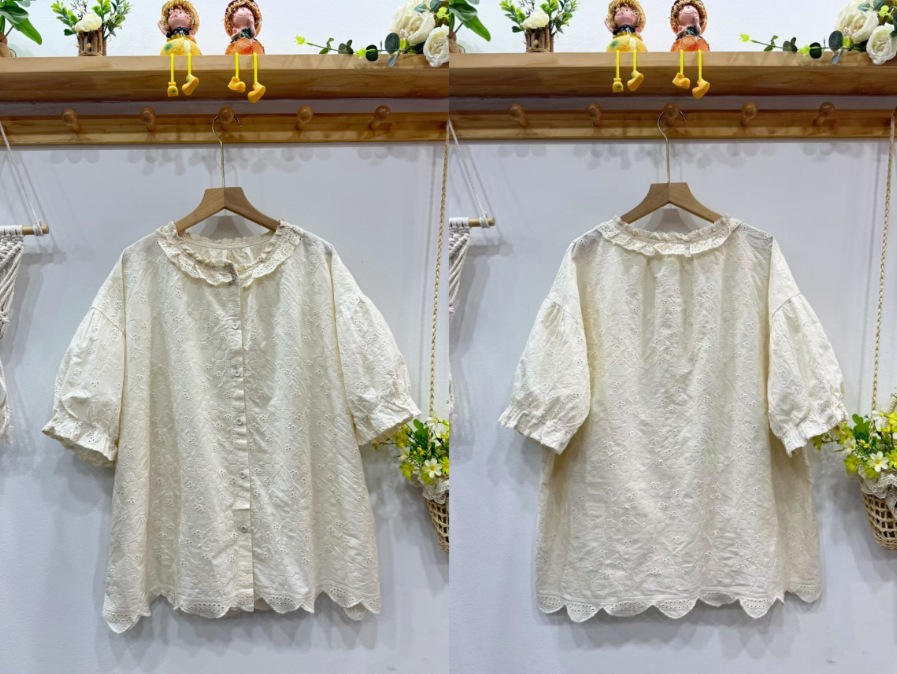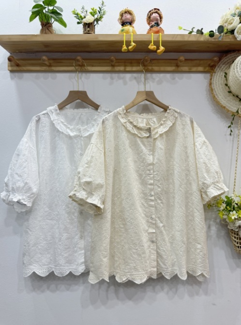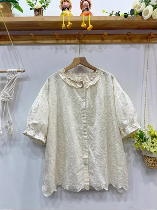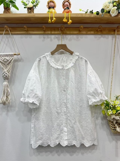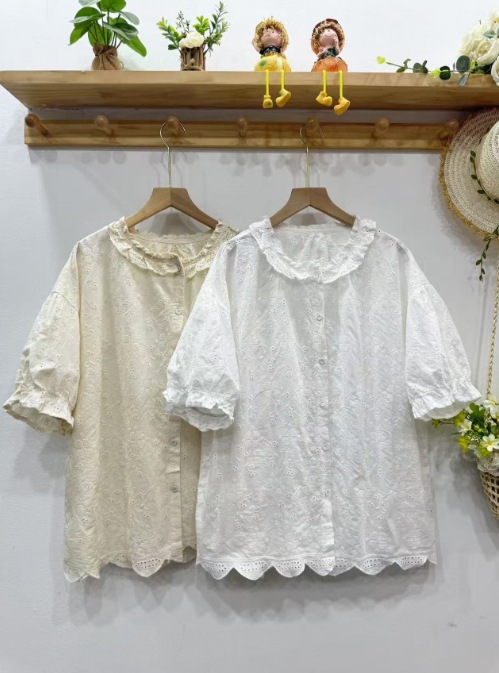 Turn-down Collar Japanese-style Cotton-linen Short-sleeve Shirt