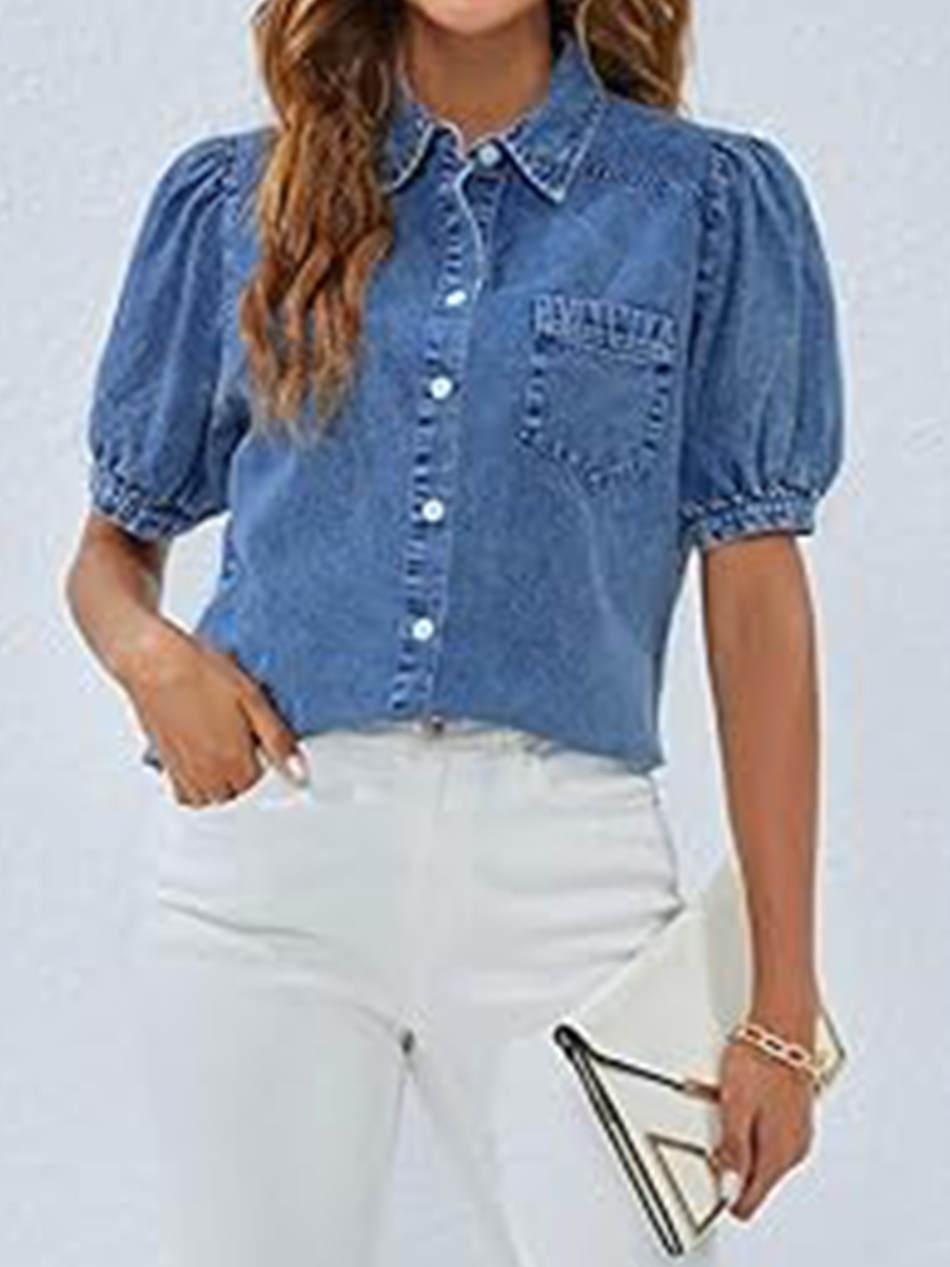 Product information: Fabric name: Denim Color: Blue Main fabric content: Cotton Sizes: S, M, L, XL, XXL Sleeve length: Short sleeve