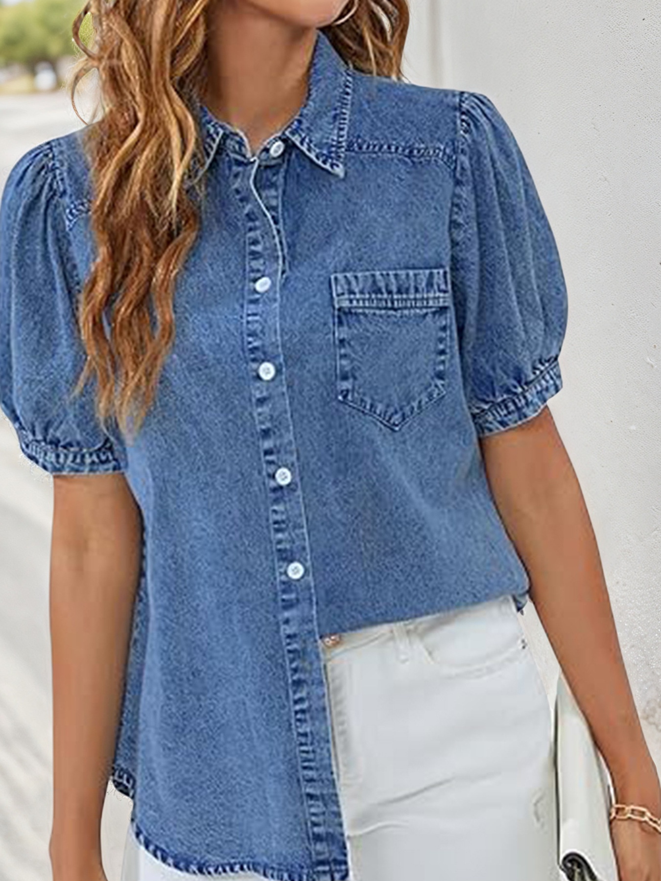 Turn-down Collar Slim-fit Denim Shirtversatile And Casual