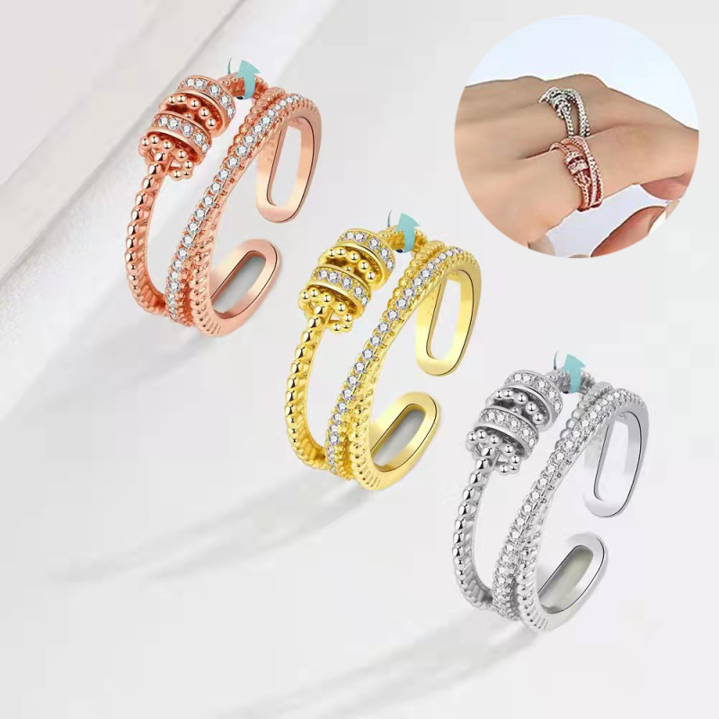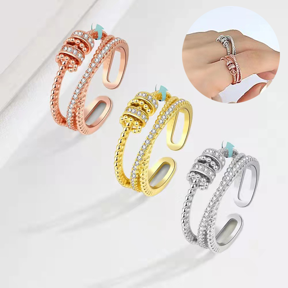 Turnable Anxiety Rings With Bead Relieve Stress Rings For Women Men Jewelry