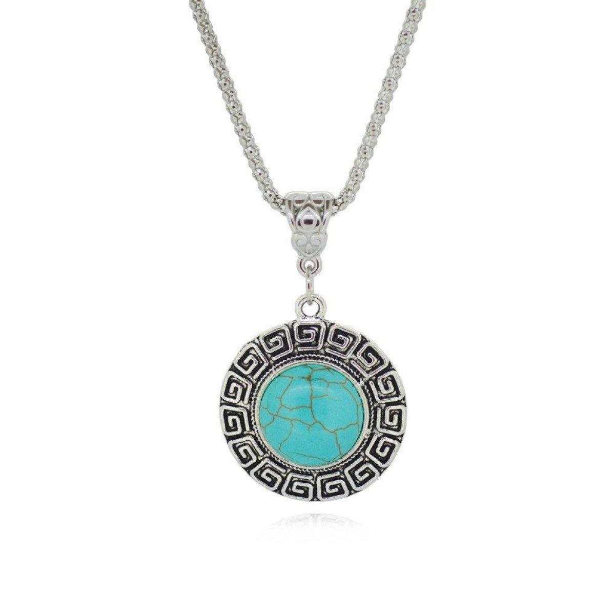 Greek-patterned Turquoise Necklace with Ancient Silver Retro-antiquity in Europe and America