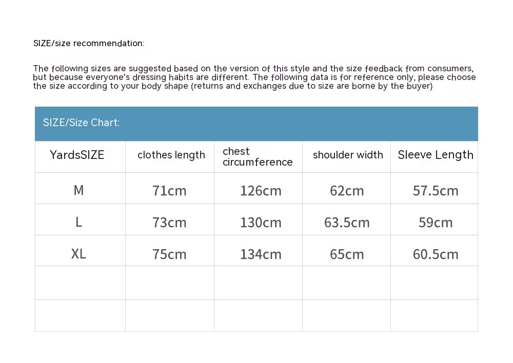 Note: 1. Asian sizes are 1 to 2 sizes smaller than European and American people. Choose the larger size if your size between two sizes. Please allow 2-3cm differences due to manual measurement. 2. Please check the size chart carefully before you buy the item, if you don't know how to choose size, please contact our customer service. 3.As you know, the different computers display colors differently, the color of the actual item may vary slightly from the following images.