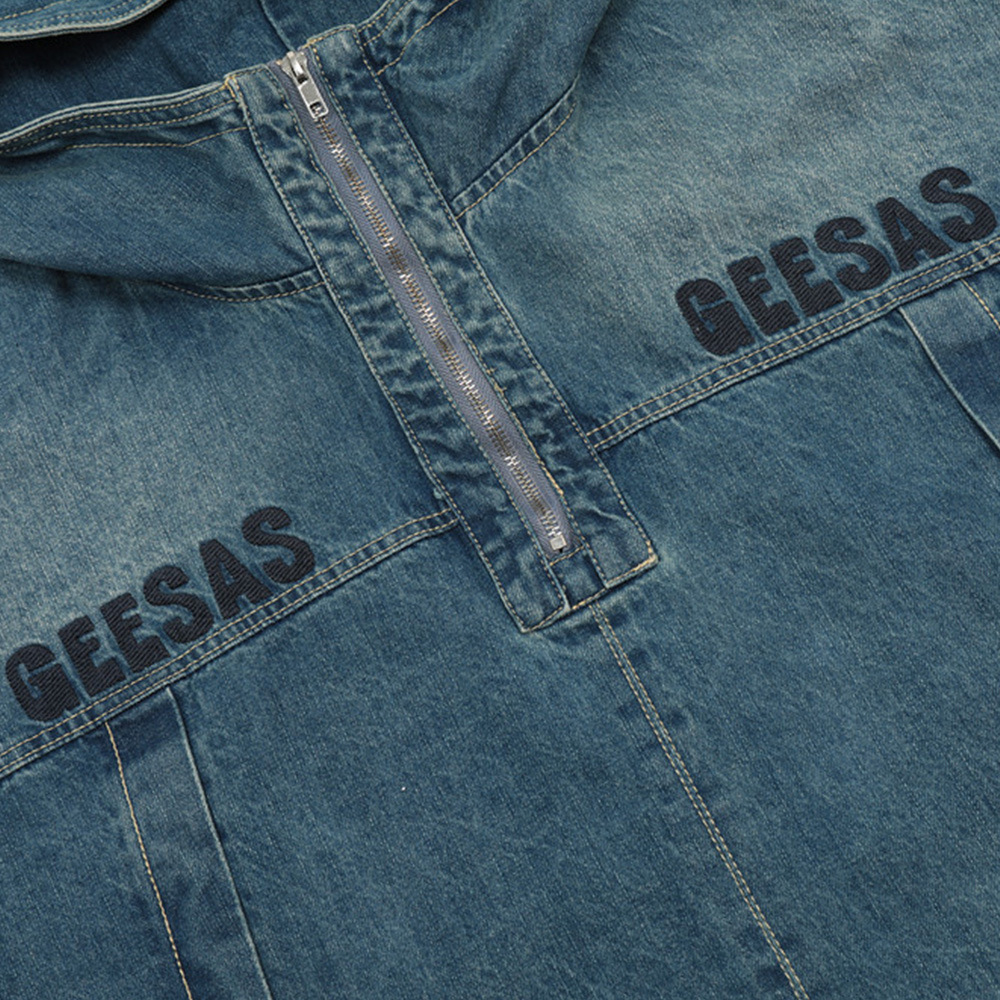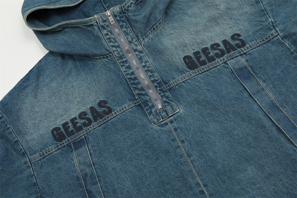 Turtleneck Hooded Denim Hoodie Men's European And American