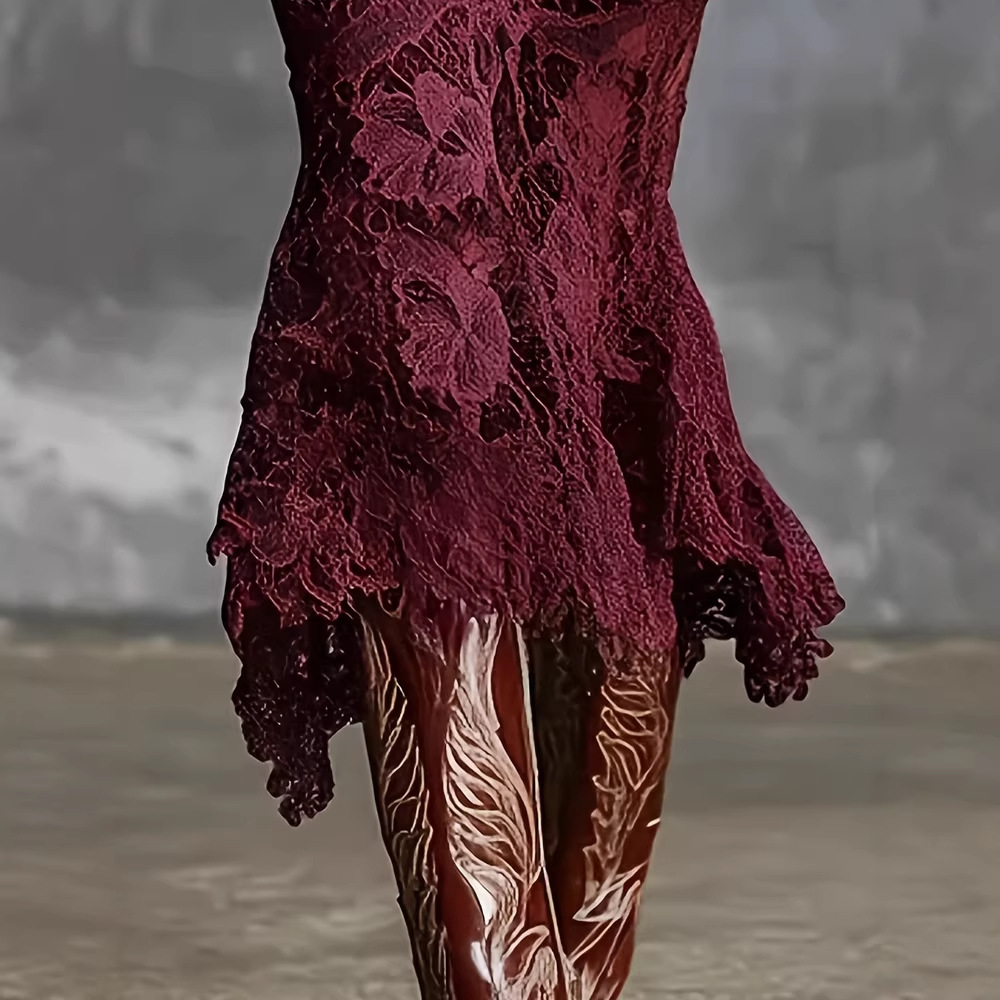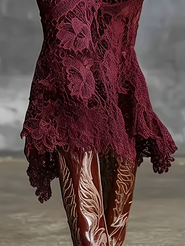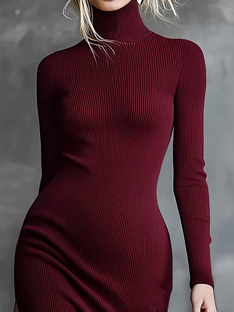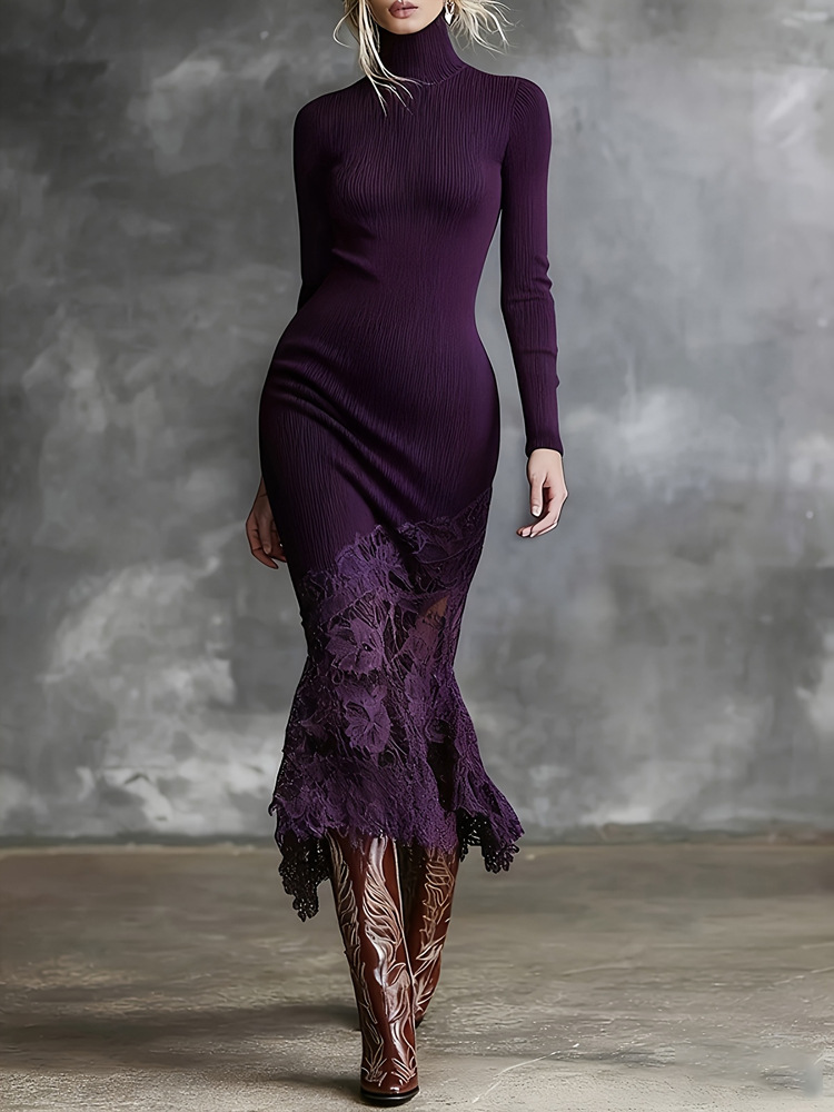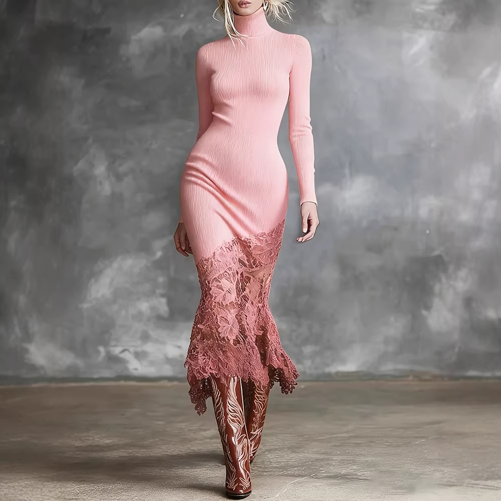 Turtleneck Knit Dress With A Lace Hema Sophisticated Mid-length Skirt