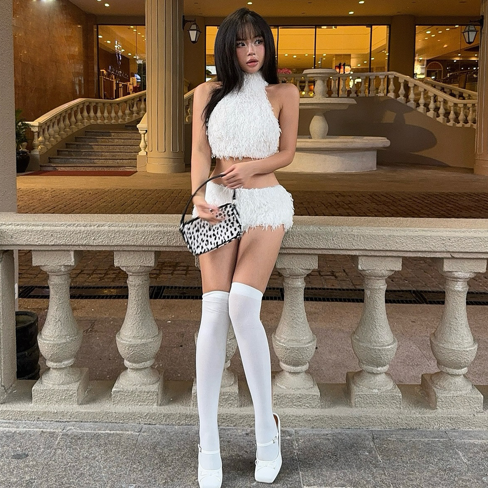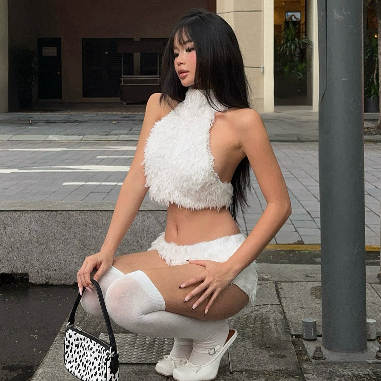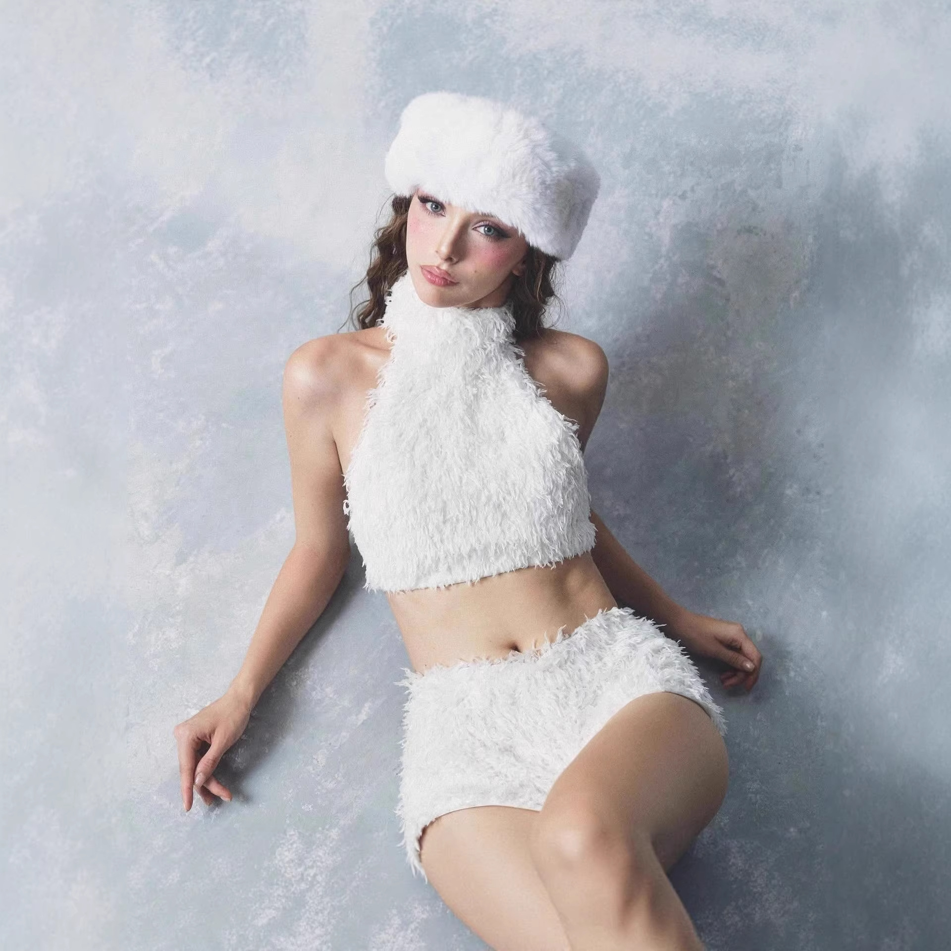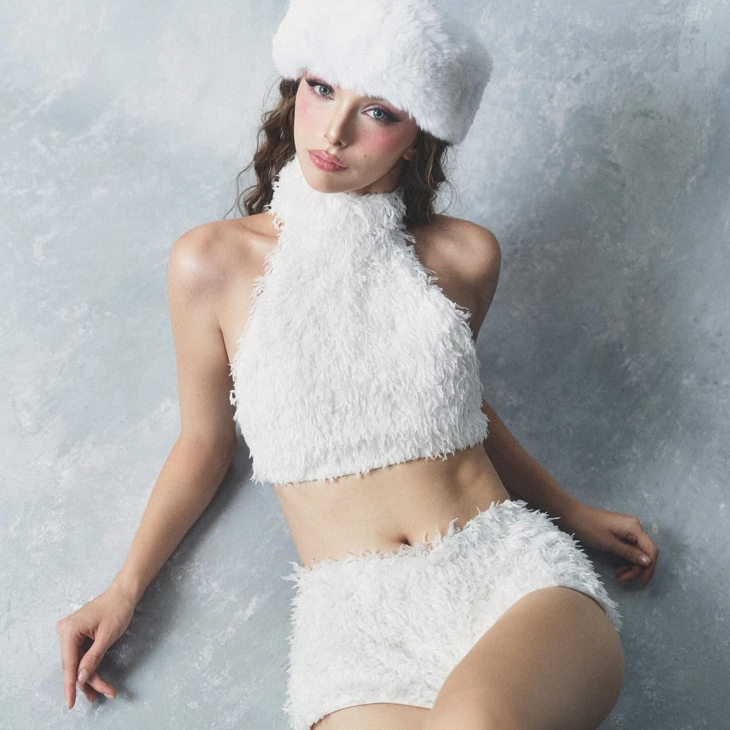 Turtleneck Plush Thermal Base-layer Top And Sexy Shorts Set