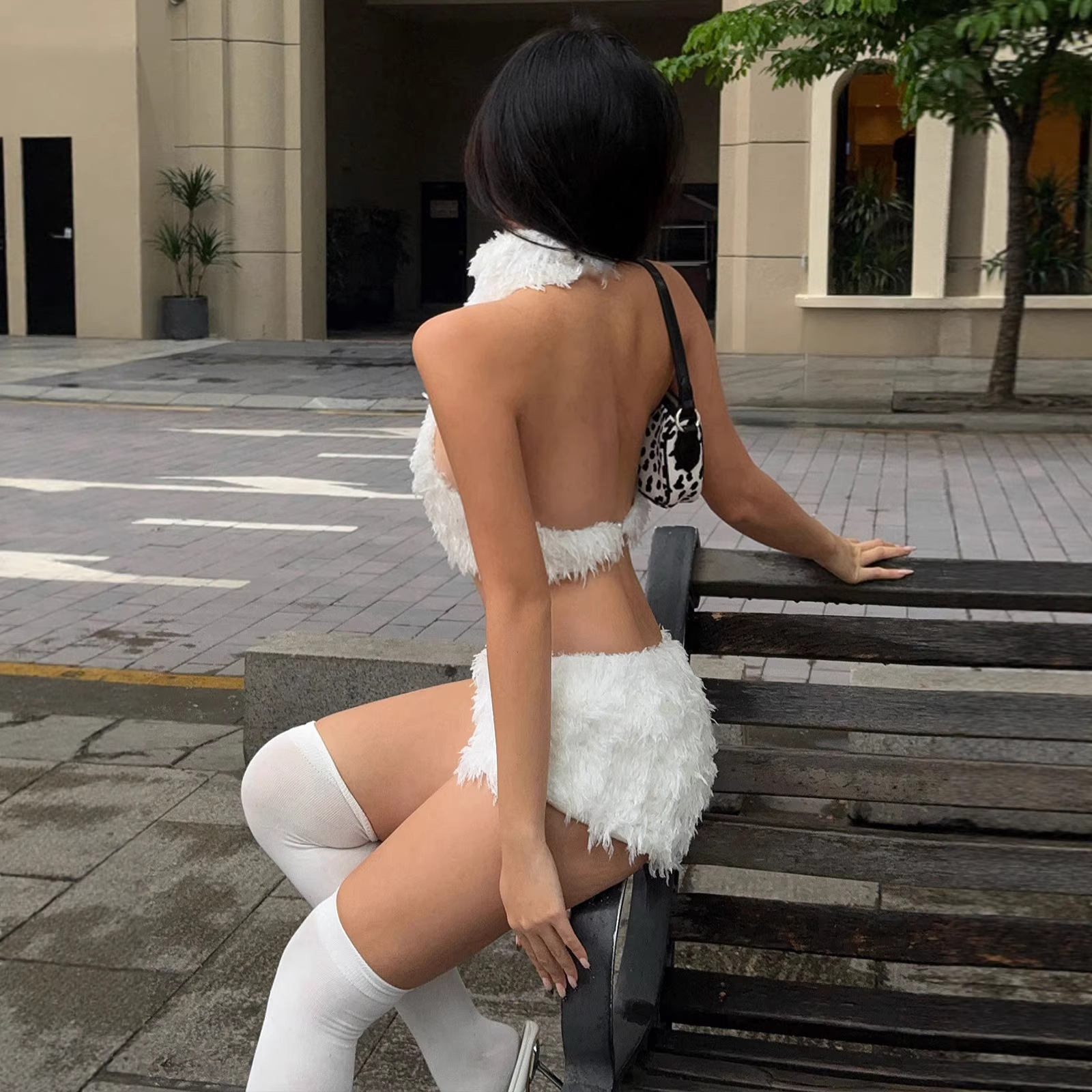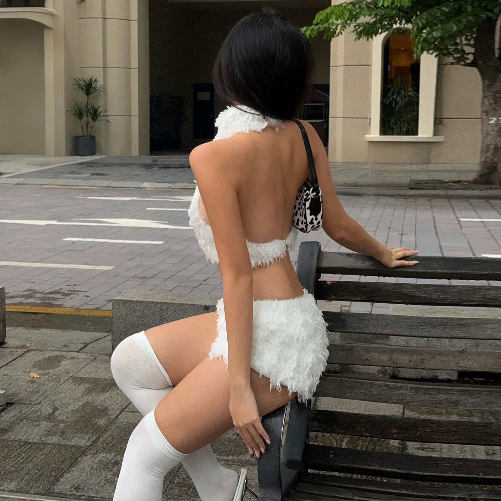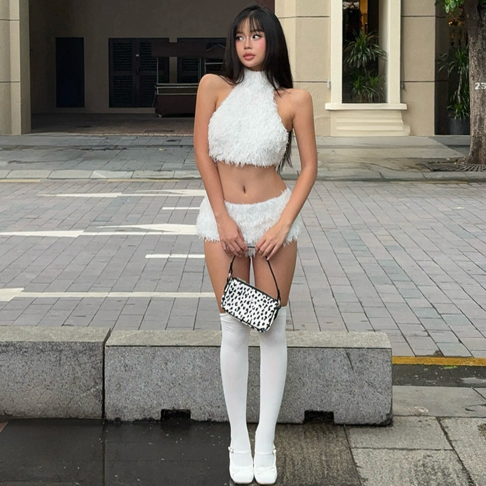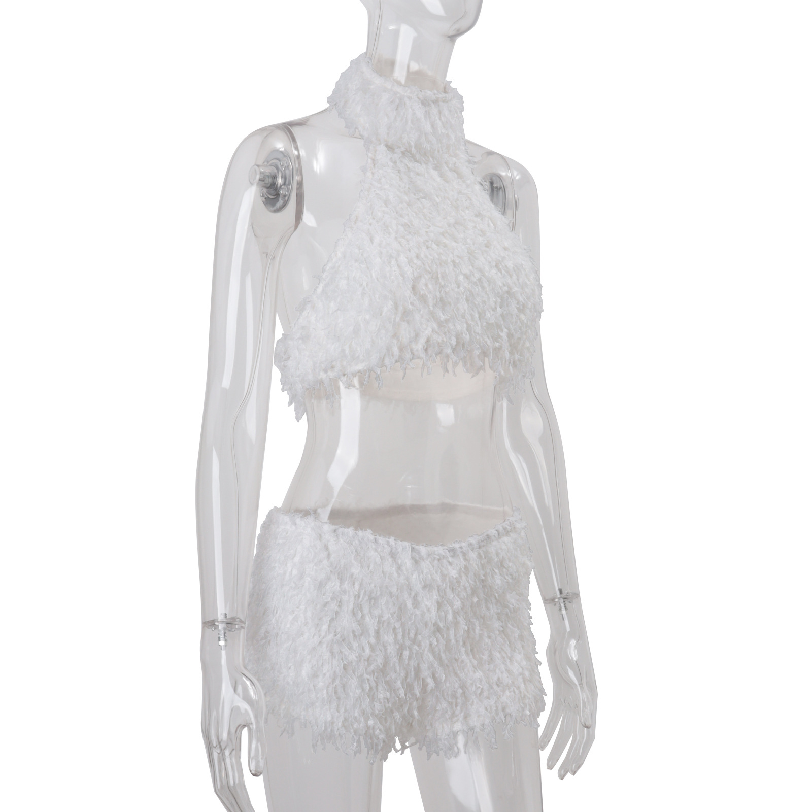 Turtleneck Plush Thermal Base-layer Top And Sexy Shorts Set