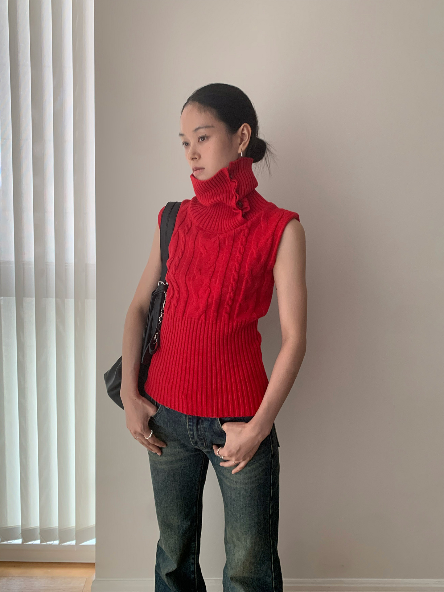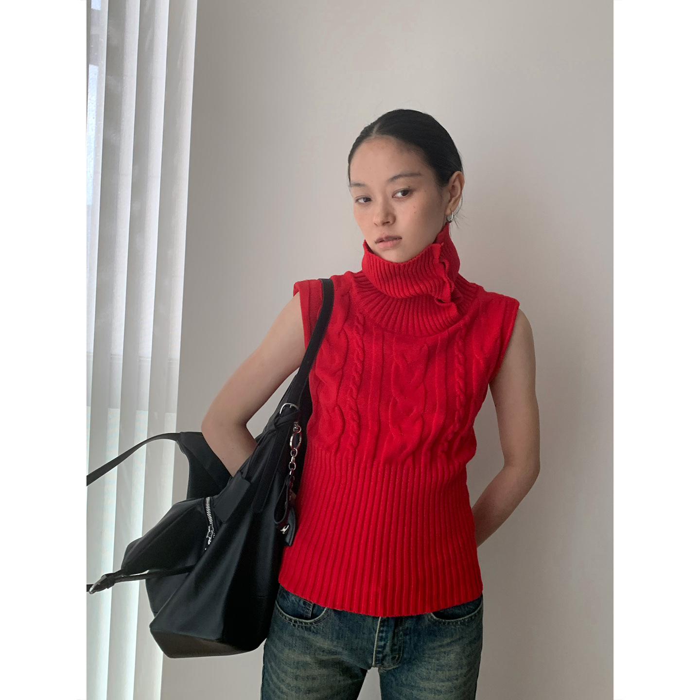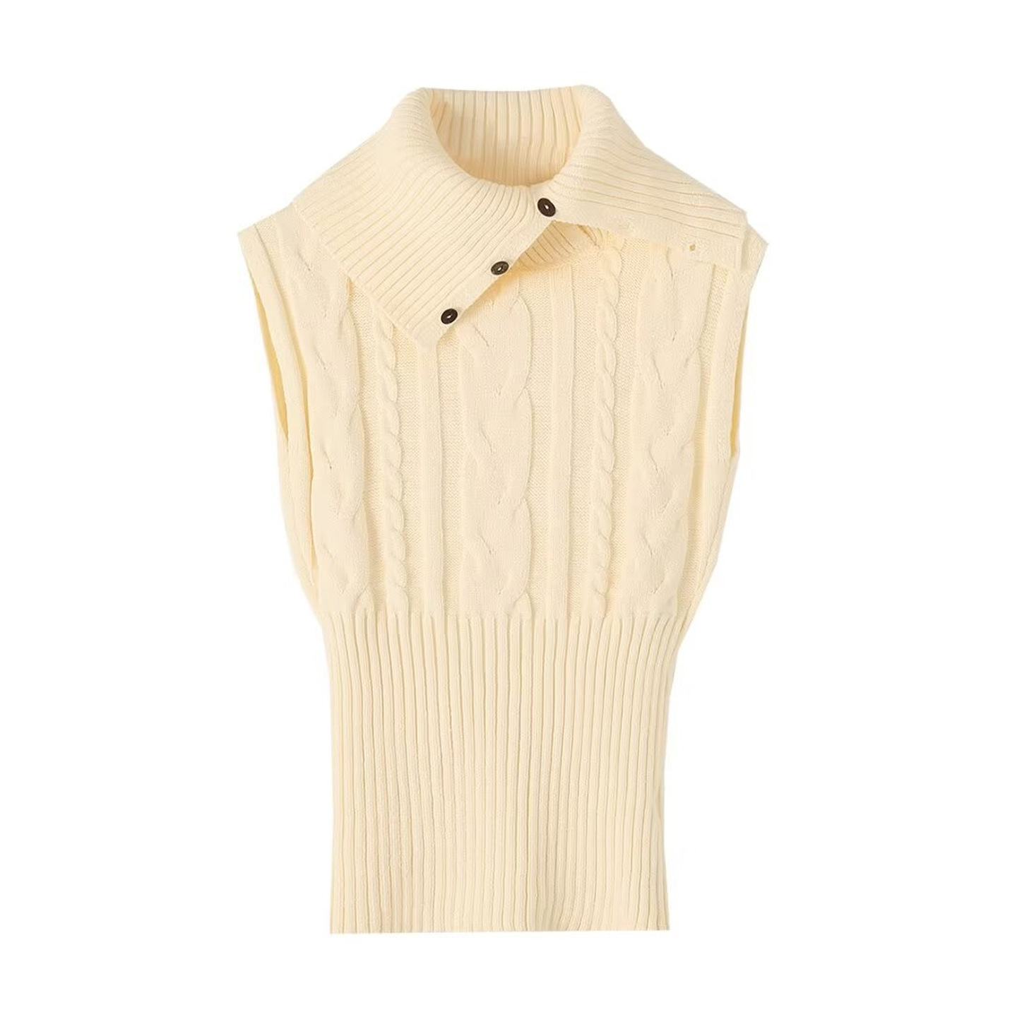 Turtleneck Sleeveless Knit Top With A Turn-down Collar Slim-fit Sweater
