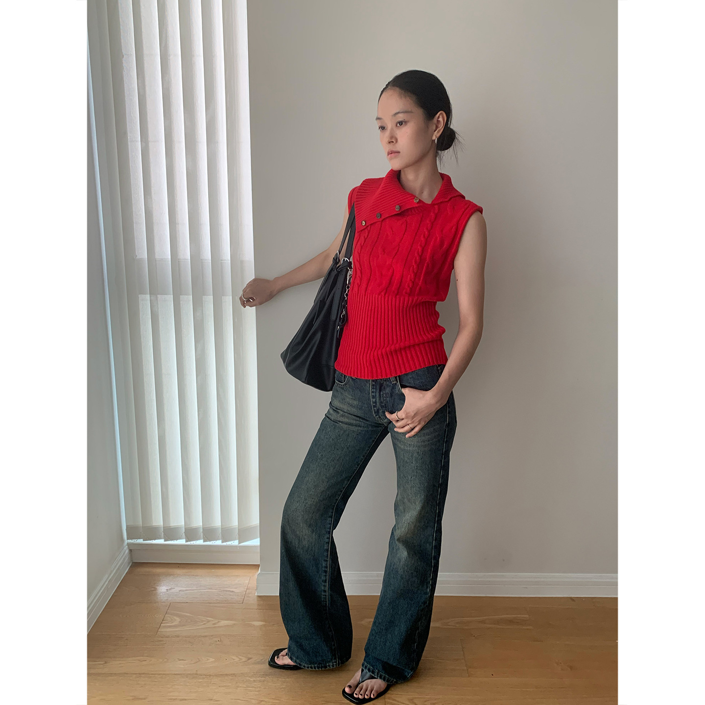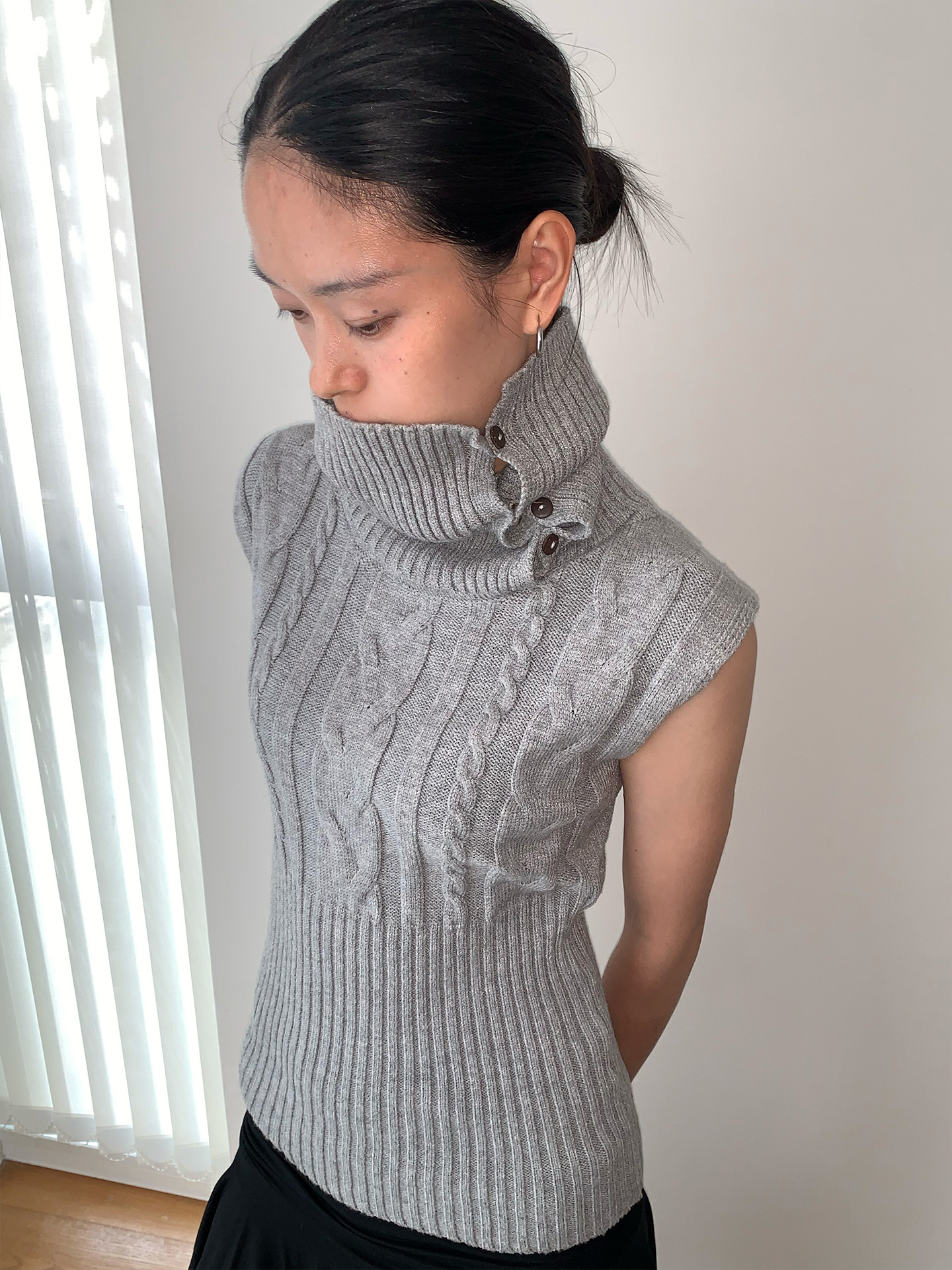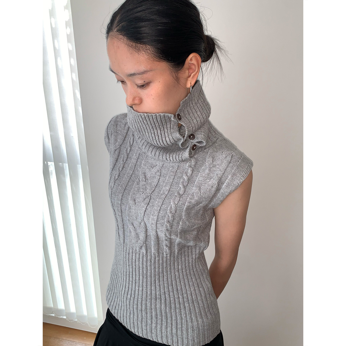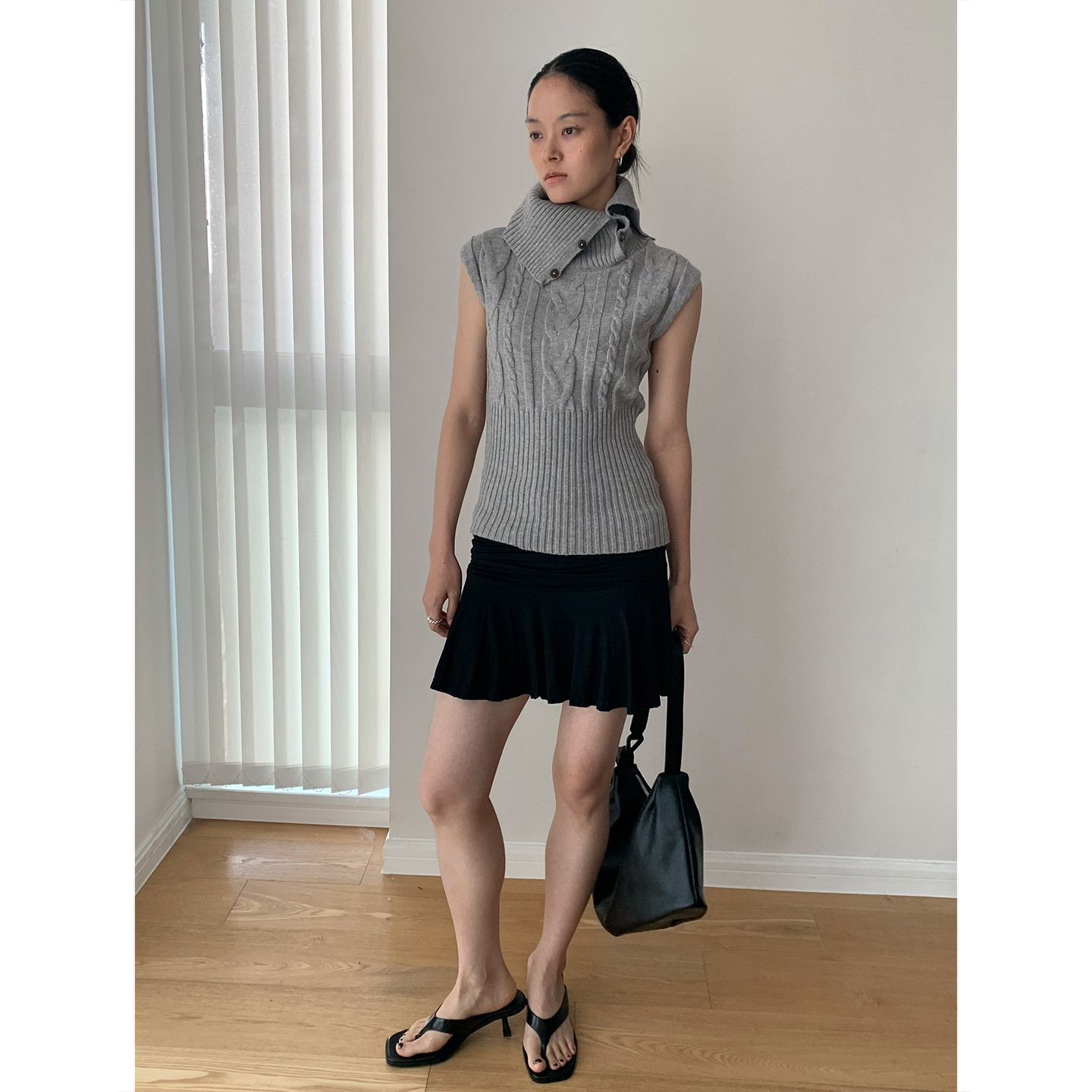 Turtleneck Sleeveless Knit Top With A Turn-down Collar Slim-fit Sweater
