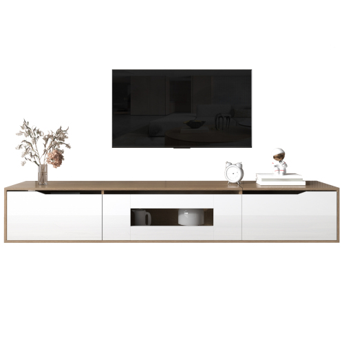Product Name:TV cabinet, high gloss TV cabinet, color matching high-glosswhite and wood color, with color changing LED light.
