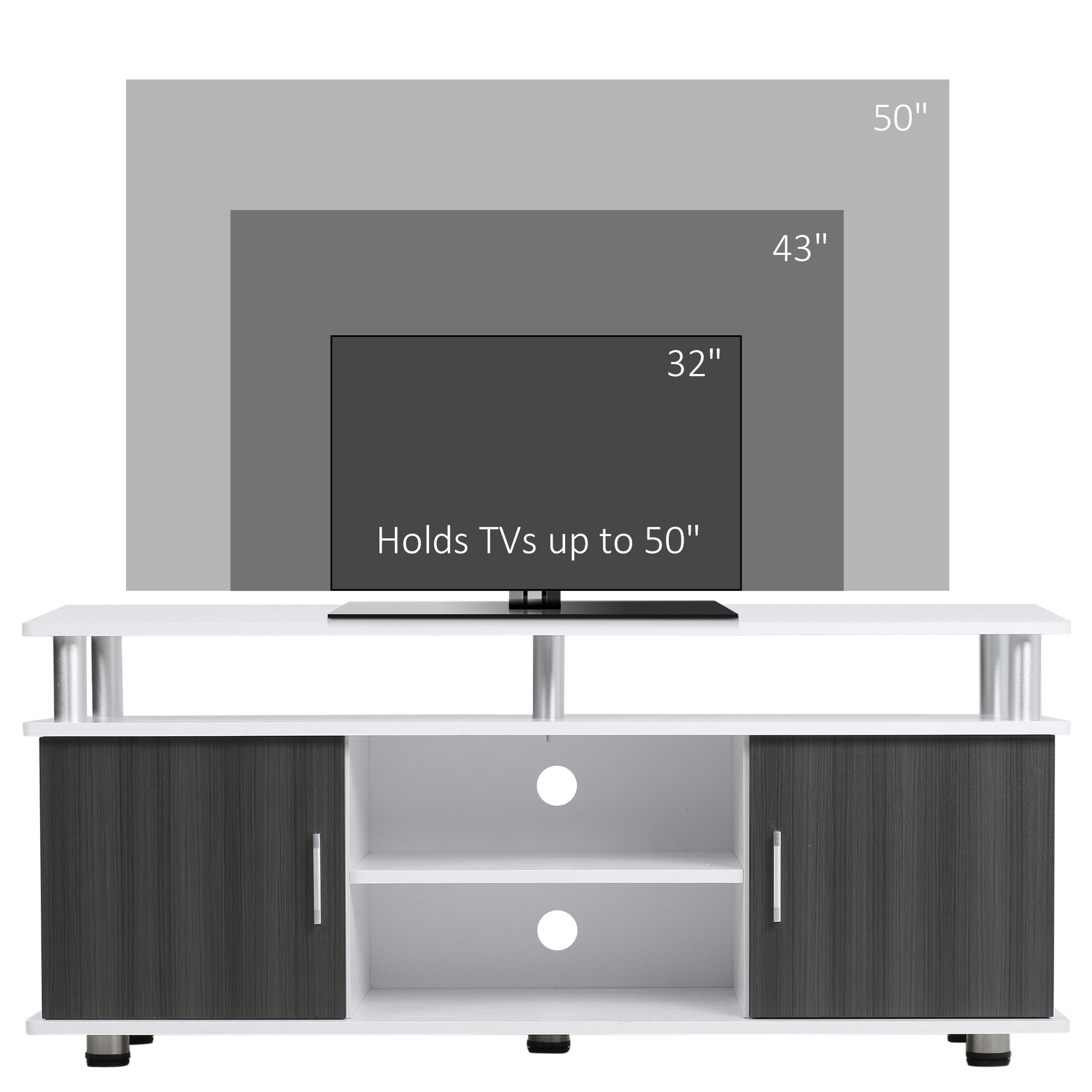 TV unit blends perfectly into your modern, simple lifestyle. It features the large top panel which holds up to 120 cm flat panel TV screen. There are also open display shelves to hold your entertainment equipment and two compartments with doors for your loose stuff such as CDs, DVDs, and games. Designed to be lightweight and space-saving. The cable management system helps you maintain a tidy entertainment space.