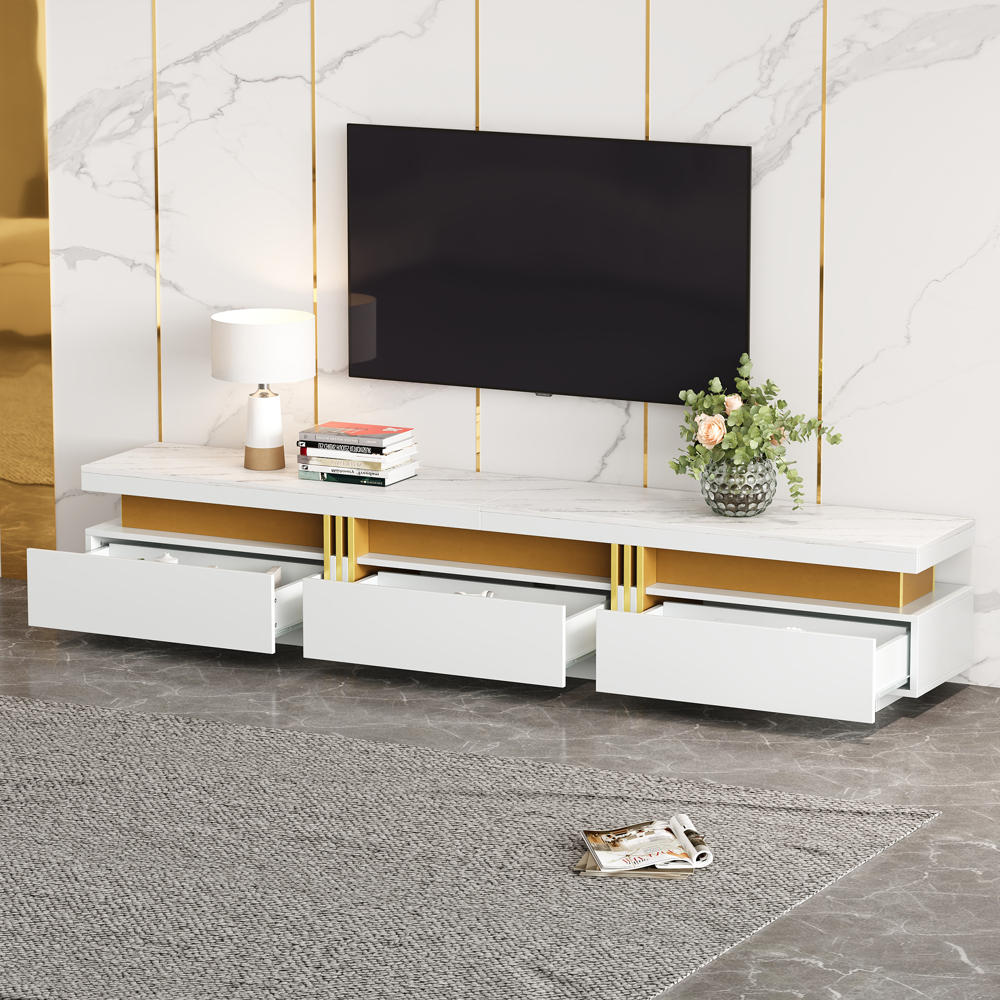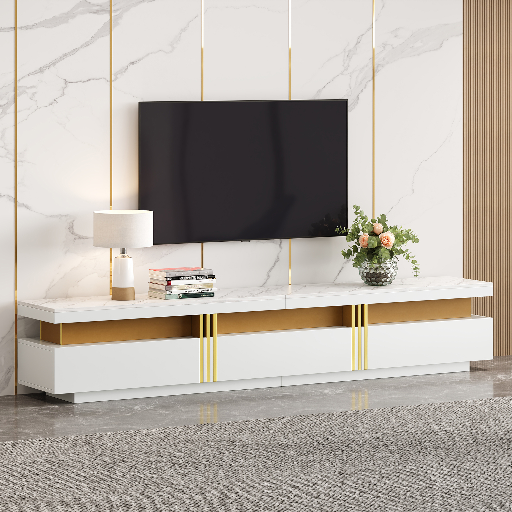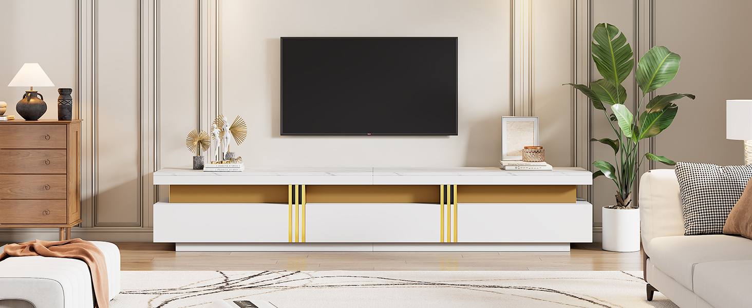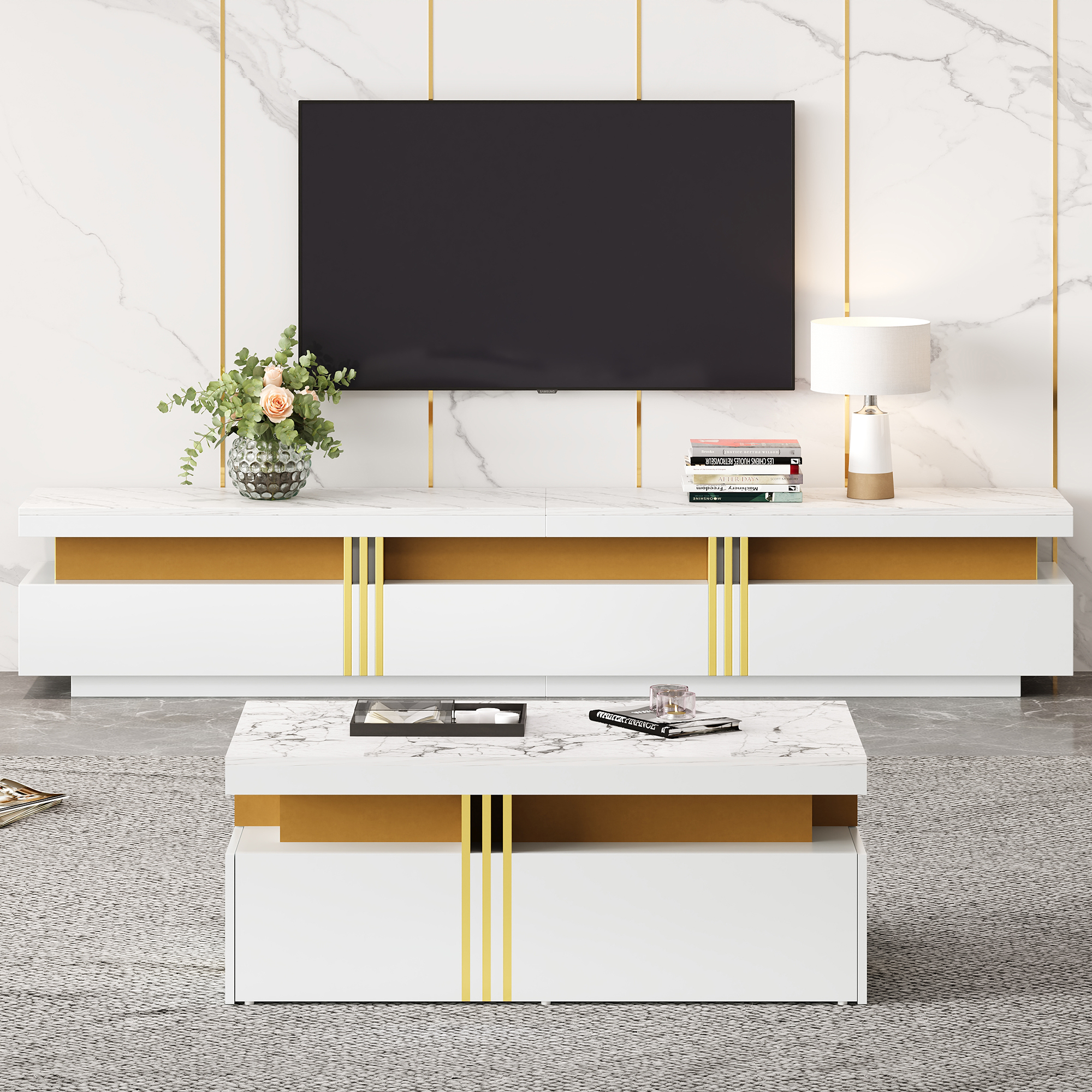 - Modern Minimalist Style Combination: The TV stand and coffee table feature a unified imitation marble top. This modern, minimalist style is clean and refined, perfectly blending into any living space and enhancing the overall aesthetic.