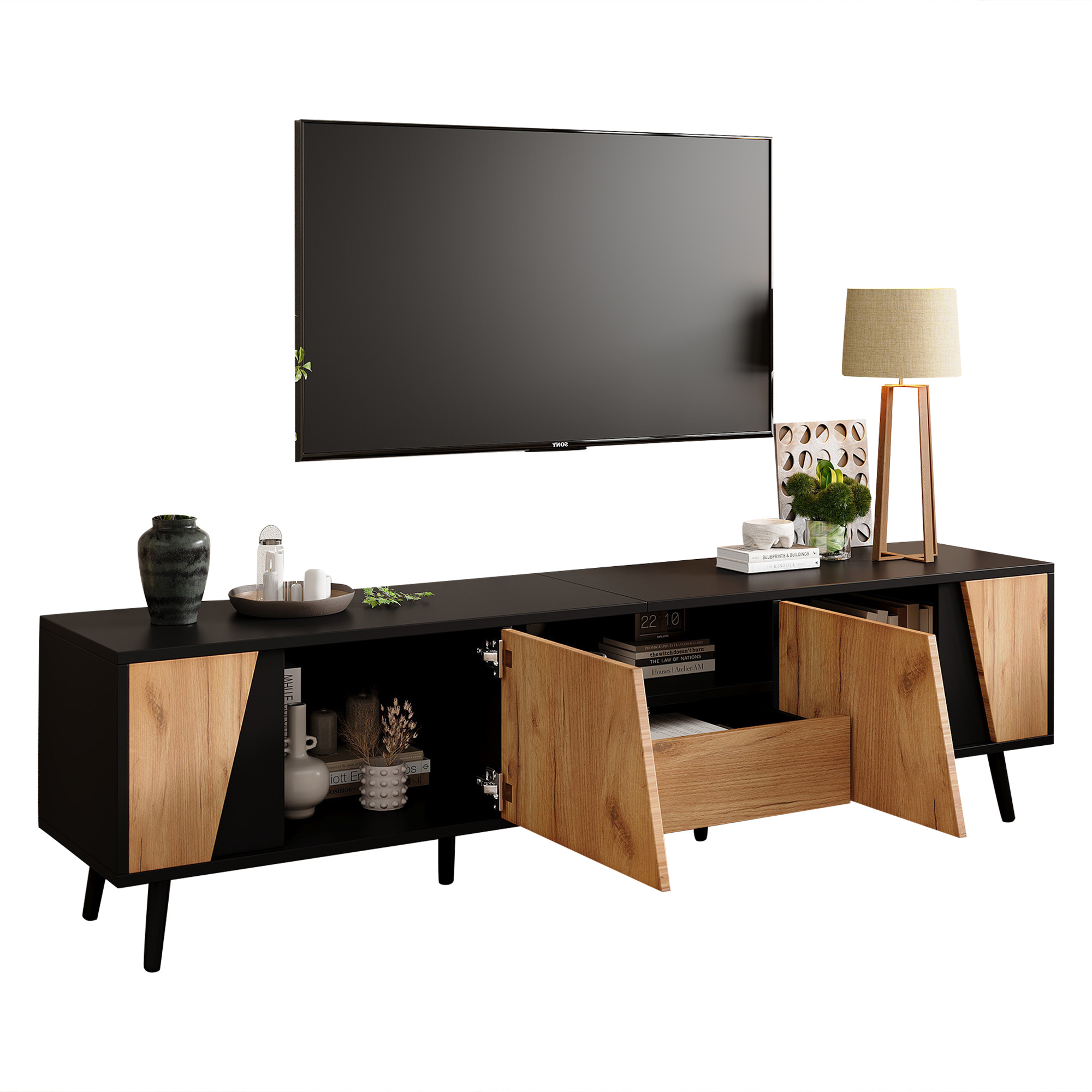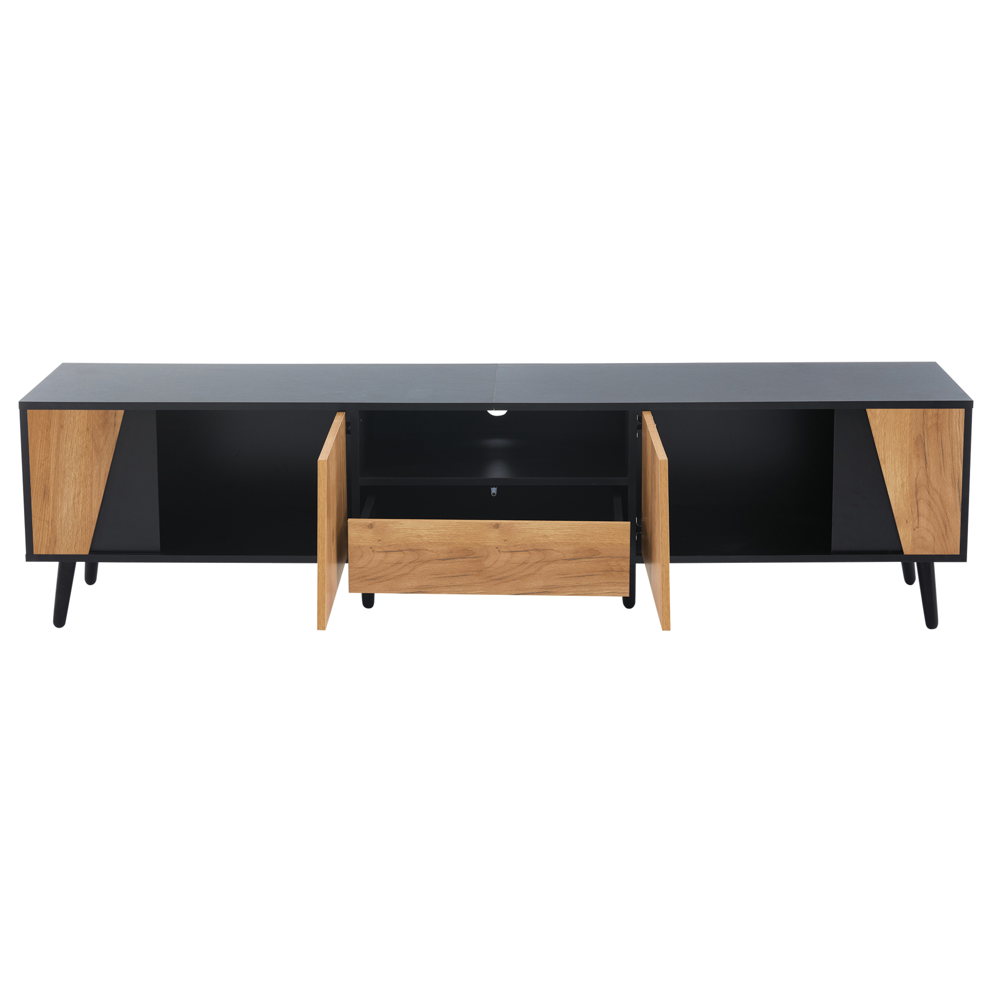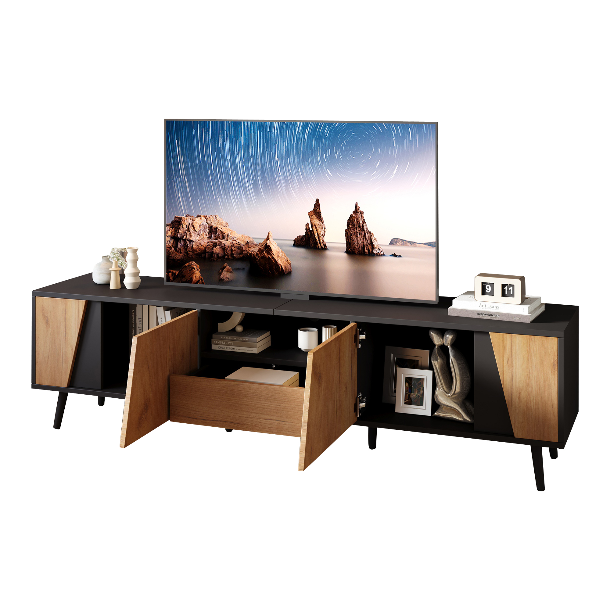 Product Name:TV Stand Cabient with 1 Drawer 2 Door, TV Cabinet Storage Sideboard, TV Entertainment center for livingroom bedroom, TV Console, TV unit, 180*40*46cm, Wood+Black, for 75 inch TV