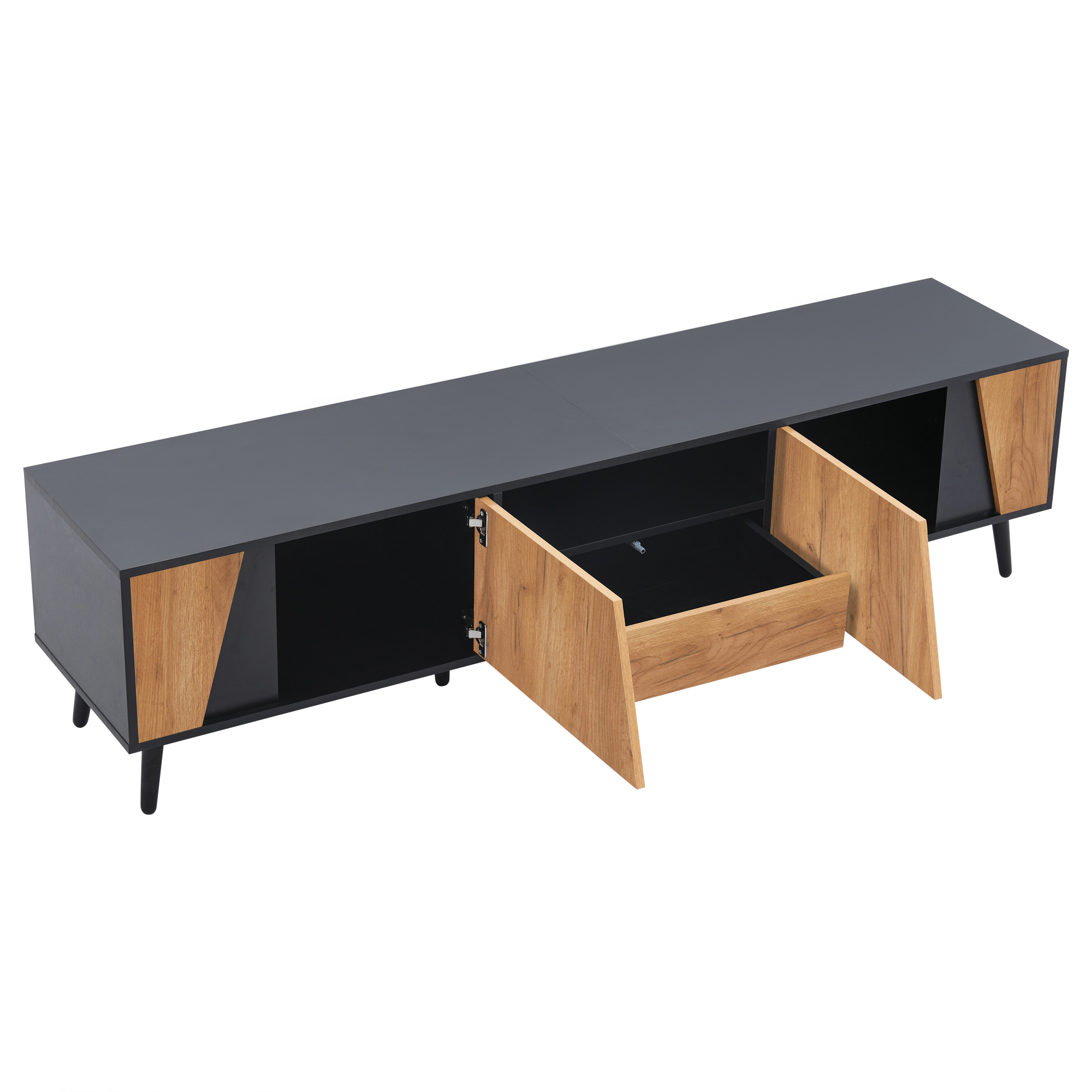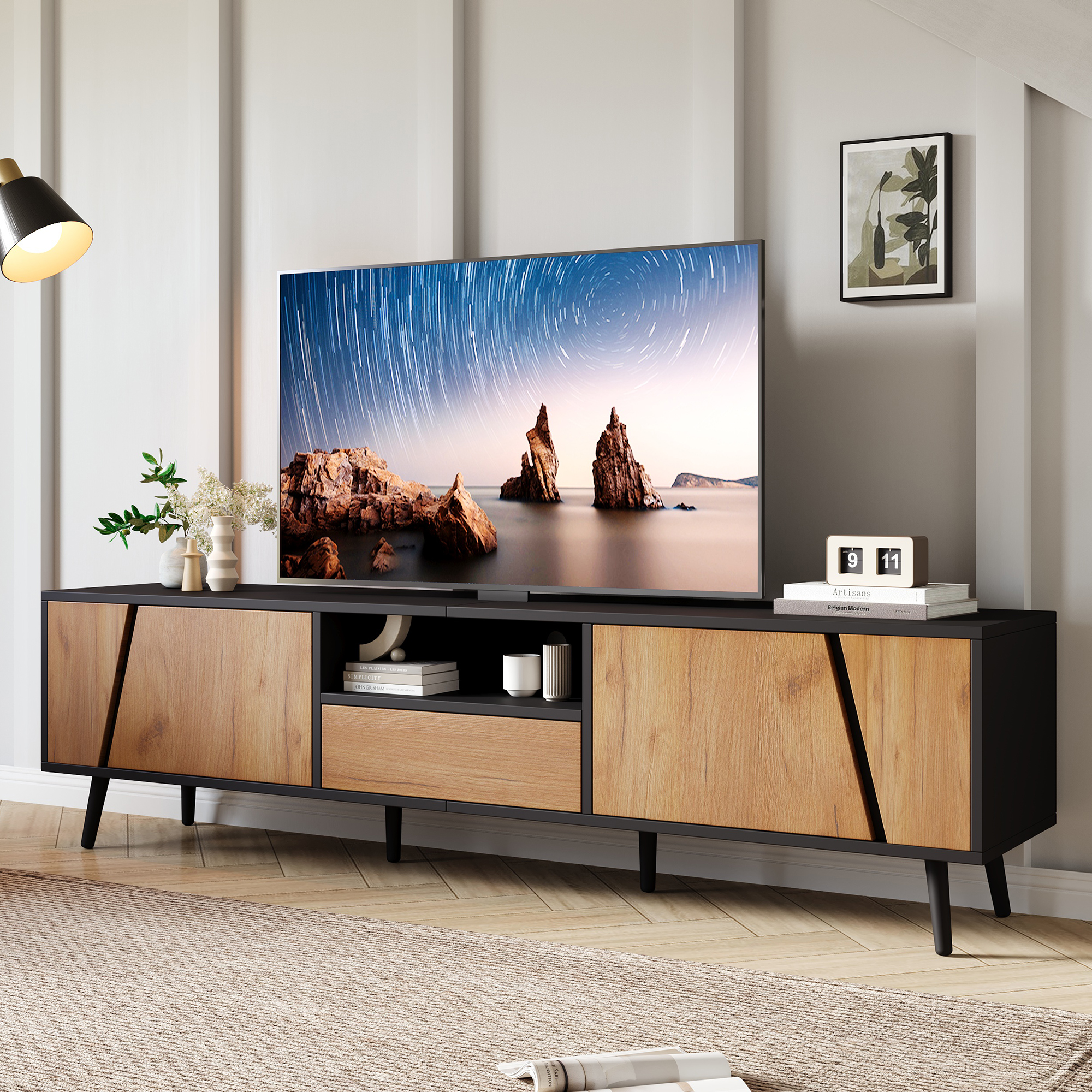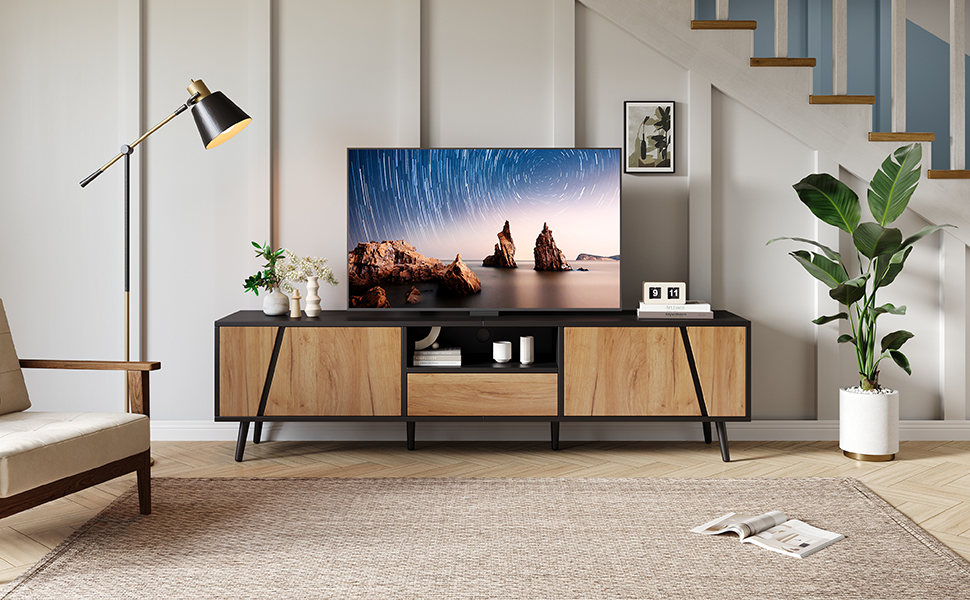 Product Name:TV Stand Cabient with 1 Drawer 2 Door, TV Cabinet Storage Sideboard, TV Entertainment center for livingroom bedroom, TV Console, TV unit, 180*40*46cm, Wood+Black, for 75 inch TV