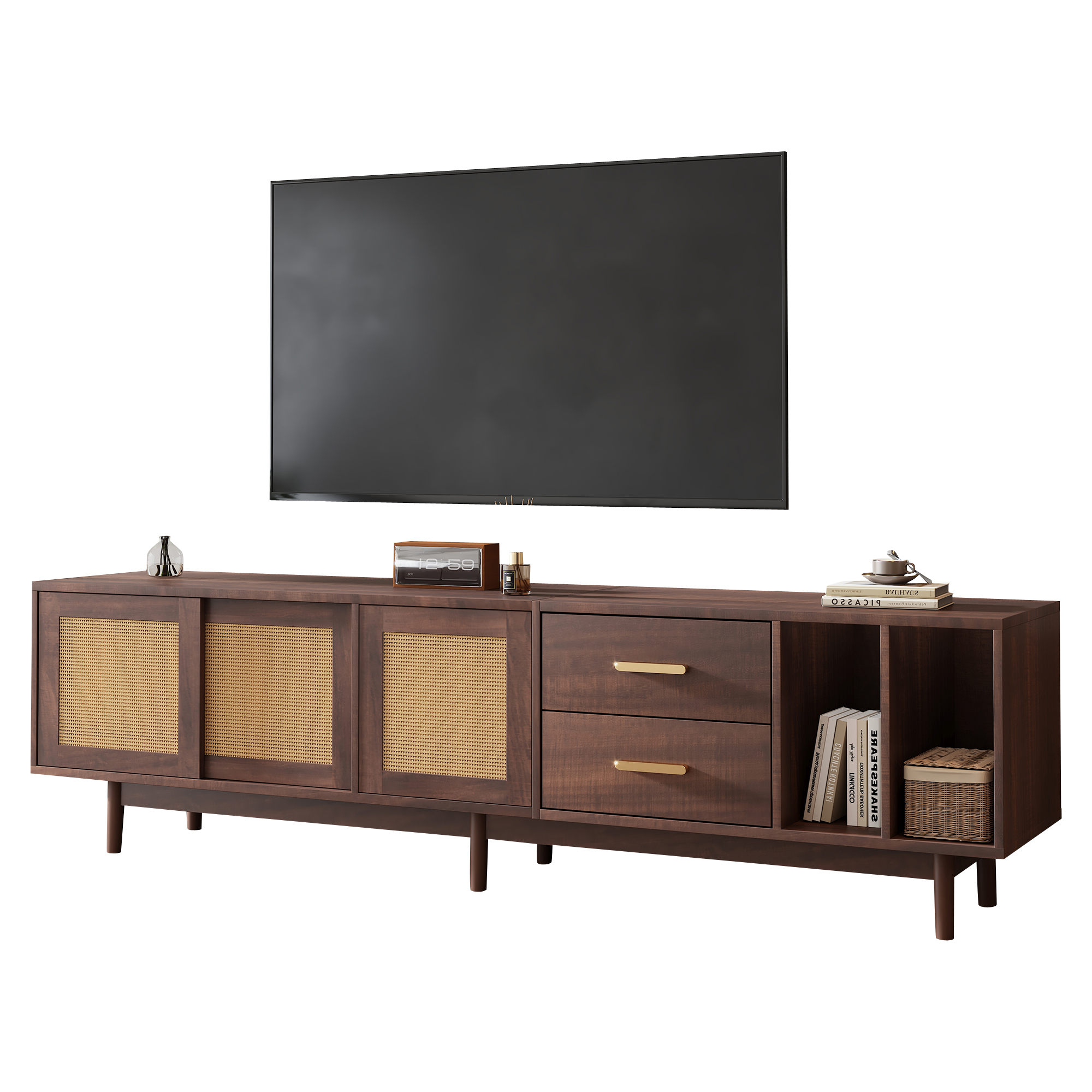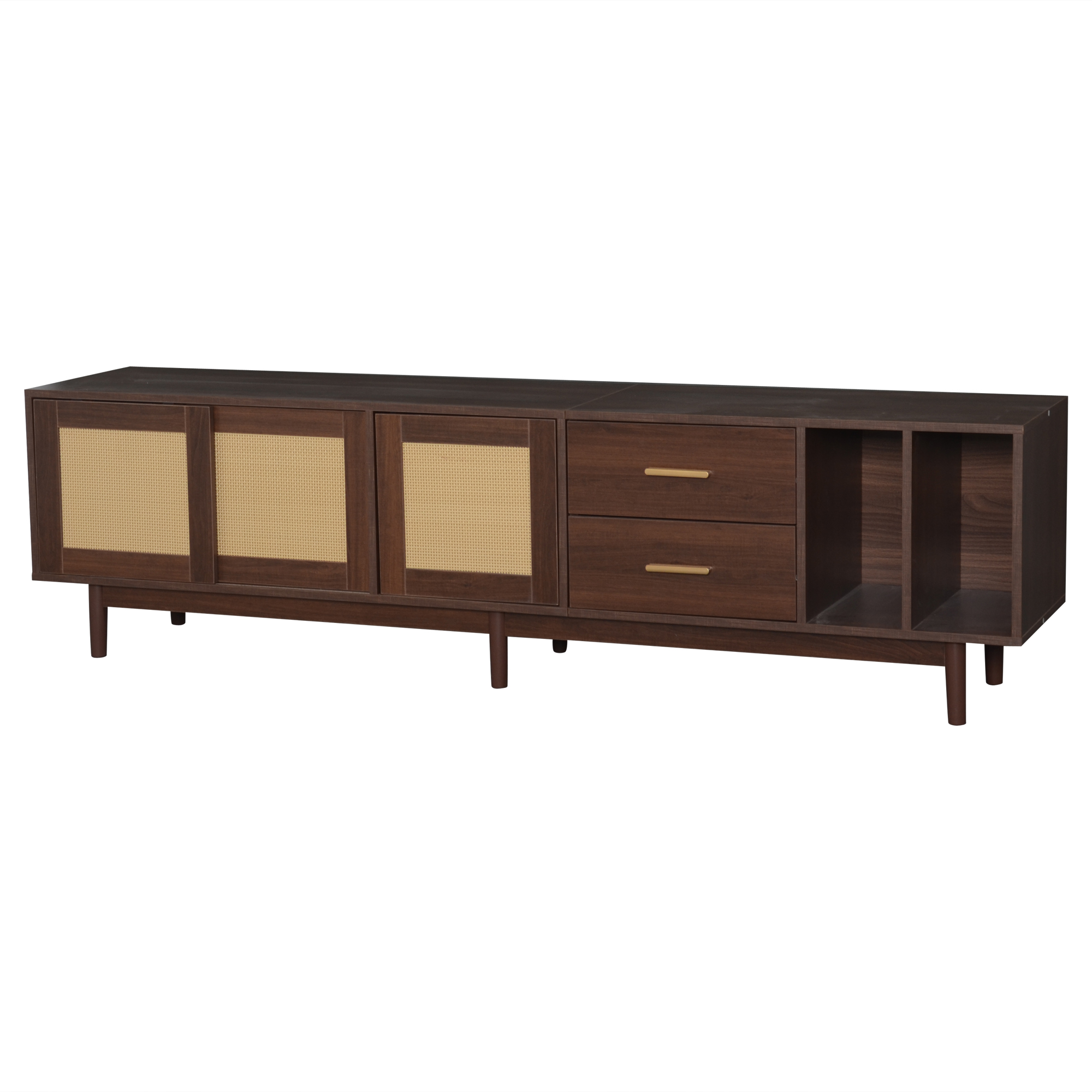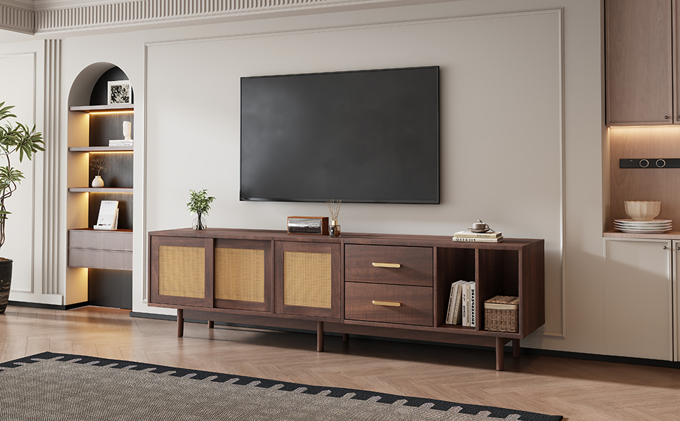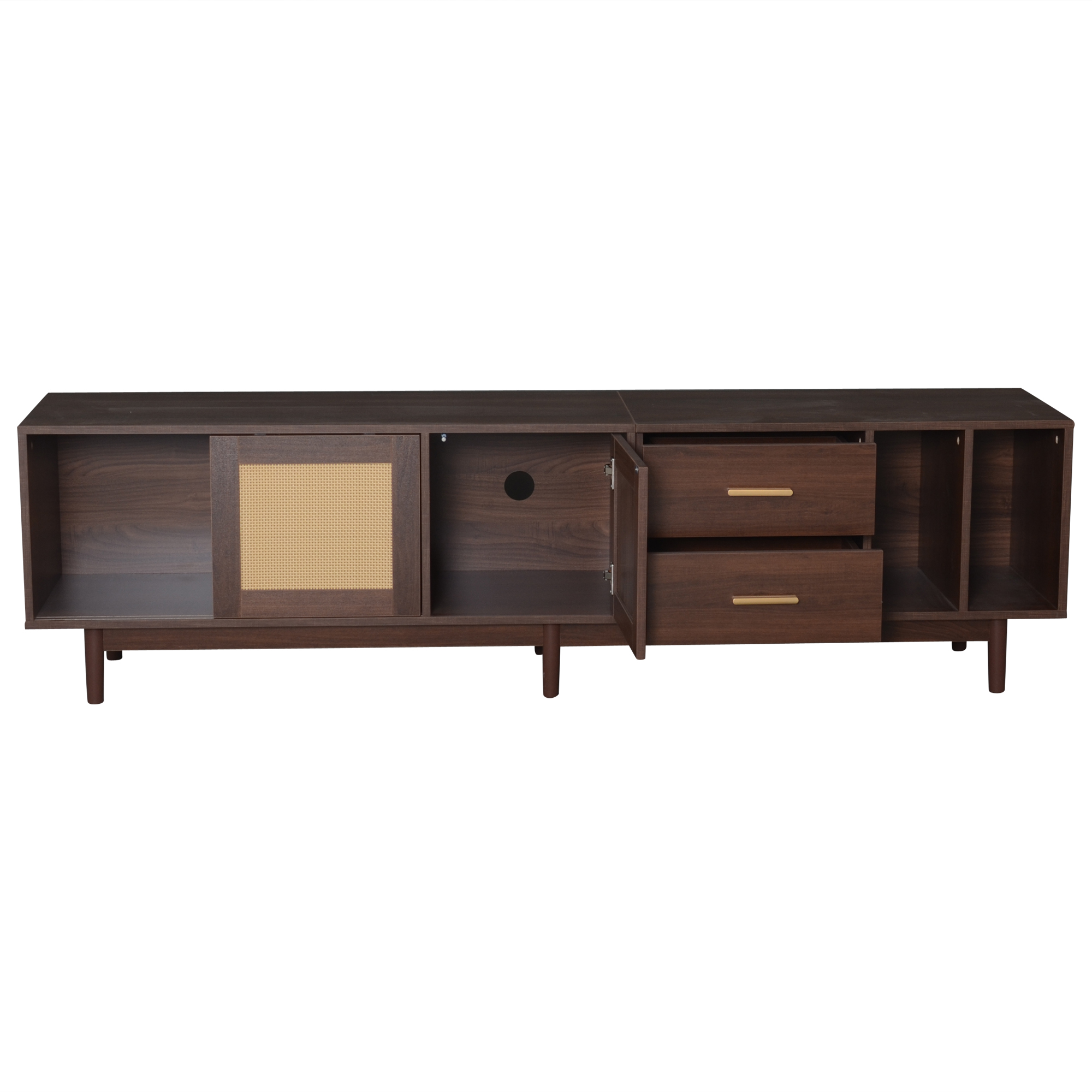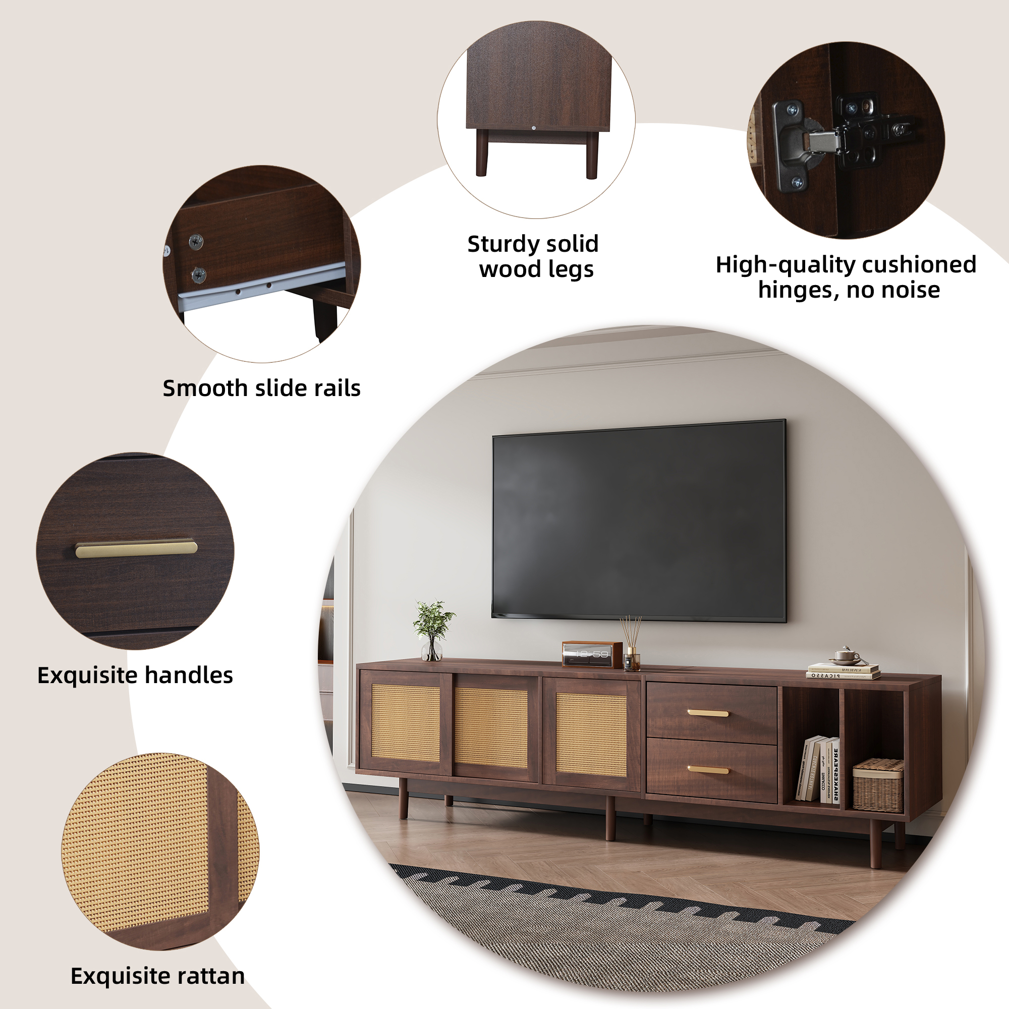 Product Name:TV Stand Cabient with 2 Drawers, Sliding doors with rattan design, TV Cabinet Sideboard, TV Entertainment center for livingroom bedroom, TV Console, 190*40*52cm, Dark Wood, for up to 80 inch TV
