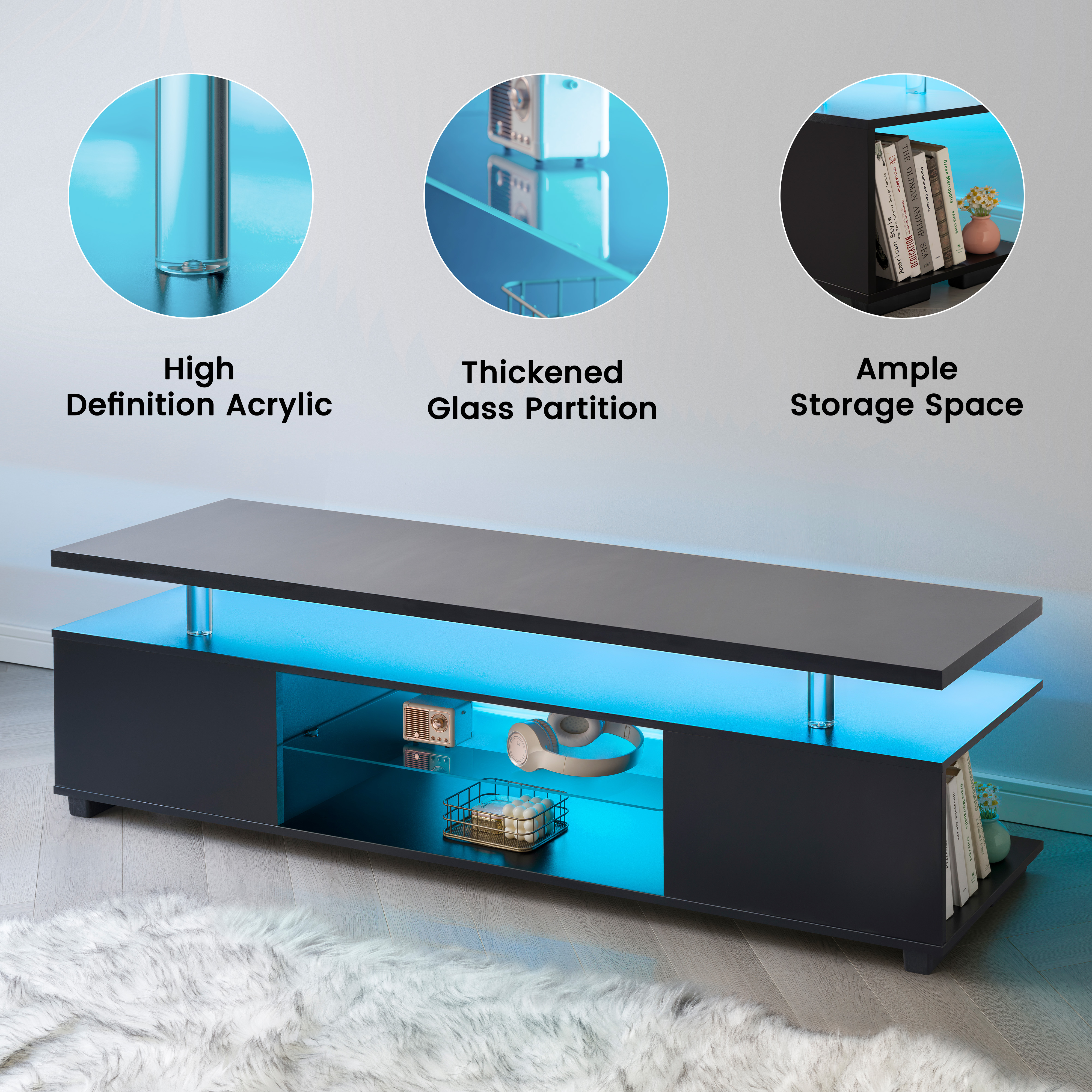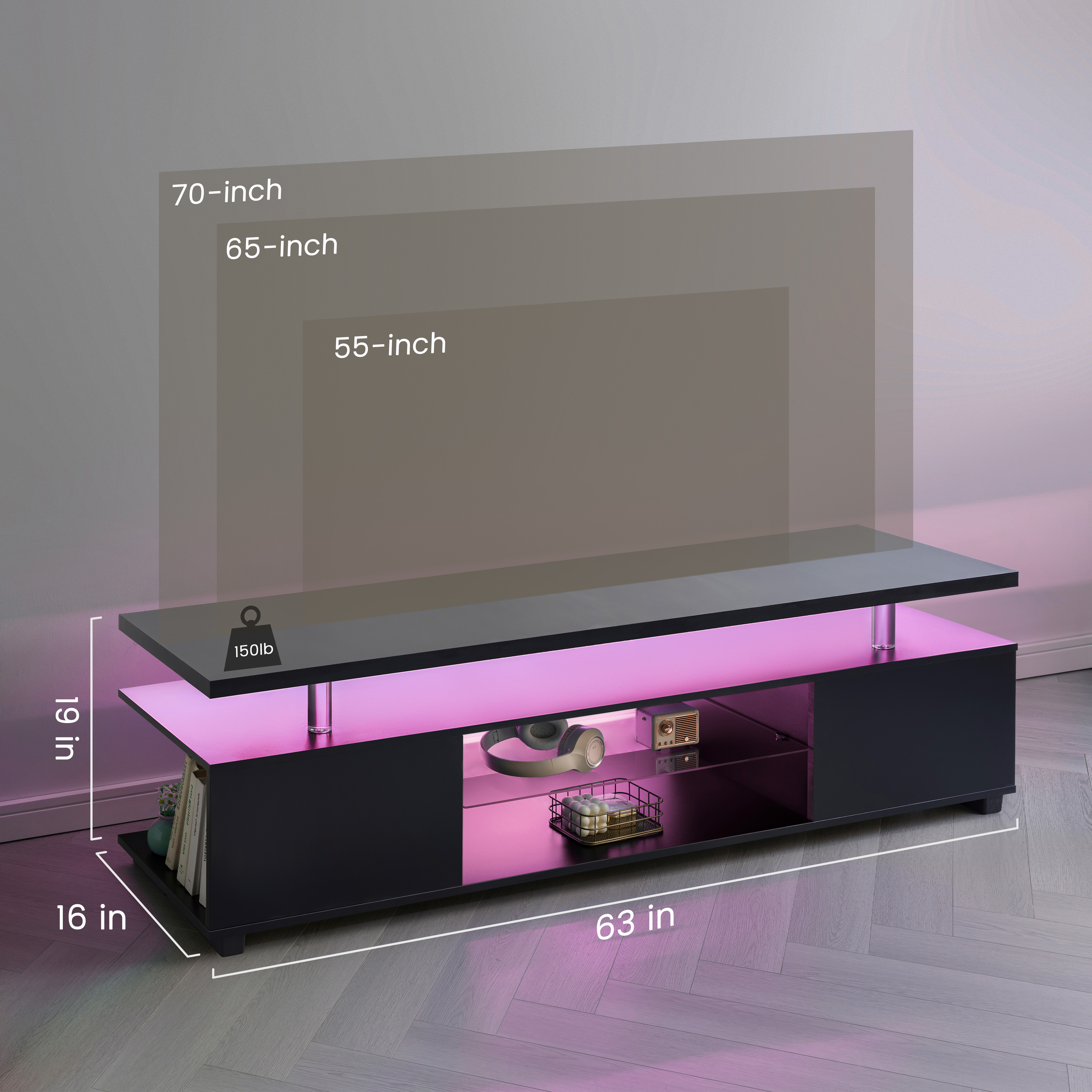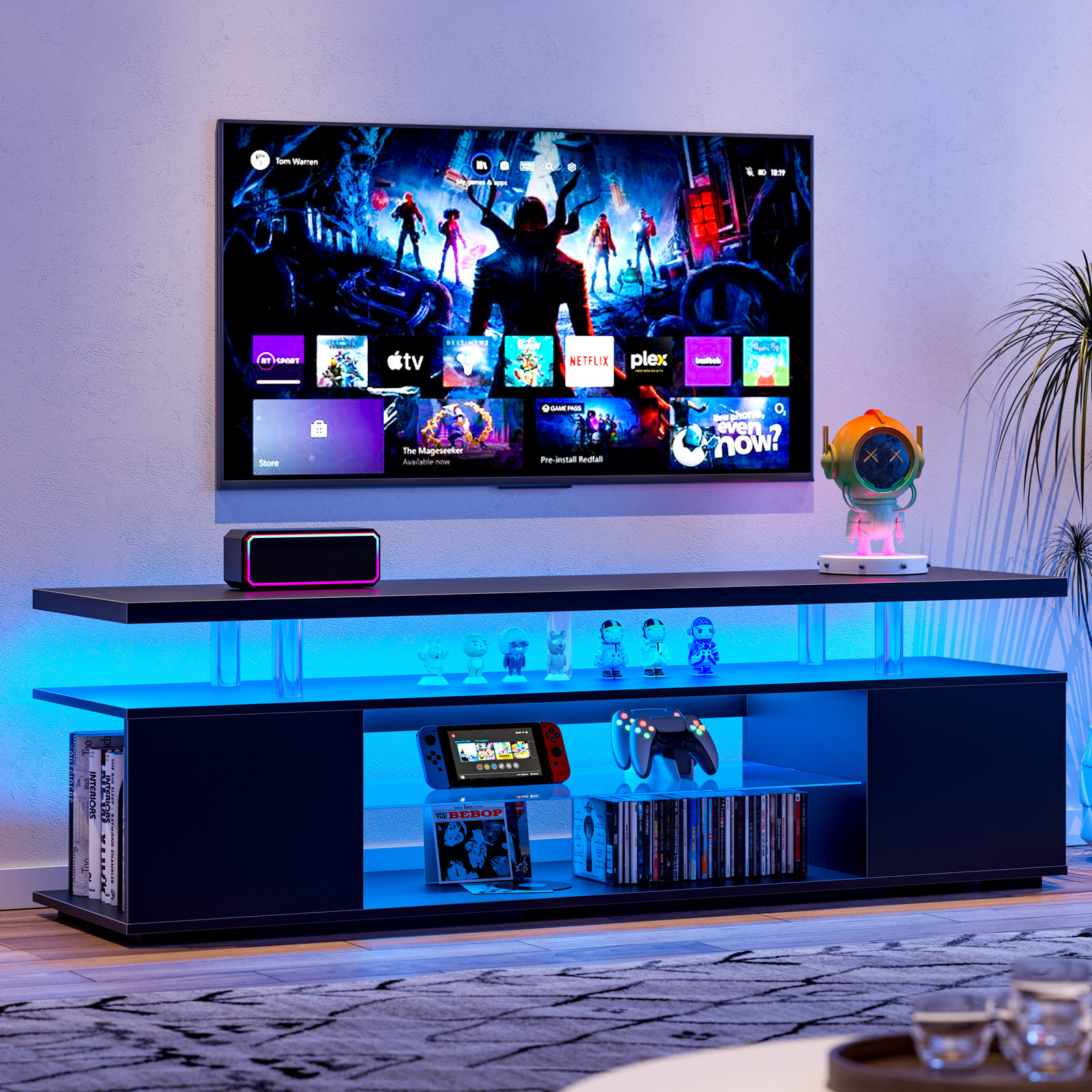 TV Stand For 70 Inch TV LED Gaming Entertainment Center Media Storage Console Table With Large Side Cabinet For Living Room Black