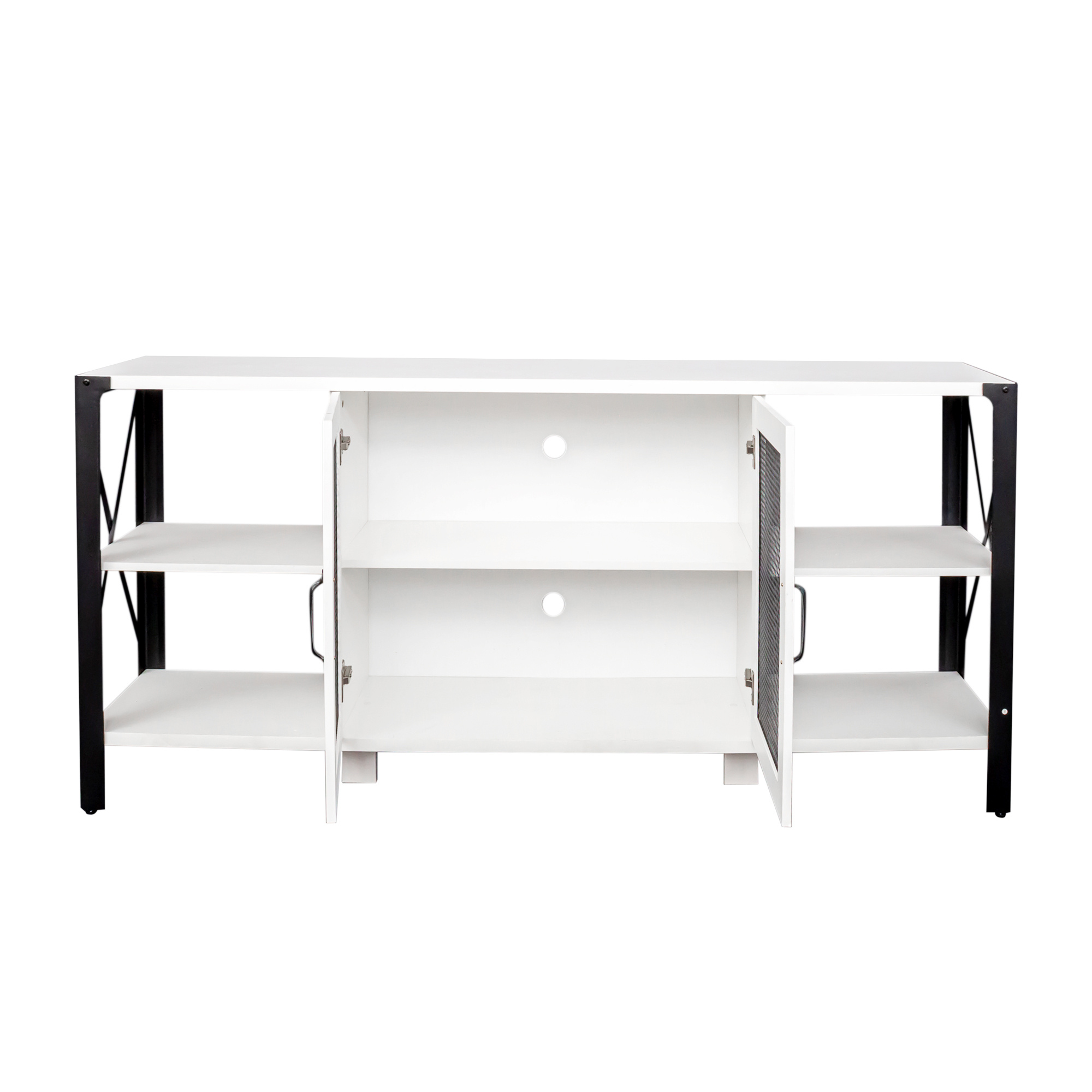 【Industrial TV Cabinet】 - Our industrial style entertainment center is the perfect blend of modern simplicity and vintage elegance.The combination of metal and wood exudes a unique charm and is perfect for many situations such as farmhouse, living room, bedroom or as kitchen storage. Become the leader in your furniture upholstery. 【Durable and Sturdy】 - This farmhouse TV stand is precision engineered and made from high-quality materials. Superior stability and sturdiness, allowing it to withstand the weight of large TVs and heavy media equipment without compromising stability. 【Plenty of Storage Space】 - This TV stand offers the versatility of an open storage design. It features spacious open shelving, and the mesh door in the center opens to provide ample storage space for media players, game consoles, and decorative items to keep everything organized.