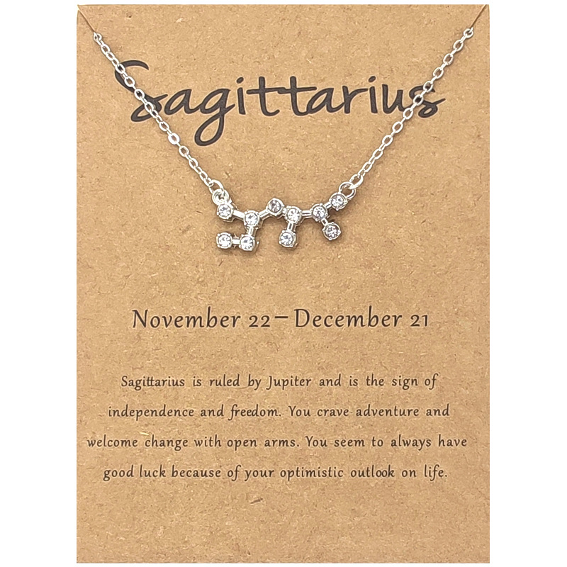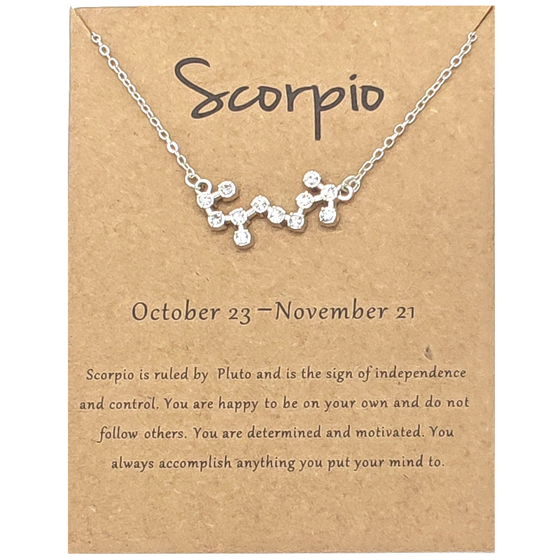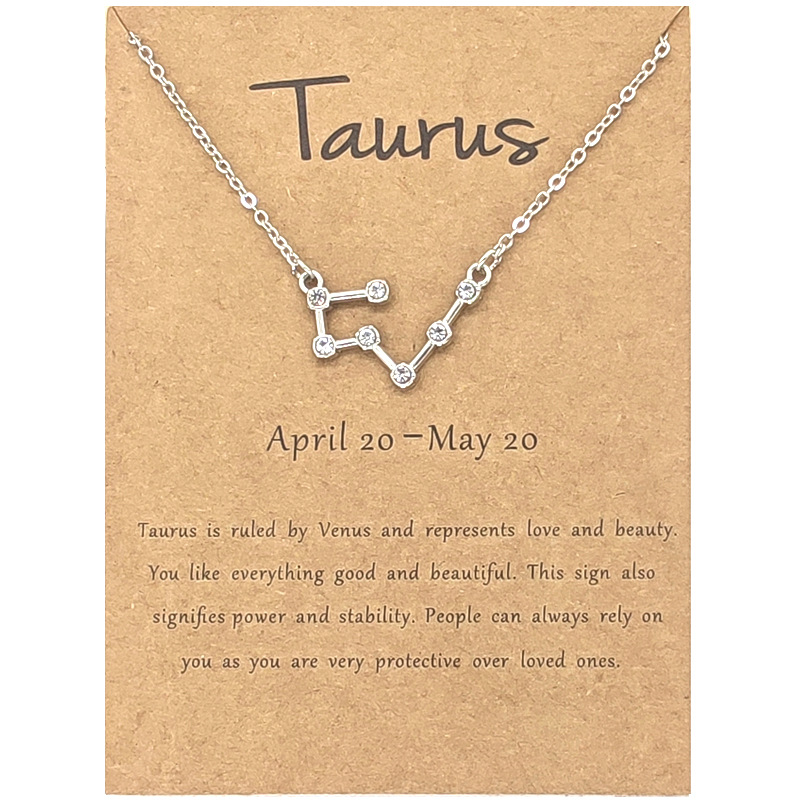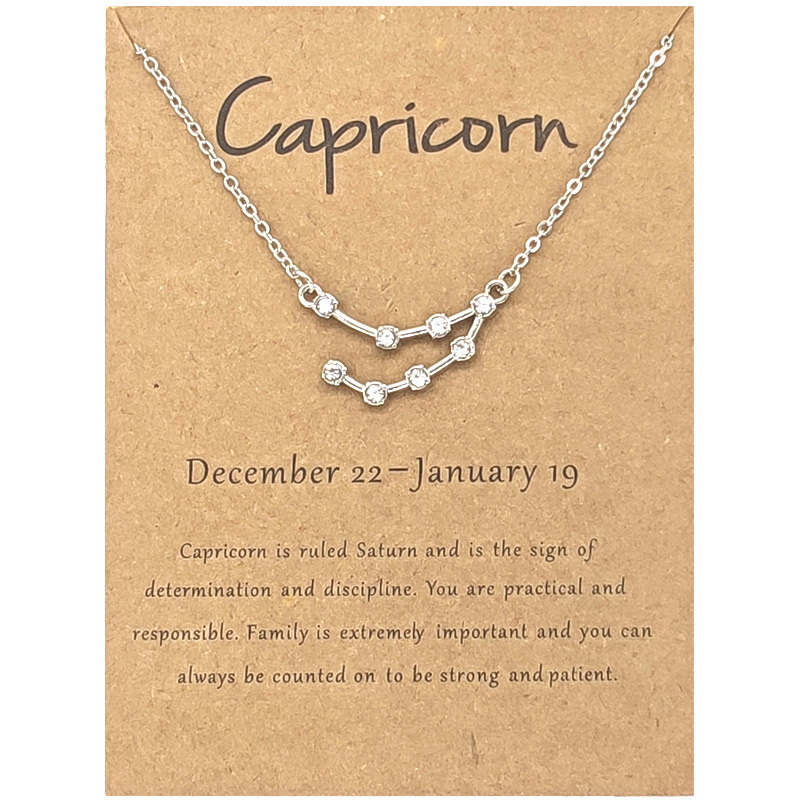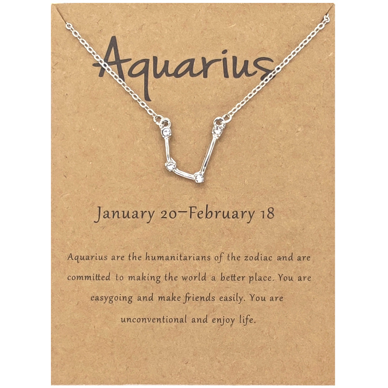 Twelve Constellation Diamond Necklace Ins Brown Card Rhinestone Clavicle Chain