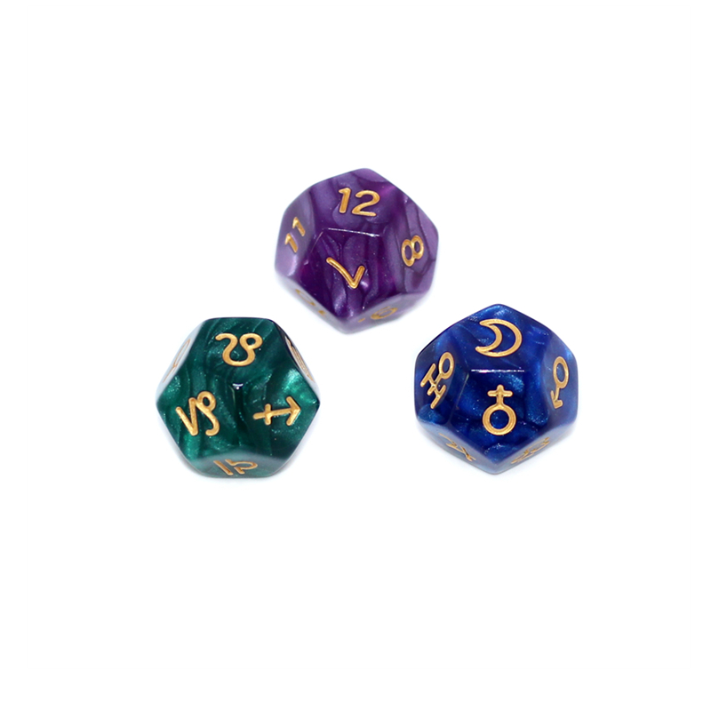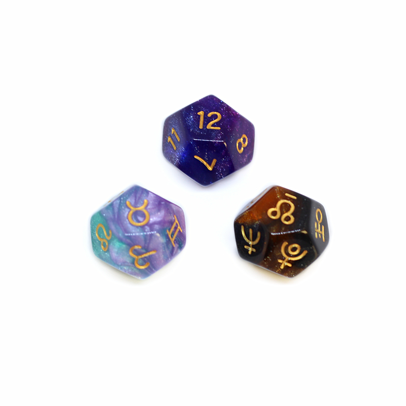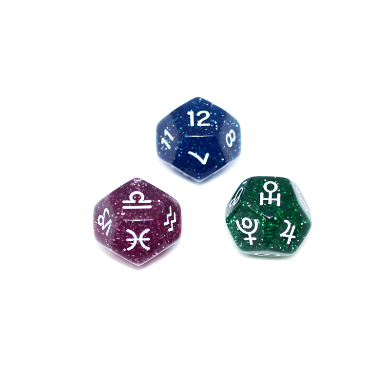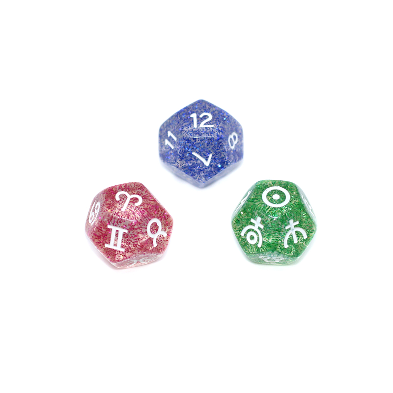 Dice specifications: 3 pearls, 3 glitter silver, 3 transparent glitter, 3 stars, 3 transparent clouds