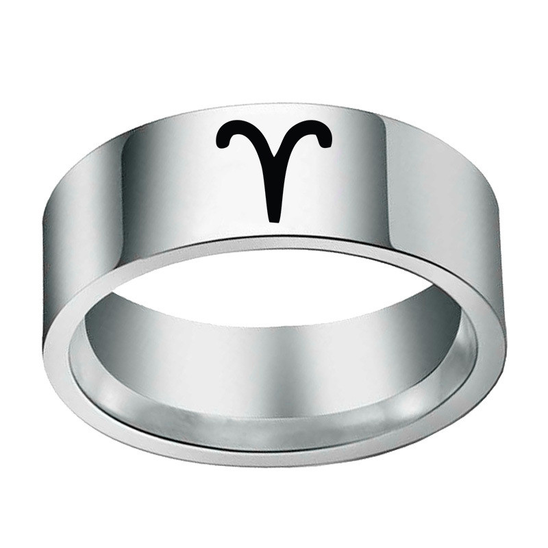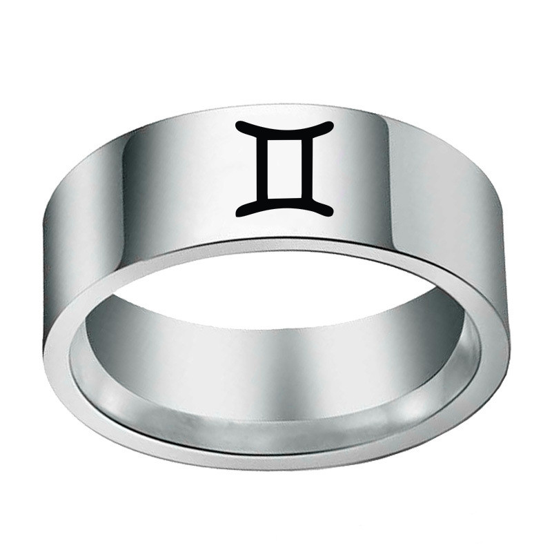 Trade name: twelve constellation ringsMaterial: stainless steel / titanium steelSize: 8mm width and 2mm thickness