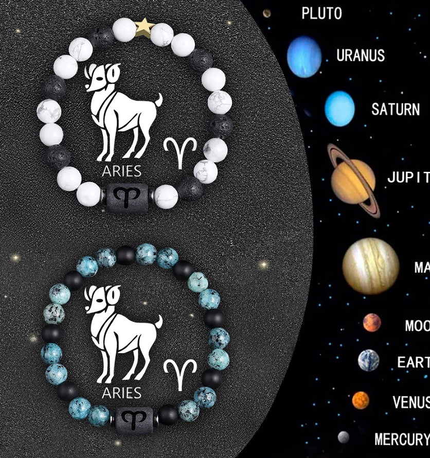 Twelve Zodiac Sign Beaded Bracelet Set