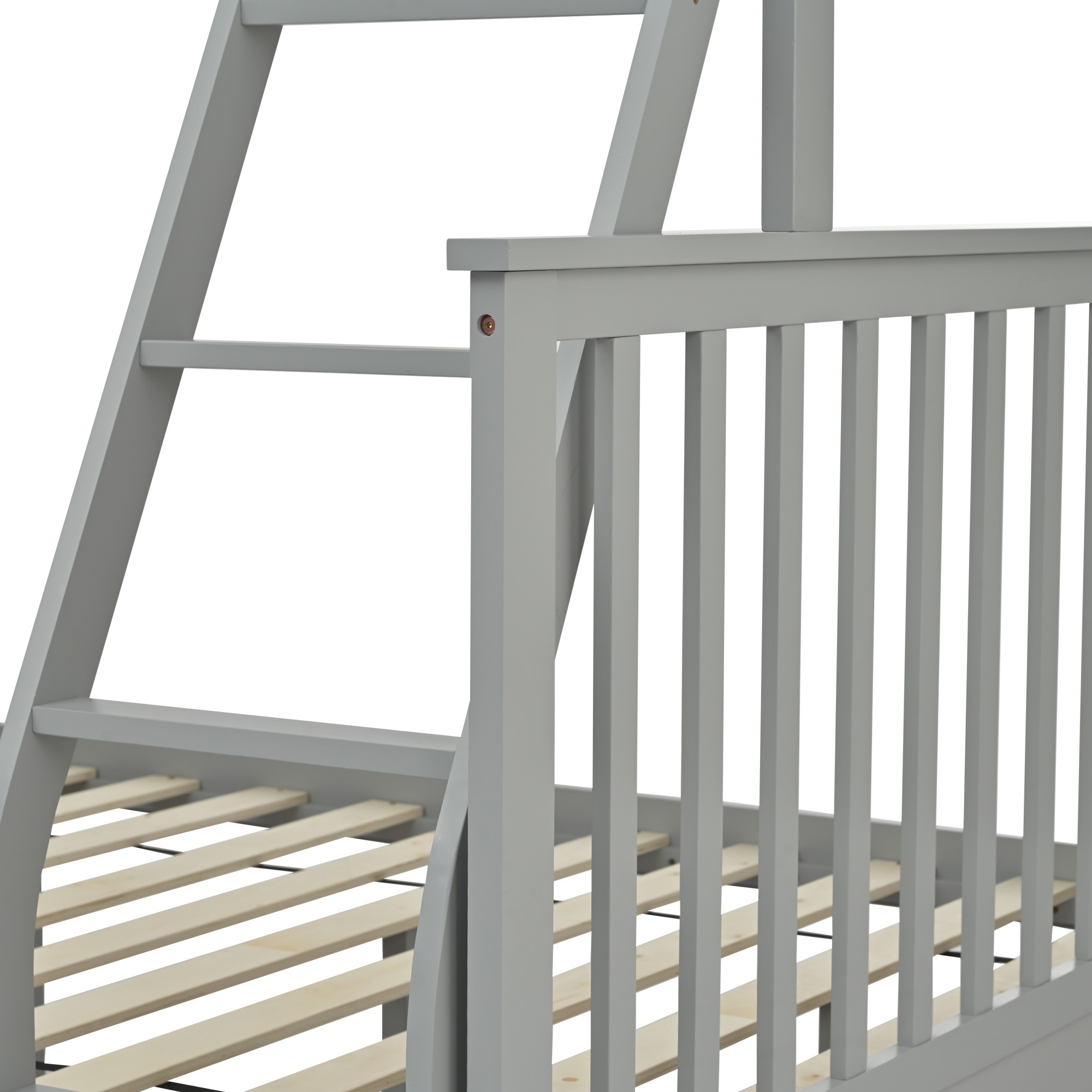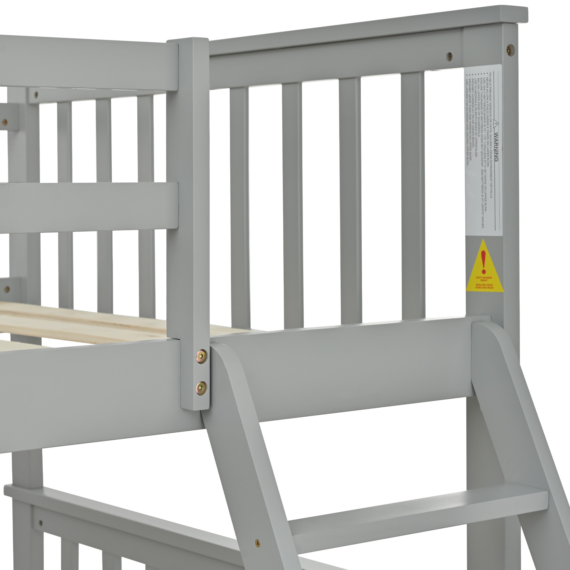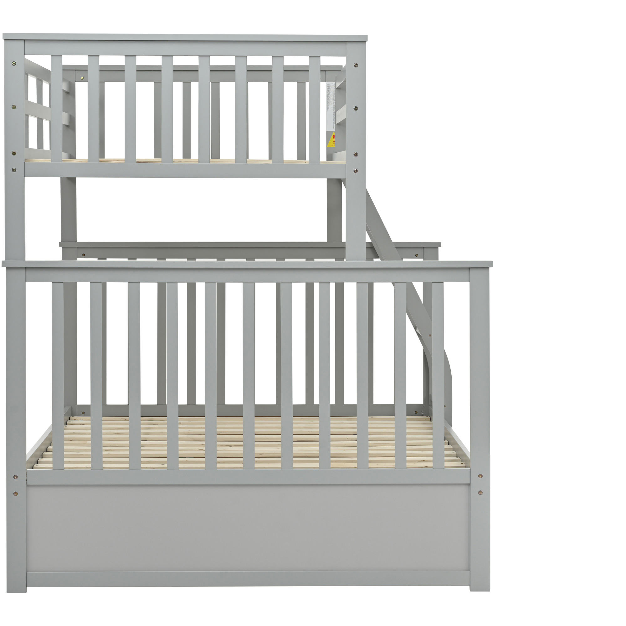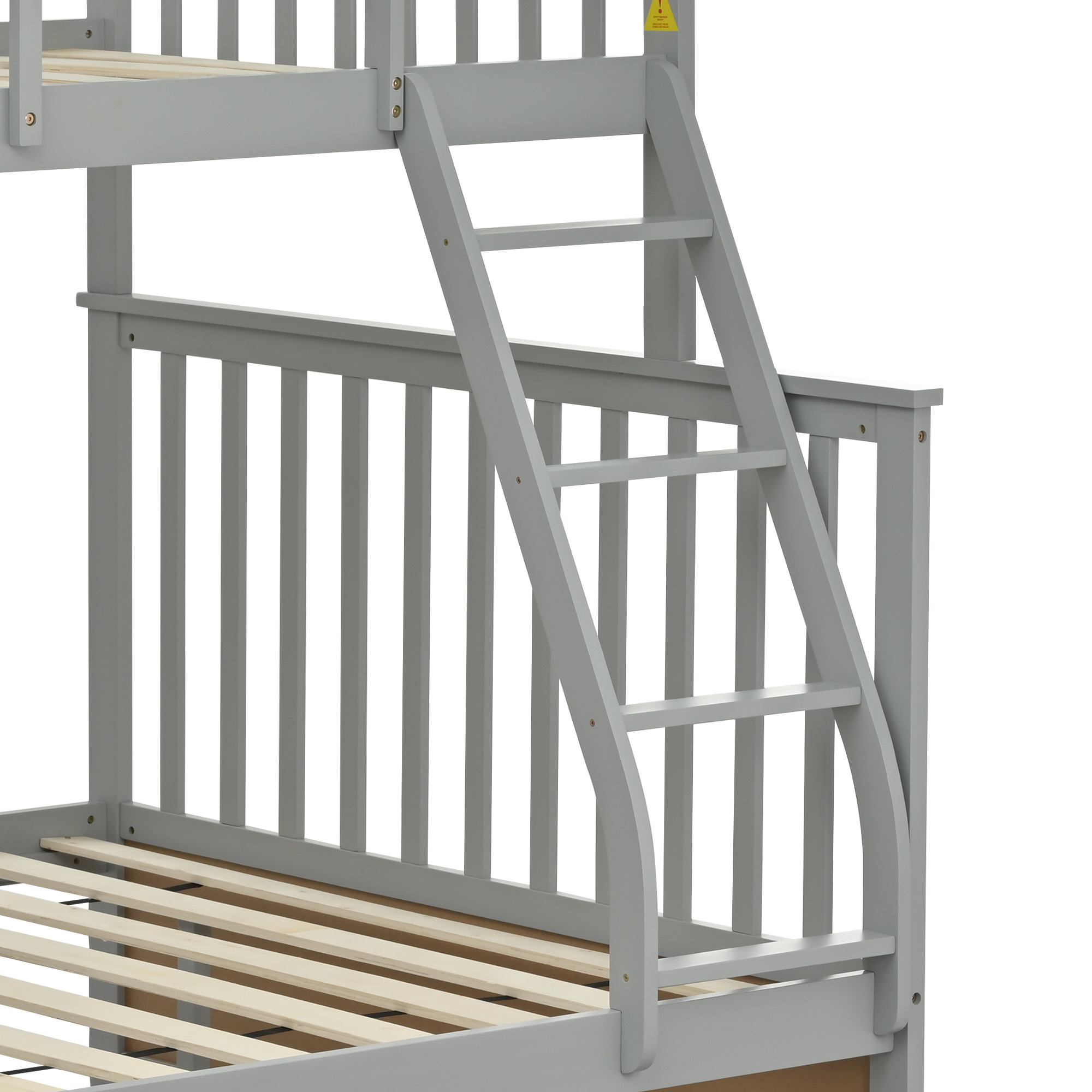 Product Name:Twin Over Full Bunk Bed , Wooden Bunk Bed with Ladder and Safety Guard Rails –Gray