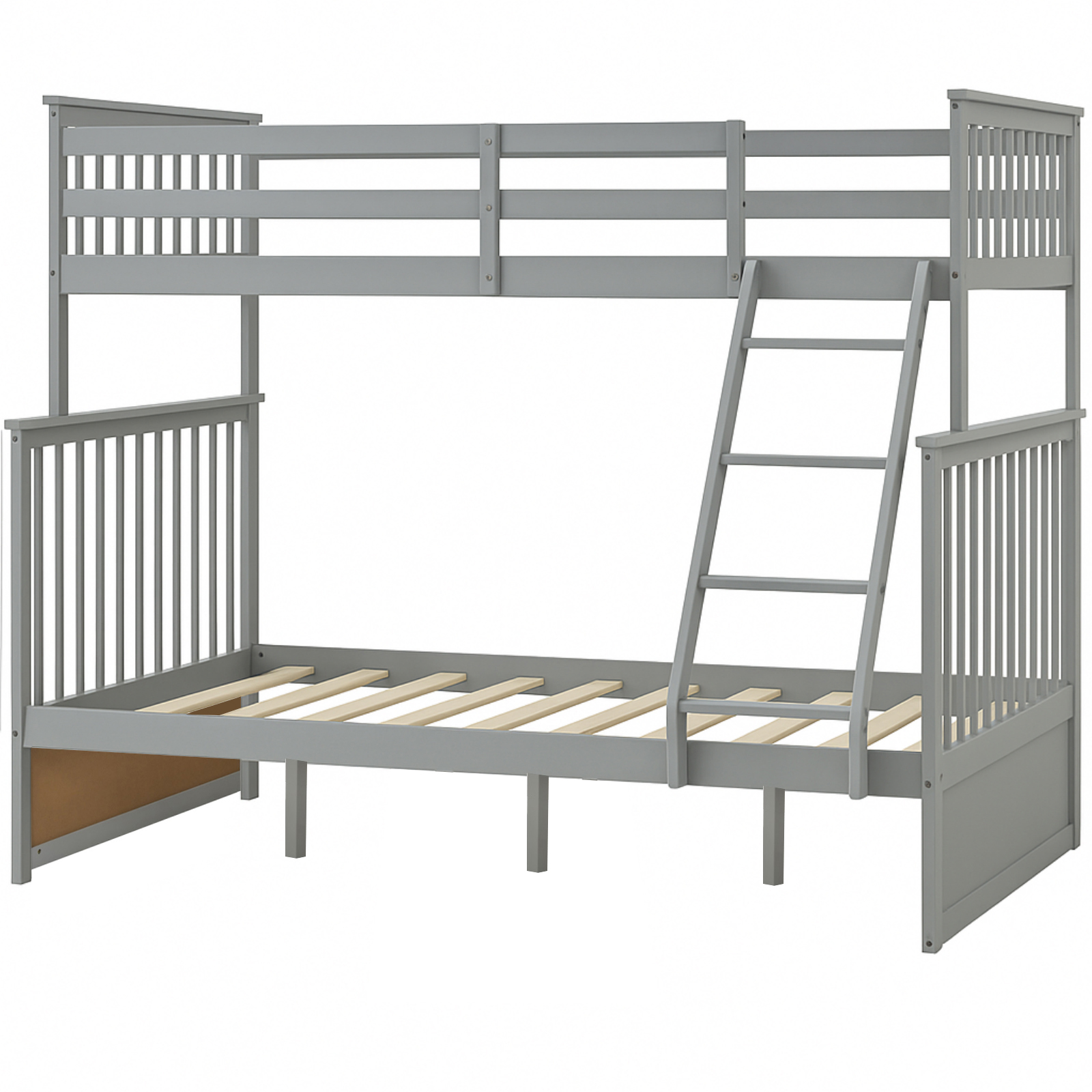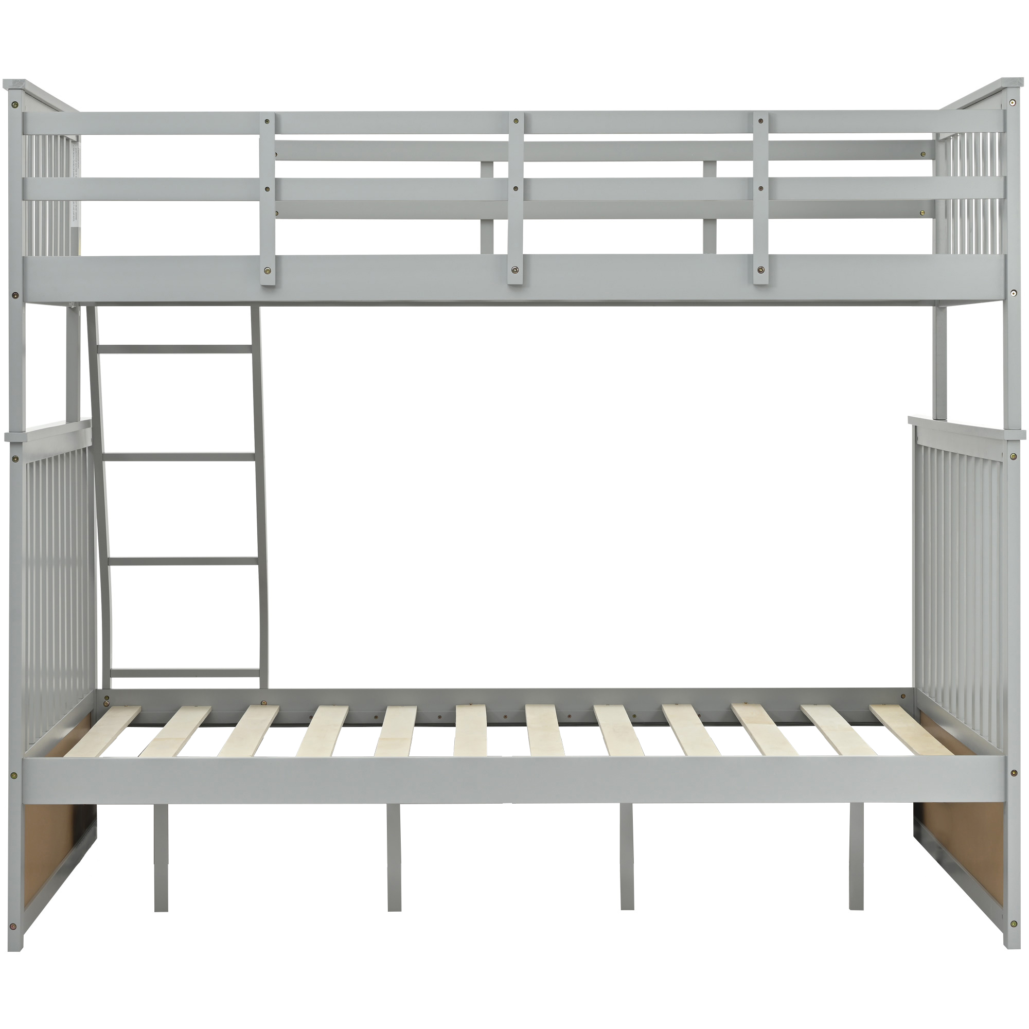 Twin Over Full Bunk Bed , Wooden Bunk Bed With Ladder And Safety Guard Rails - Gray