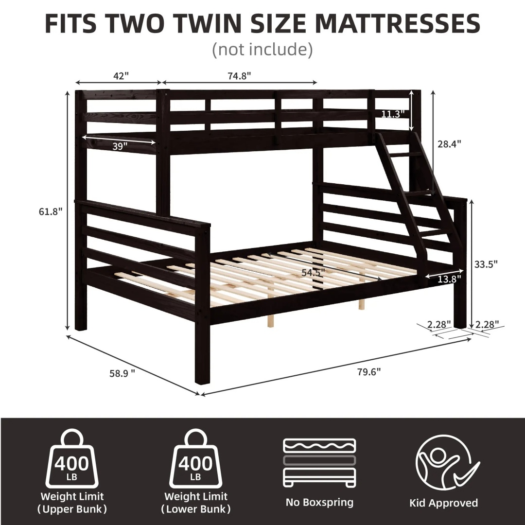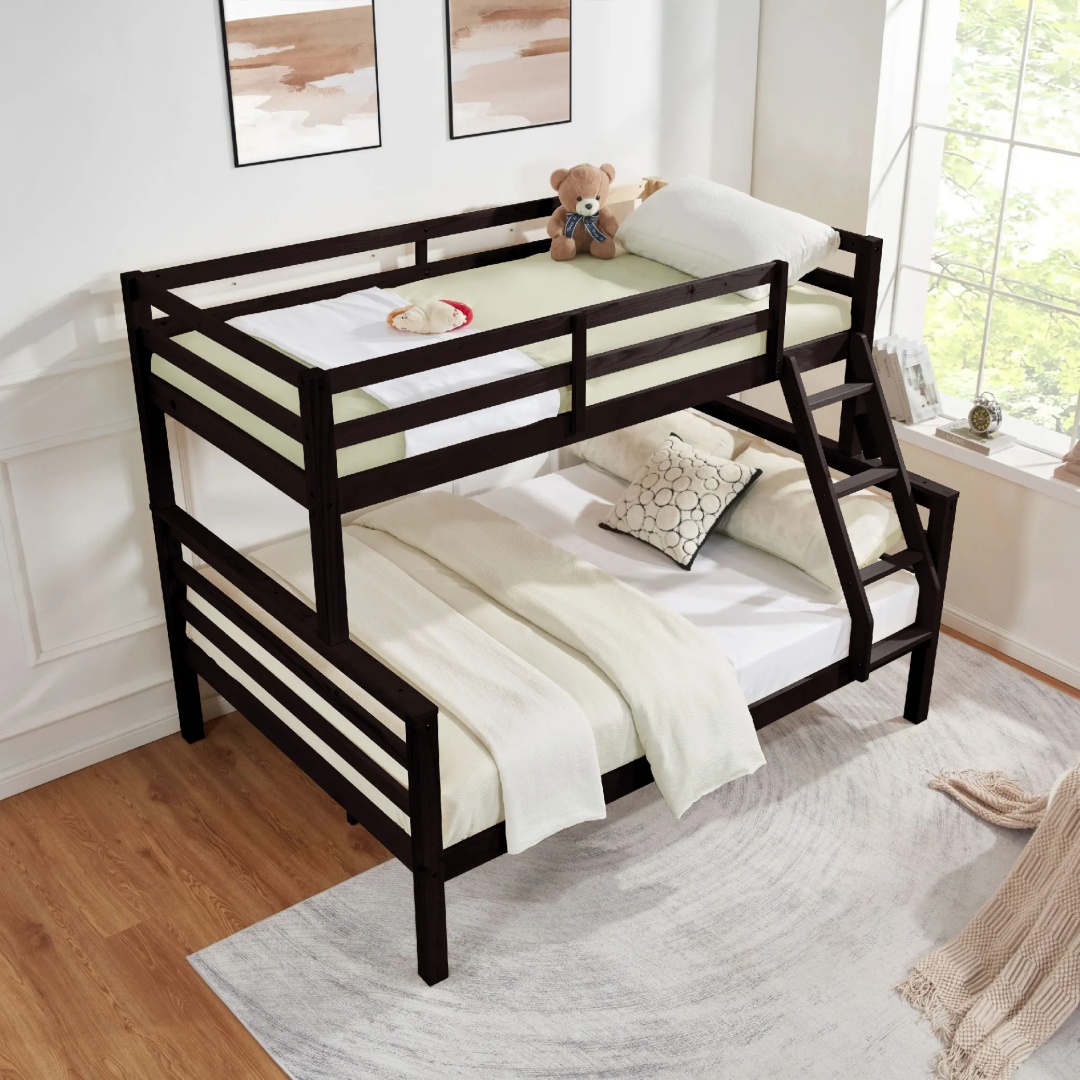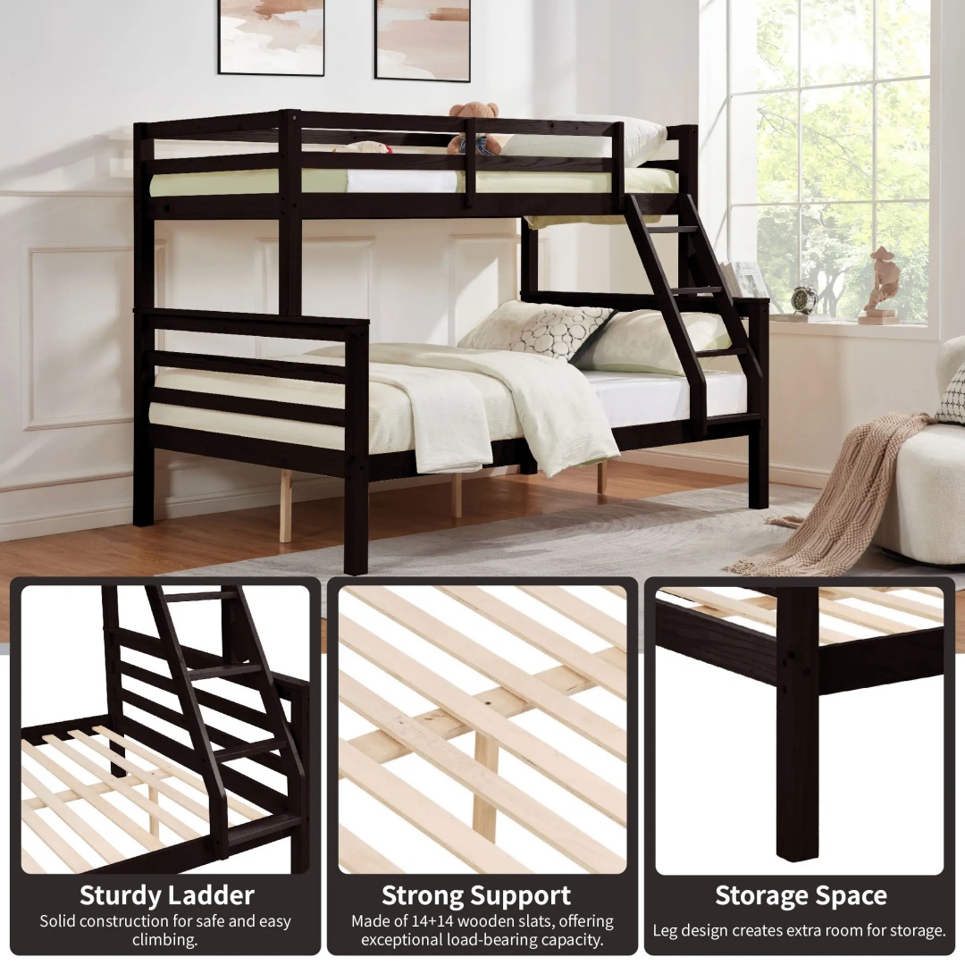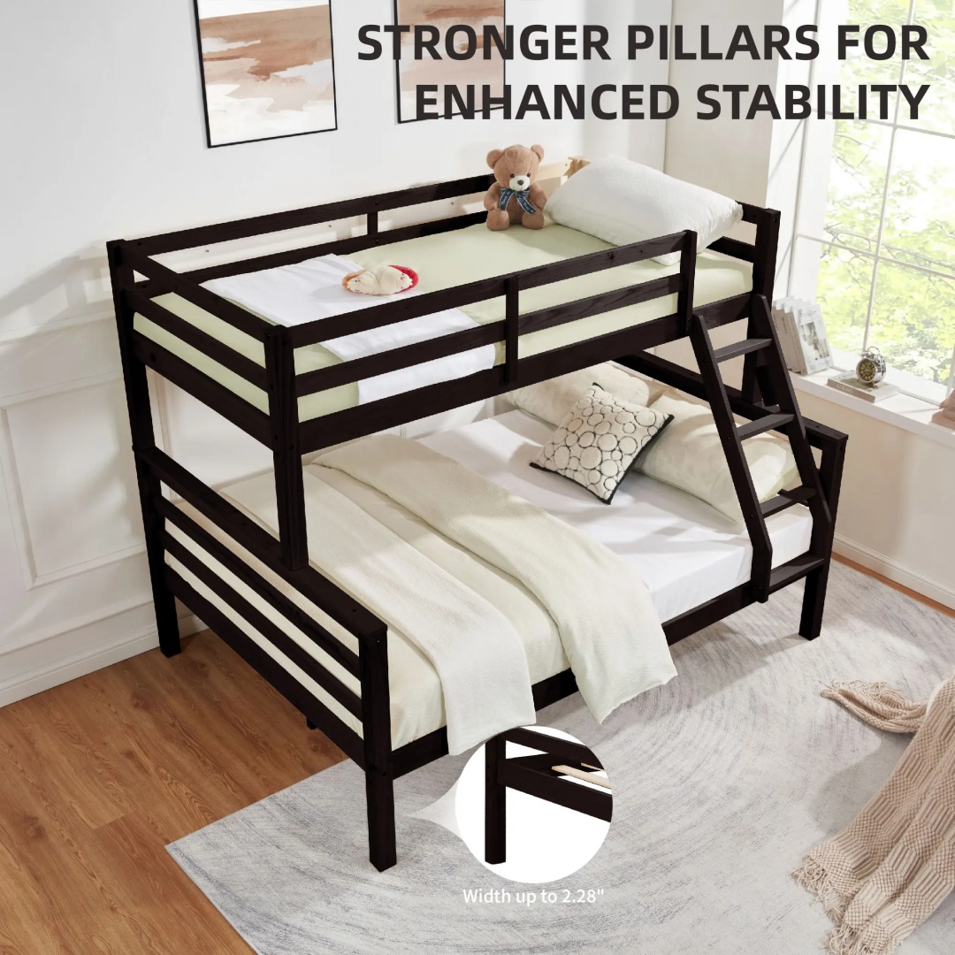 Product Name: Twin over Full Bunk Bed with Thick Posts,Wooden Bunk Bed with High Guardrail and Ladder for Kids, Teens, Dorm Rooms, and Guest Rooms,No Box Spring Needed,Espresso