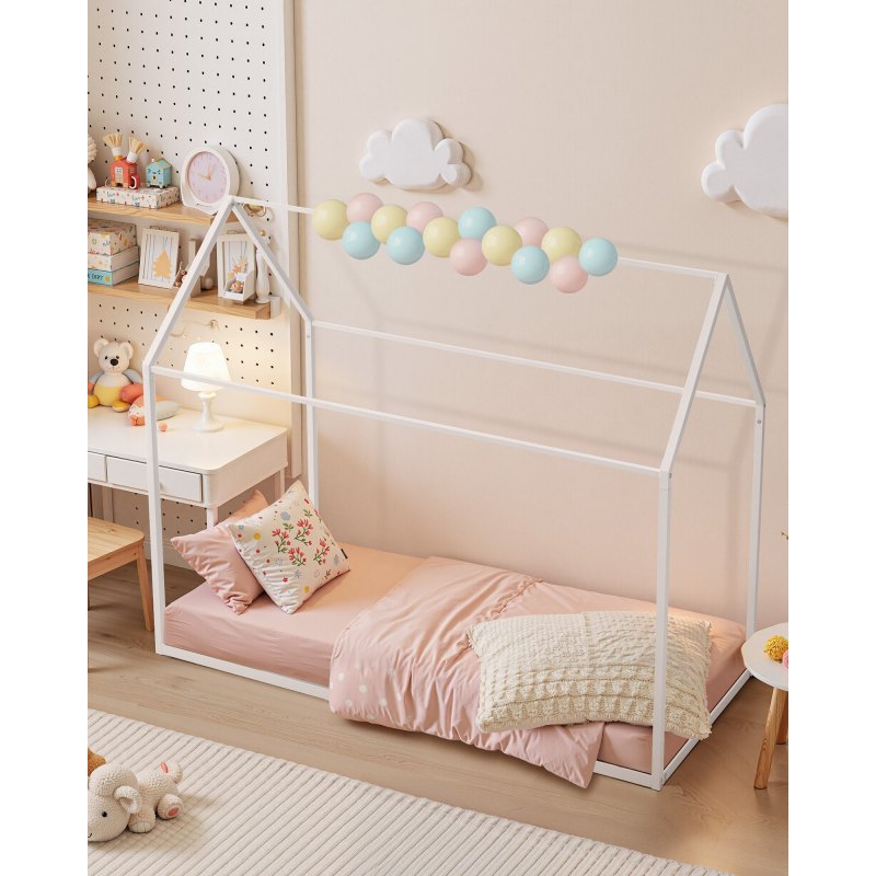 Sturdy Metal Construction: Reinforced metal house frame with a house-style top frame and thickened slats create a stable and secure sleeping and play area for children