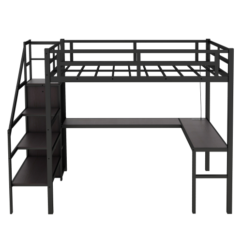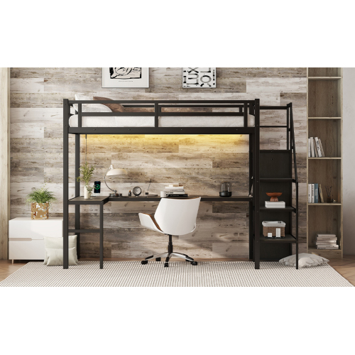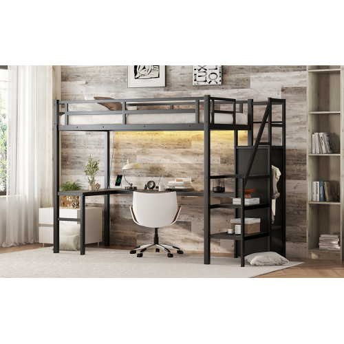 Product Name:Twin XL Size Loft Bed with L-shaped Desk and USB, Metal Loft Bed with Wardrobe and Adjustable Shelf, High Loft Bed with LED for Kids Teens Adults, Black