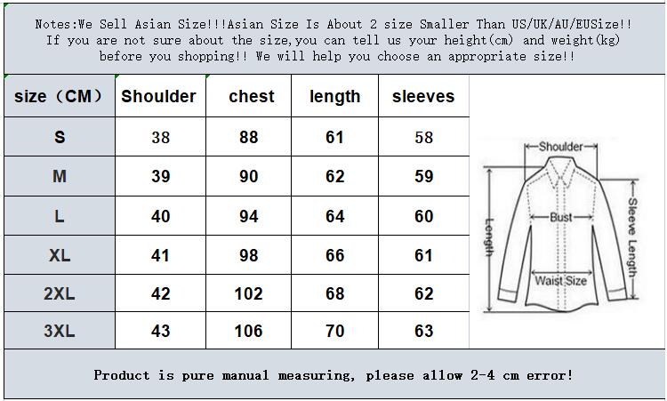 1. Asian sizes are 1 to 2 sizes smaller than European and American people. Choose the larger size if your size between two sizes. Please allow 2-3cm differences due to manual measurement.